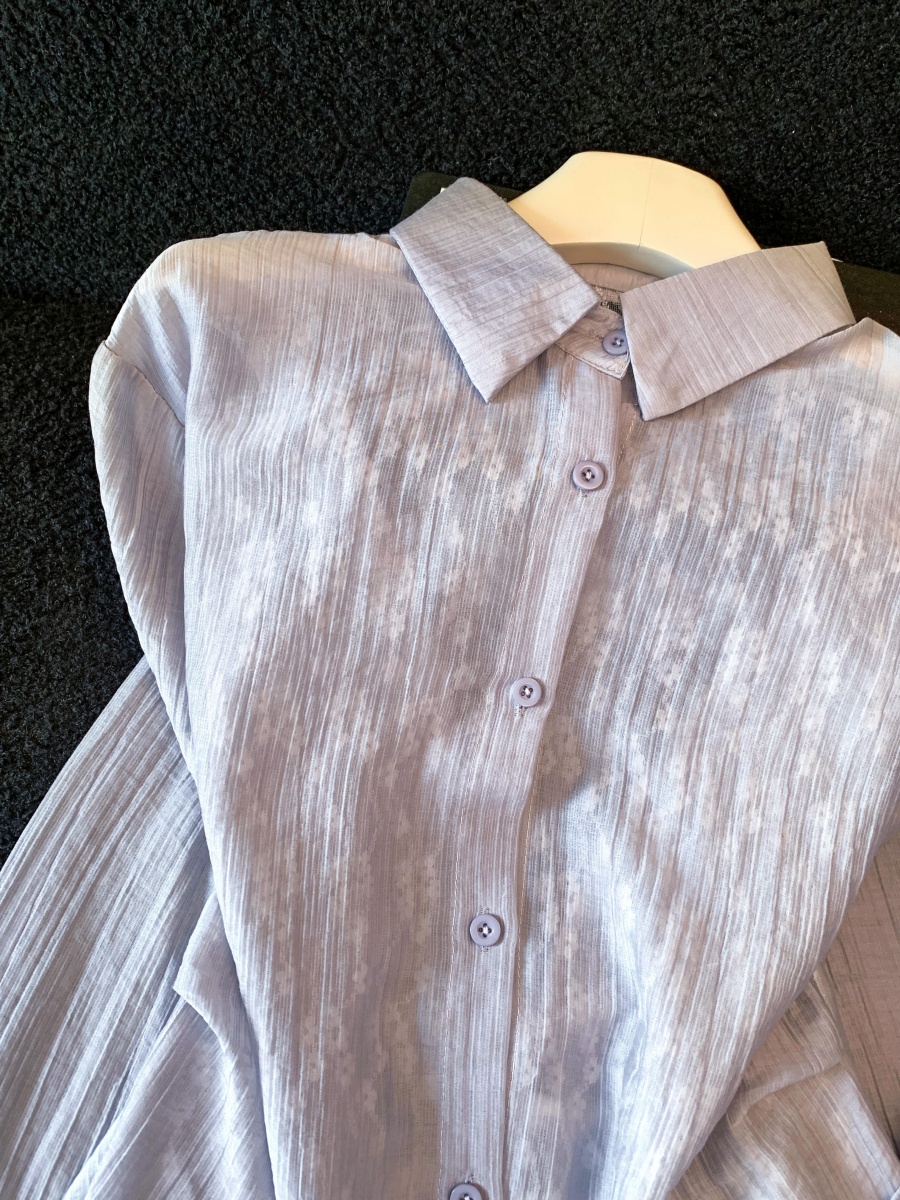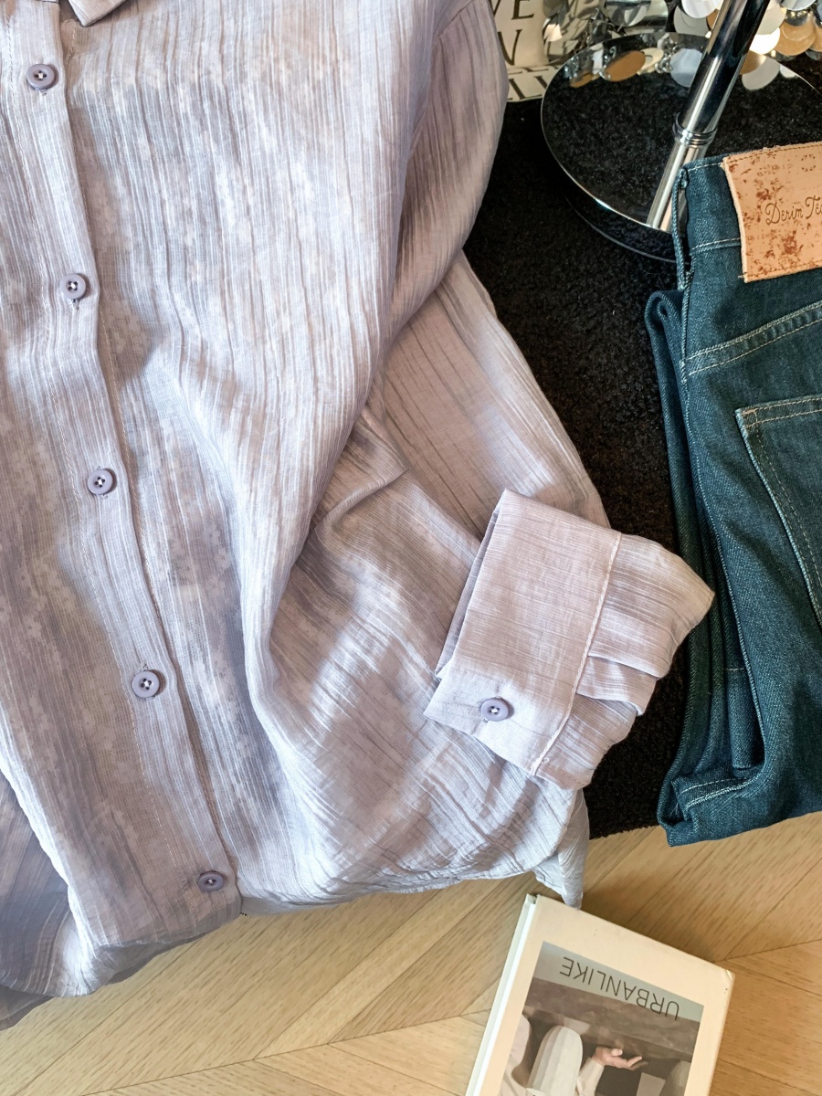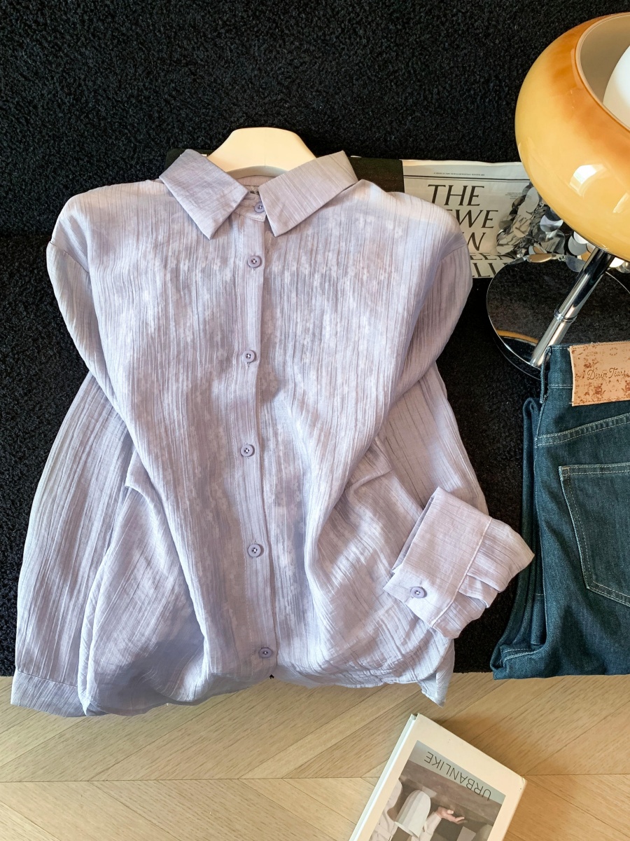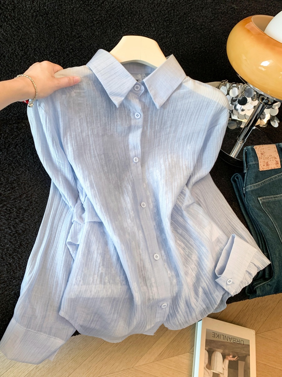 여름 새로운 레이스 조각 폴로 칼라 긴팔 여성 셔츠 디자인 센스 외부 가져 가라. 자외선 차단 의류 오픈 가디건