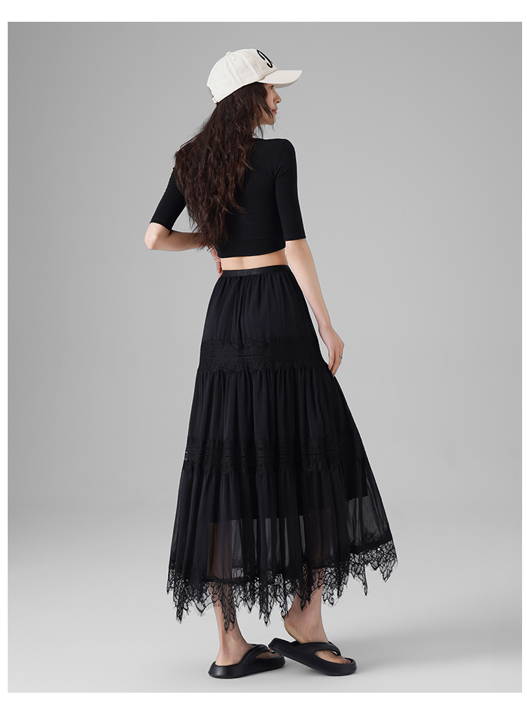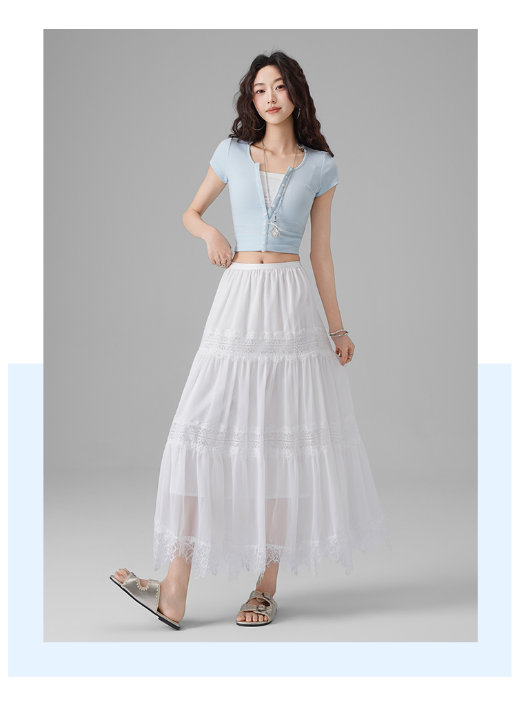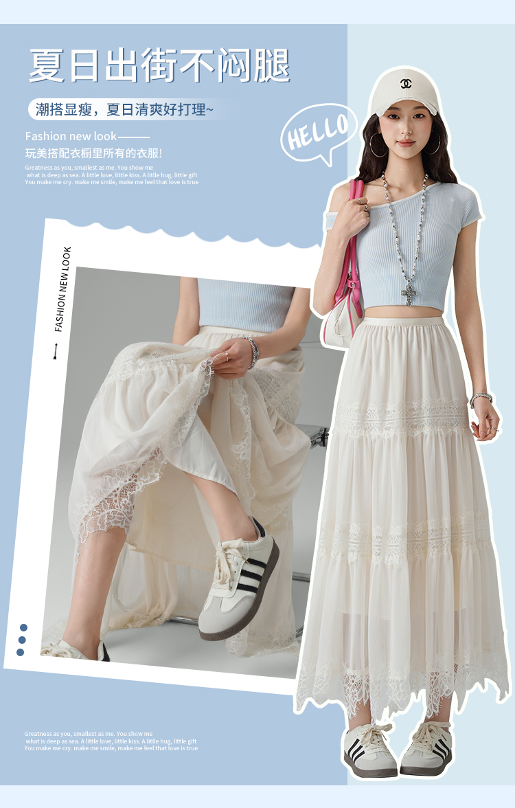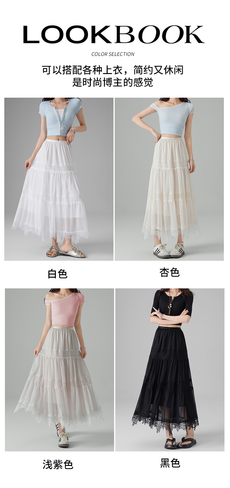 여름 새로운 화이트 반신 스커트 여성 부드러운 바람 품격 망사 철자 레이스 하이웨이스트 도루 센스 한 마디 큰 진자 우산 치마