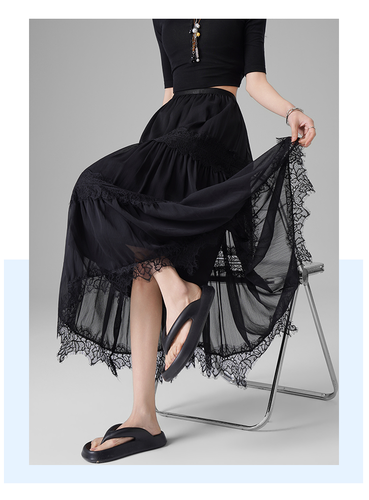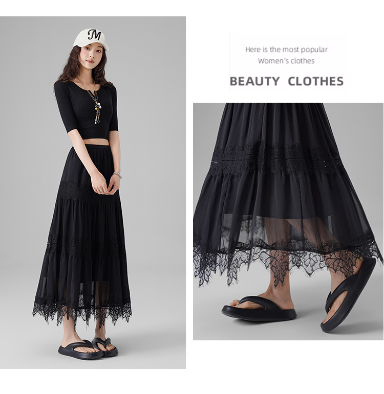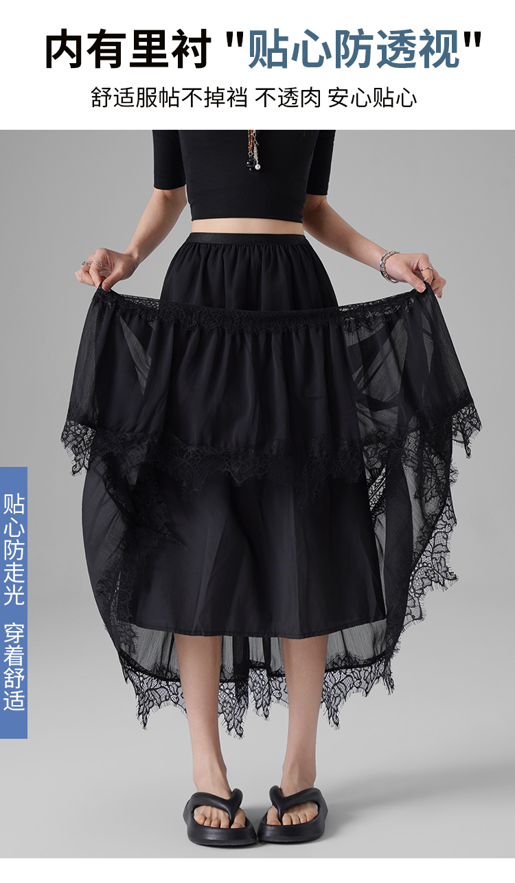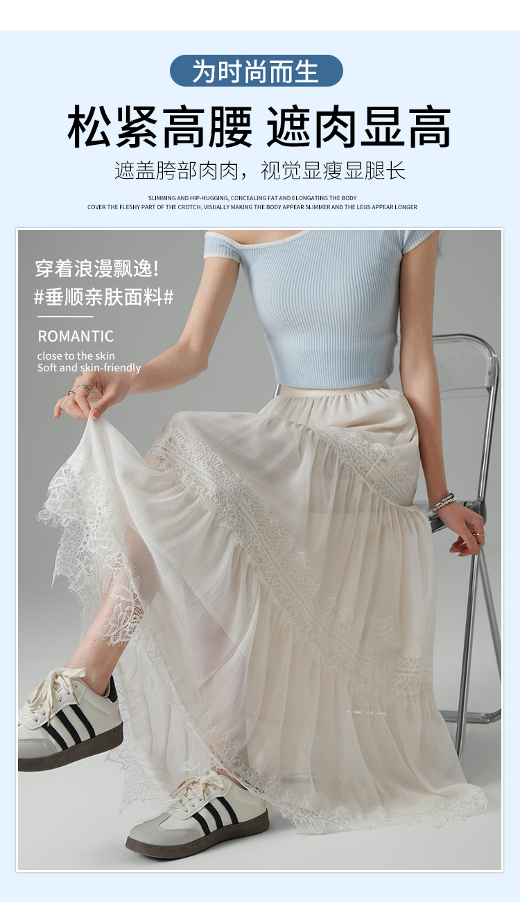 2026 새로운 프랑스식 레이스 조각 하이웨이스트 반신 스커트 여성 케이크 드레스 슬림해 보이는 불규칙 품격 롱 스커트