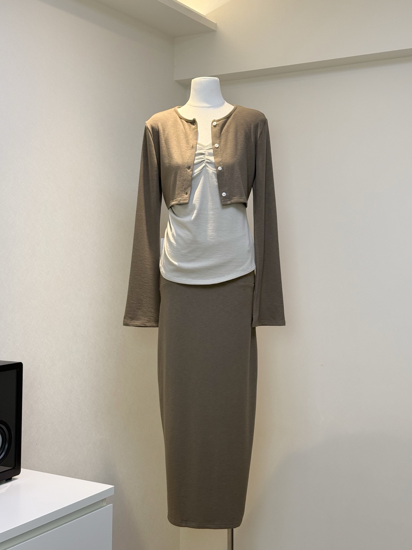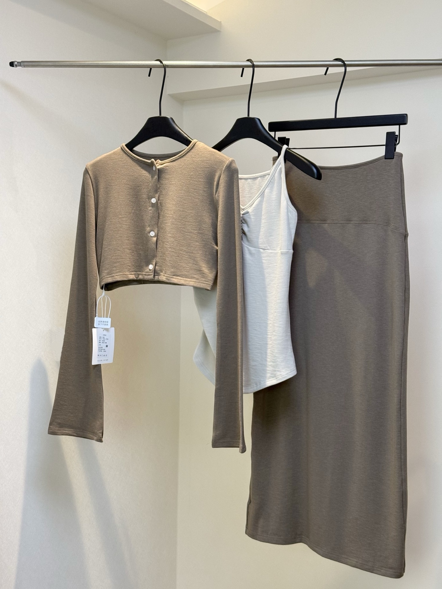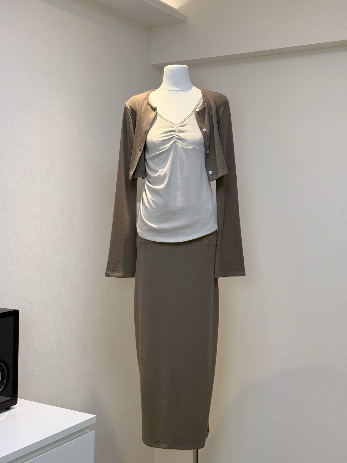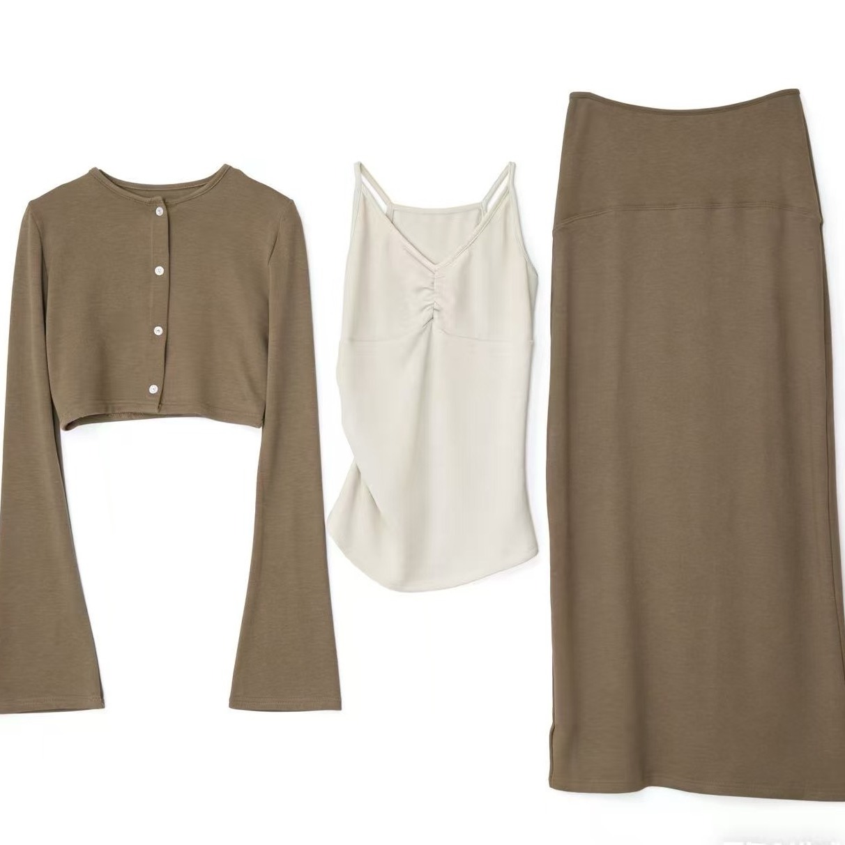 한 부서 부드러운 자매 세트 슬립 반 스커트 오픈 가디건 세 조각 여성 세트 봄 여름 기초 섹션