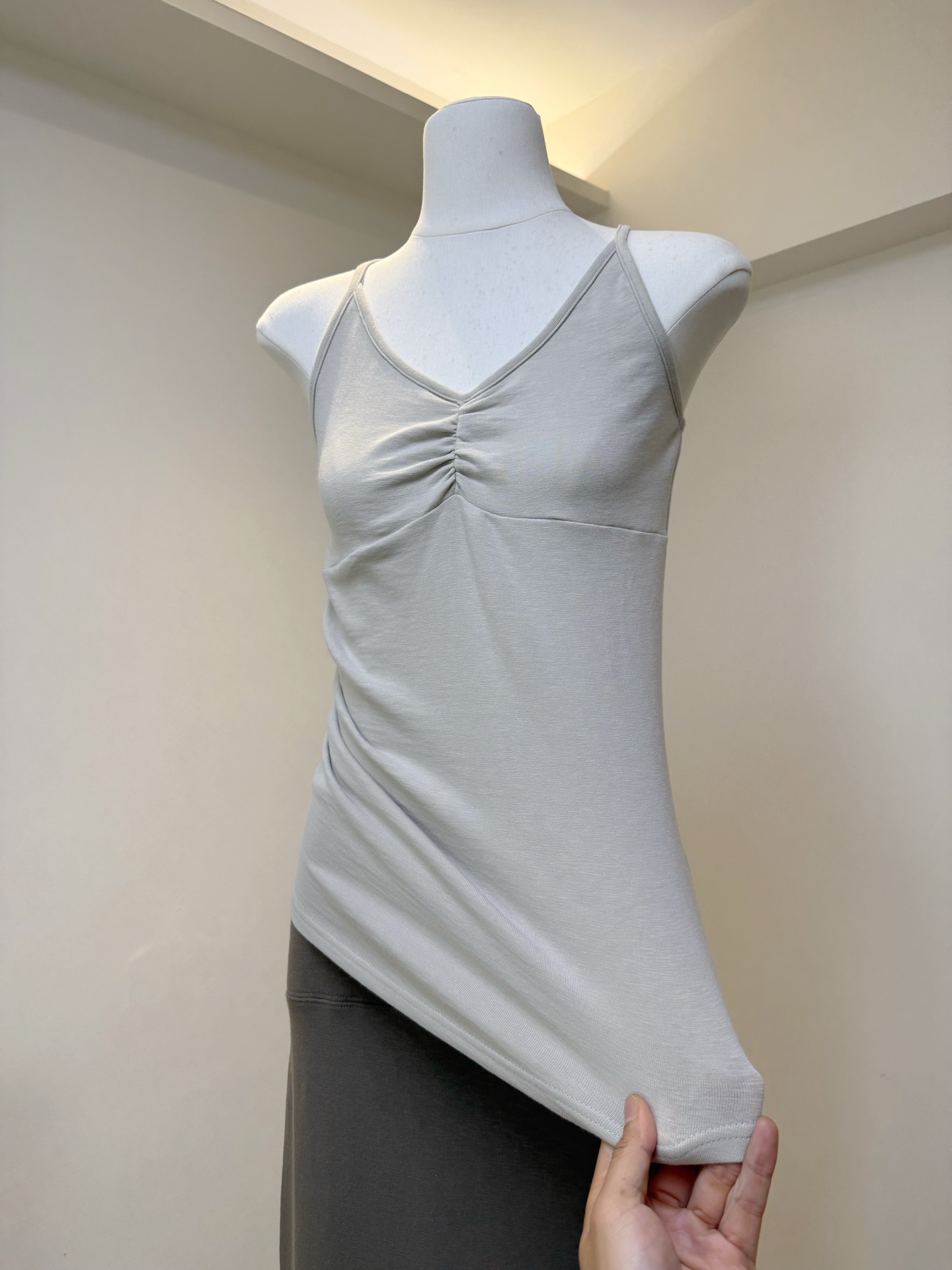 산소 인자 2026 여름 디자인 센스 비틀림 V넥 자이언트 슬림해 보이는 긍정적 인 어깨 반팔 티셔츠 여성