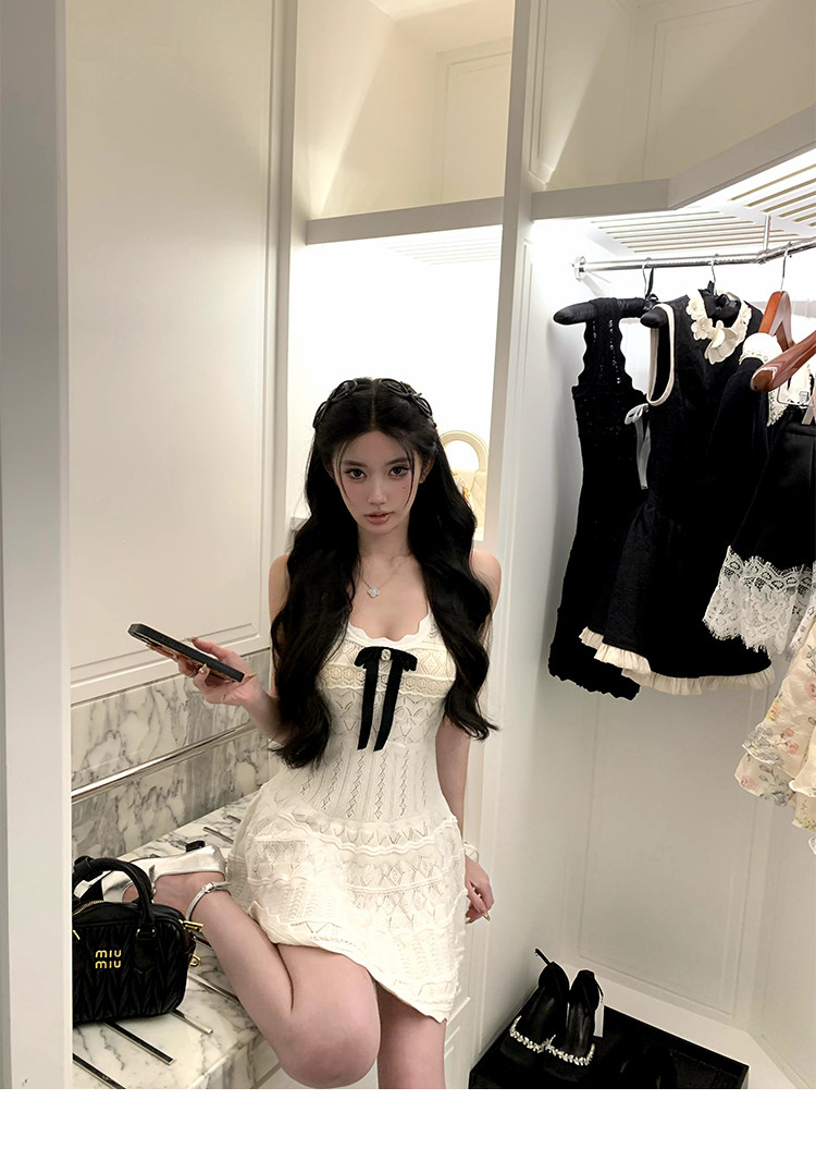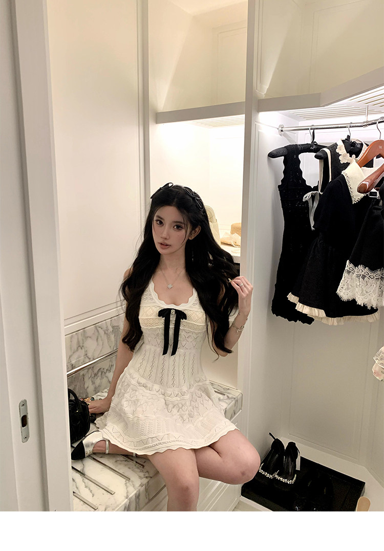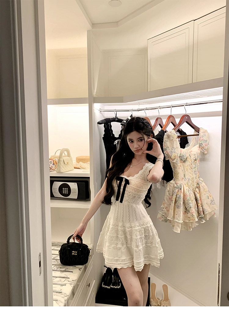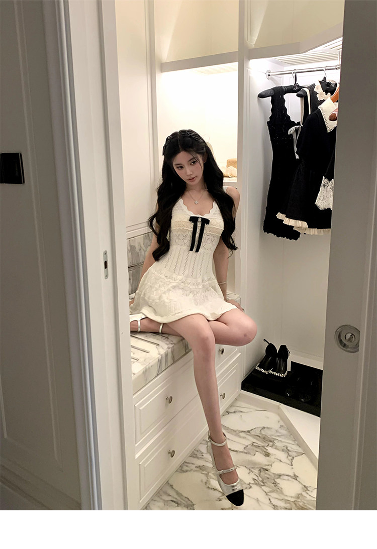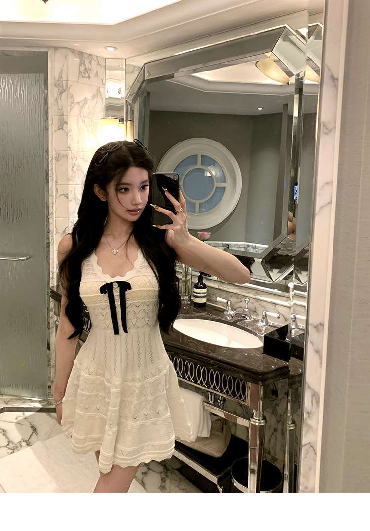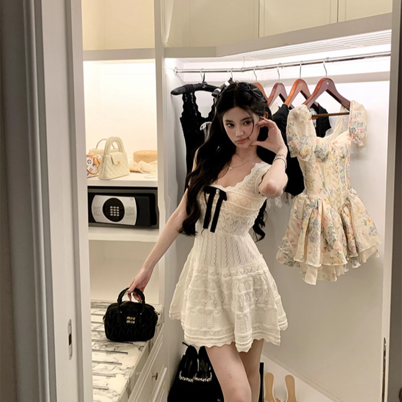 chill 화이트 니트 여성 드레스 봄 긴팔 miu 부서 천 골드 공주 드레스 생일 치마