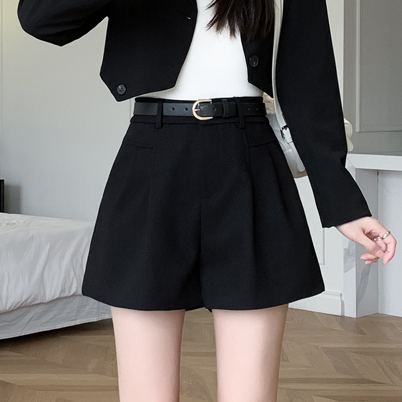 실사 하이웨이스트 캐주얼 워시 물 면 반바지 슬림해 보이는 와이드 레그 팬츠 미니멀리즘 한 마디 반바지 학원 스타일 출퇴근 반바지