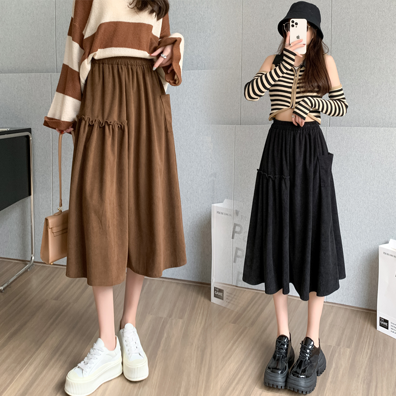실사 중간 길이 요정 치마 여성 하이웨이스트 슬림해 보이는 단색 롱 스커트 여행 바람 빅 플레어 스커트 편안함 우산 치마 A라인 스커트