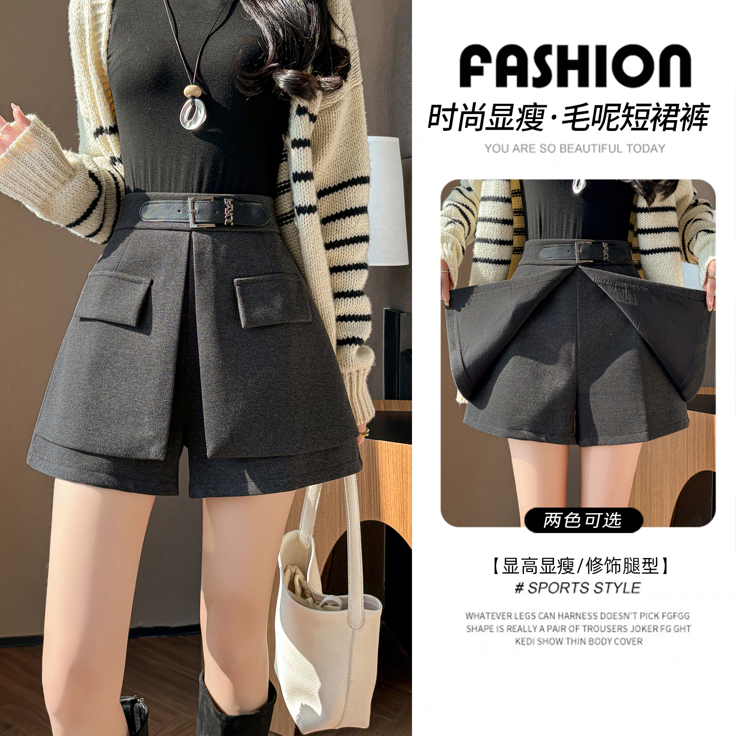 실사 모직 반바지 여성 2026 가을 겨울 새로운 외출용 페이크 레이어드 A라인 스커트 슬림해 보이는 치마바지 만나는 부츠 팬츠