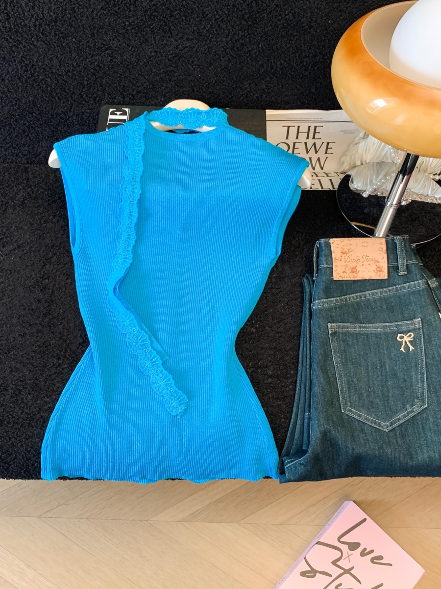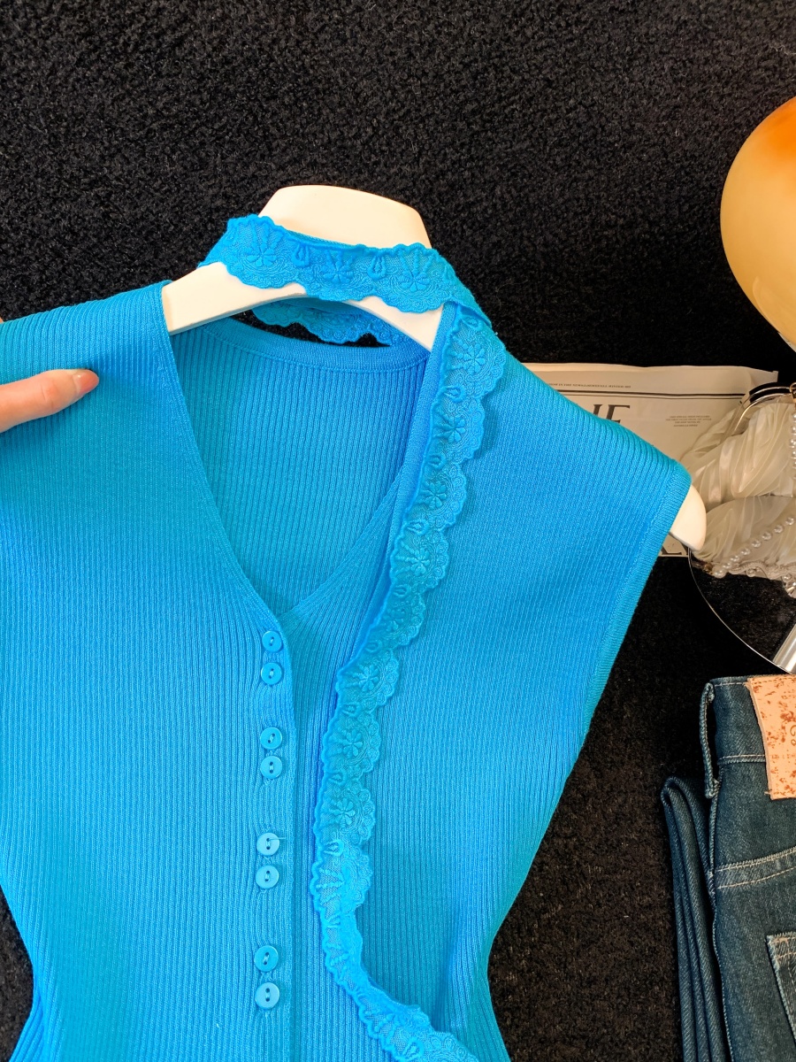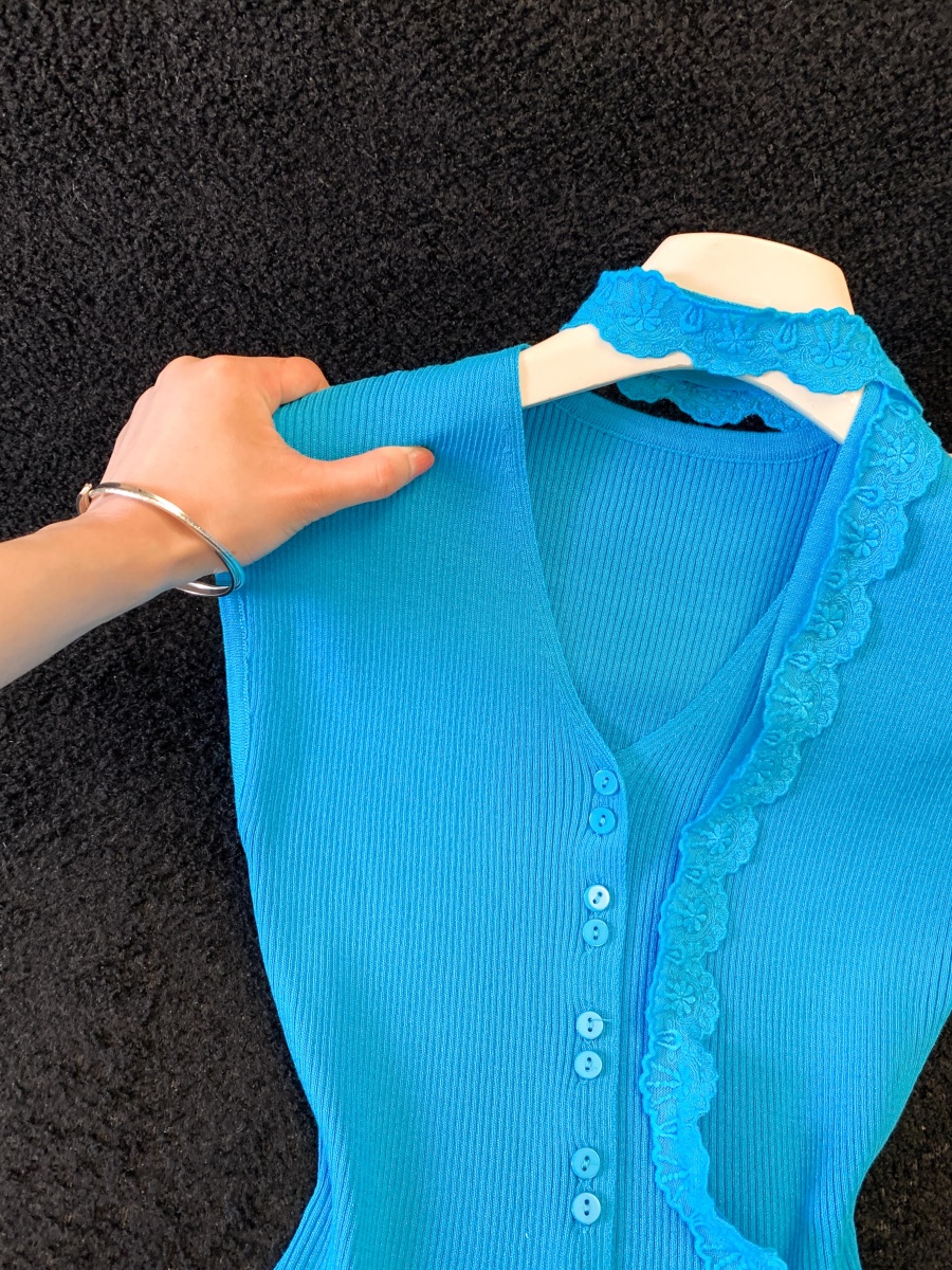 실사 여름 한 부서 순수한 욕망 칼라 니트 캐미솔 몸매 가꾸기 민소매 맨위 분위기 센스 핫걸 조끼