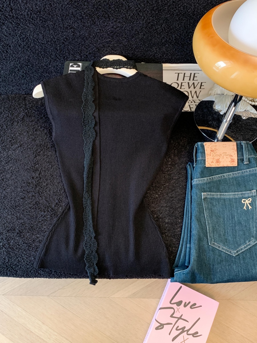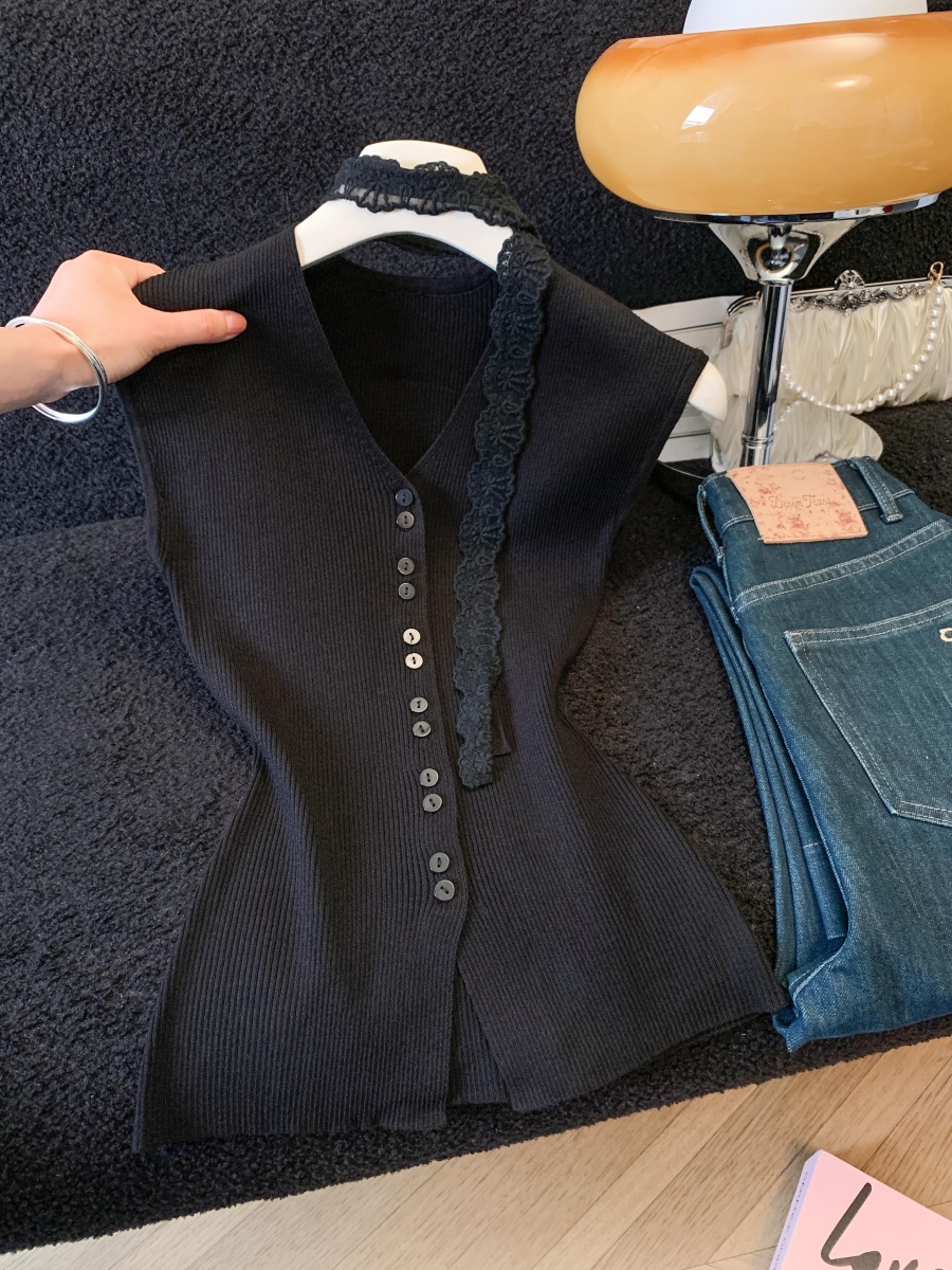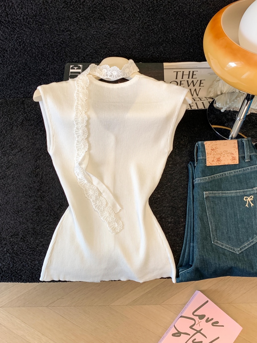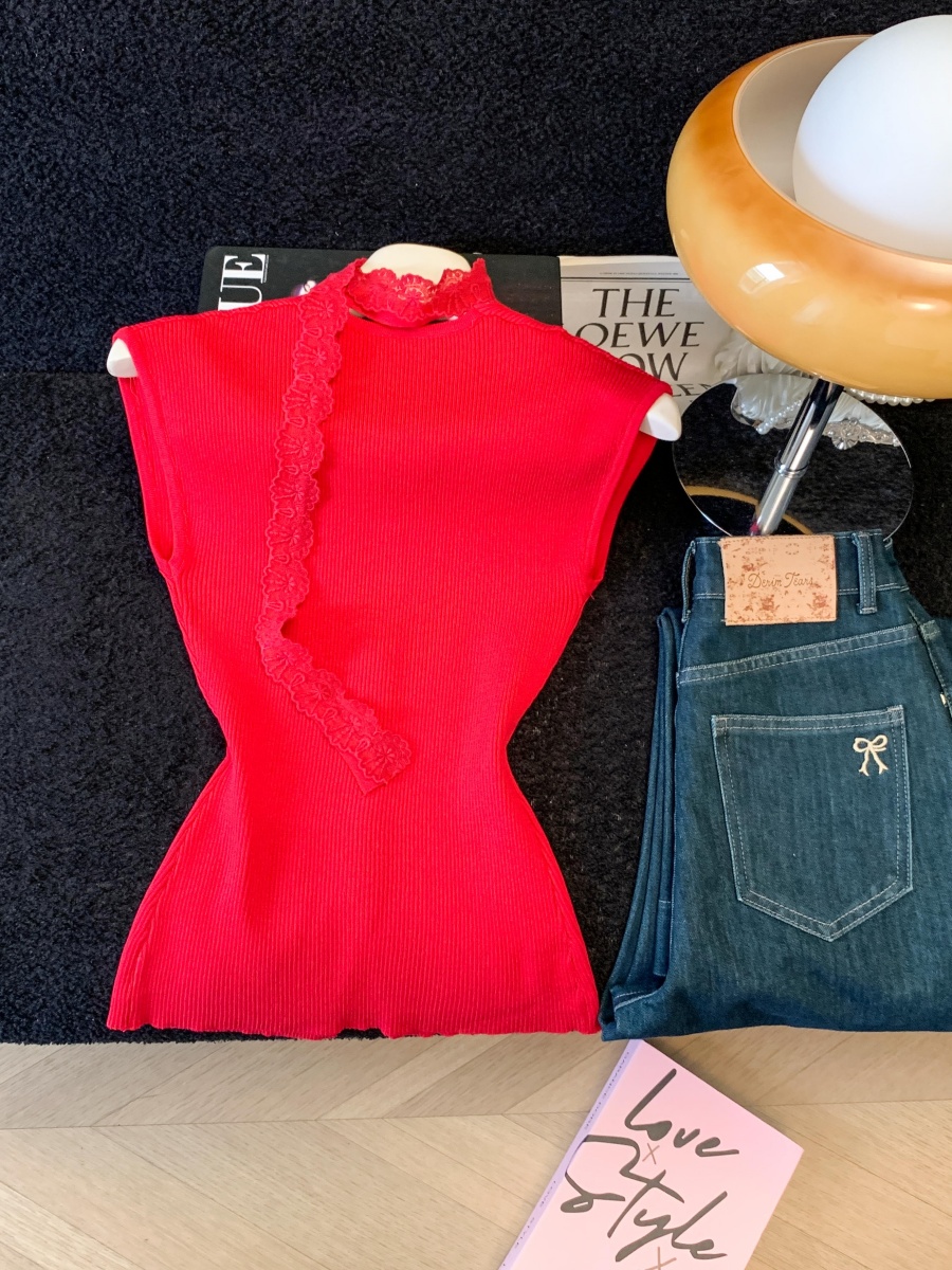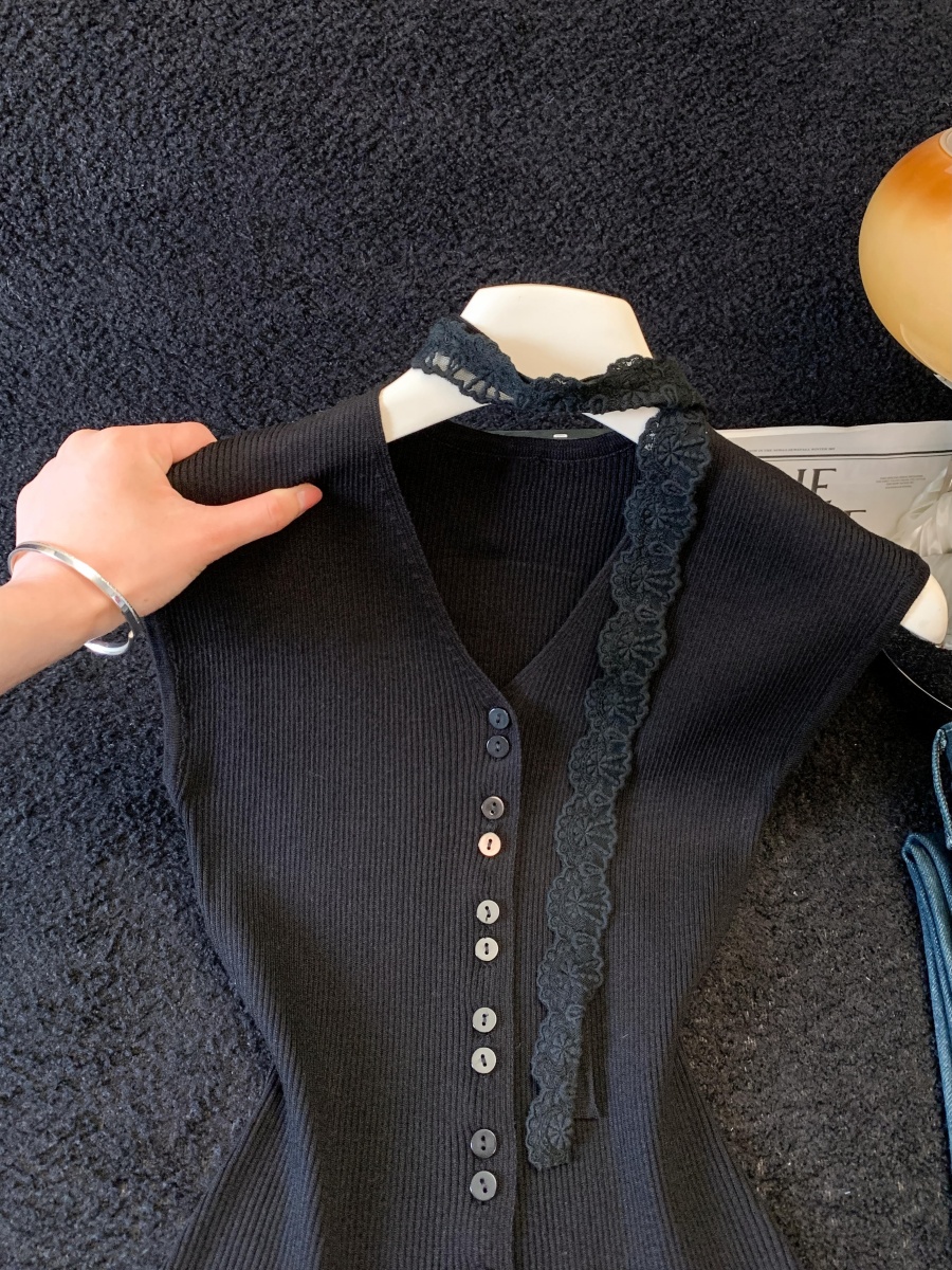 실사 한 부서 chic Chic 여름 휴가 외출용 홀로우 아웃 니트 민소매 맨위 여성 새로운 외출용 레이스
