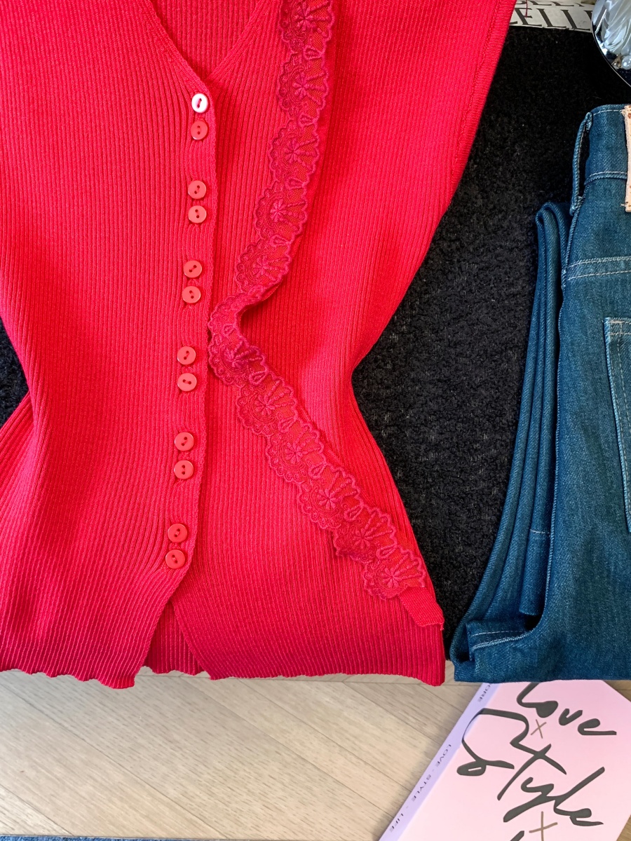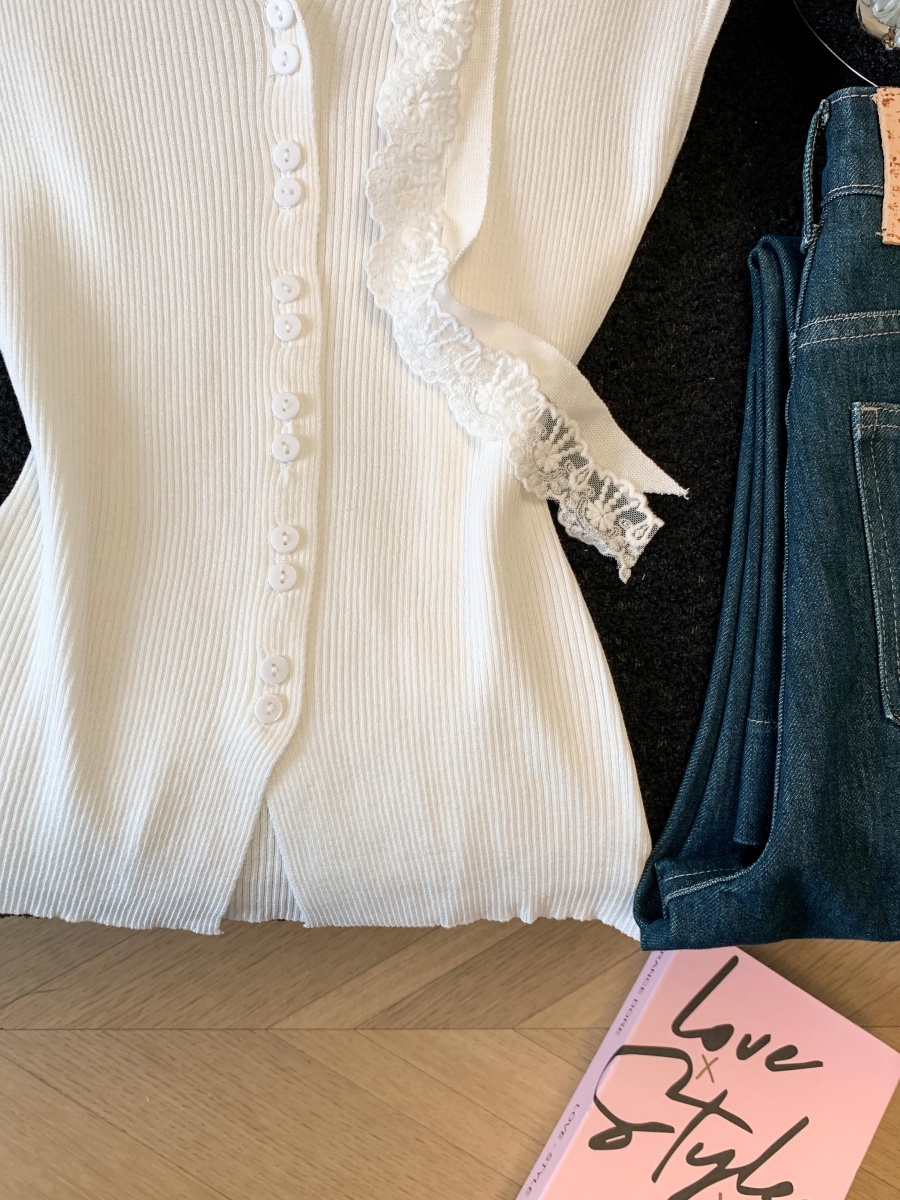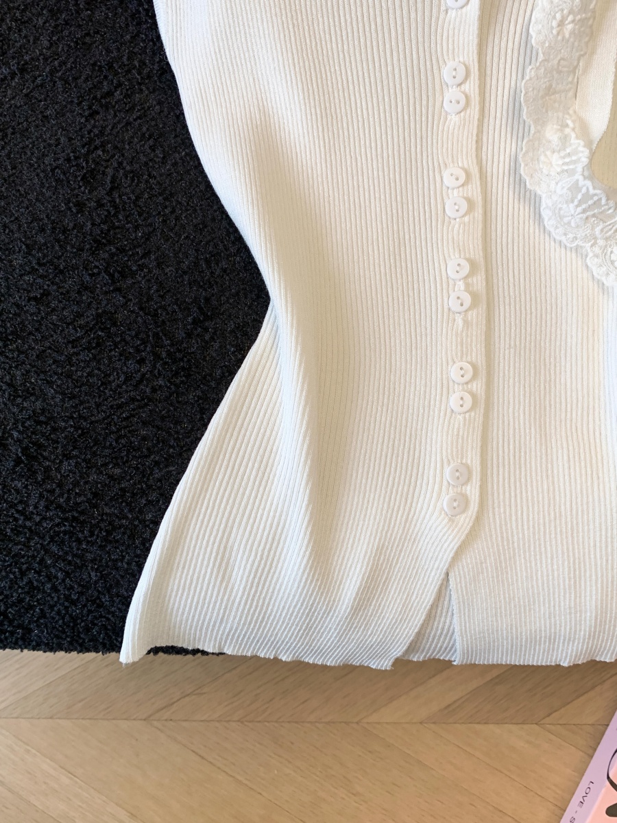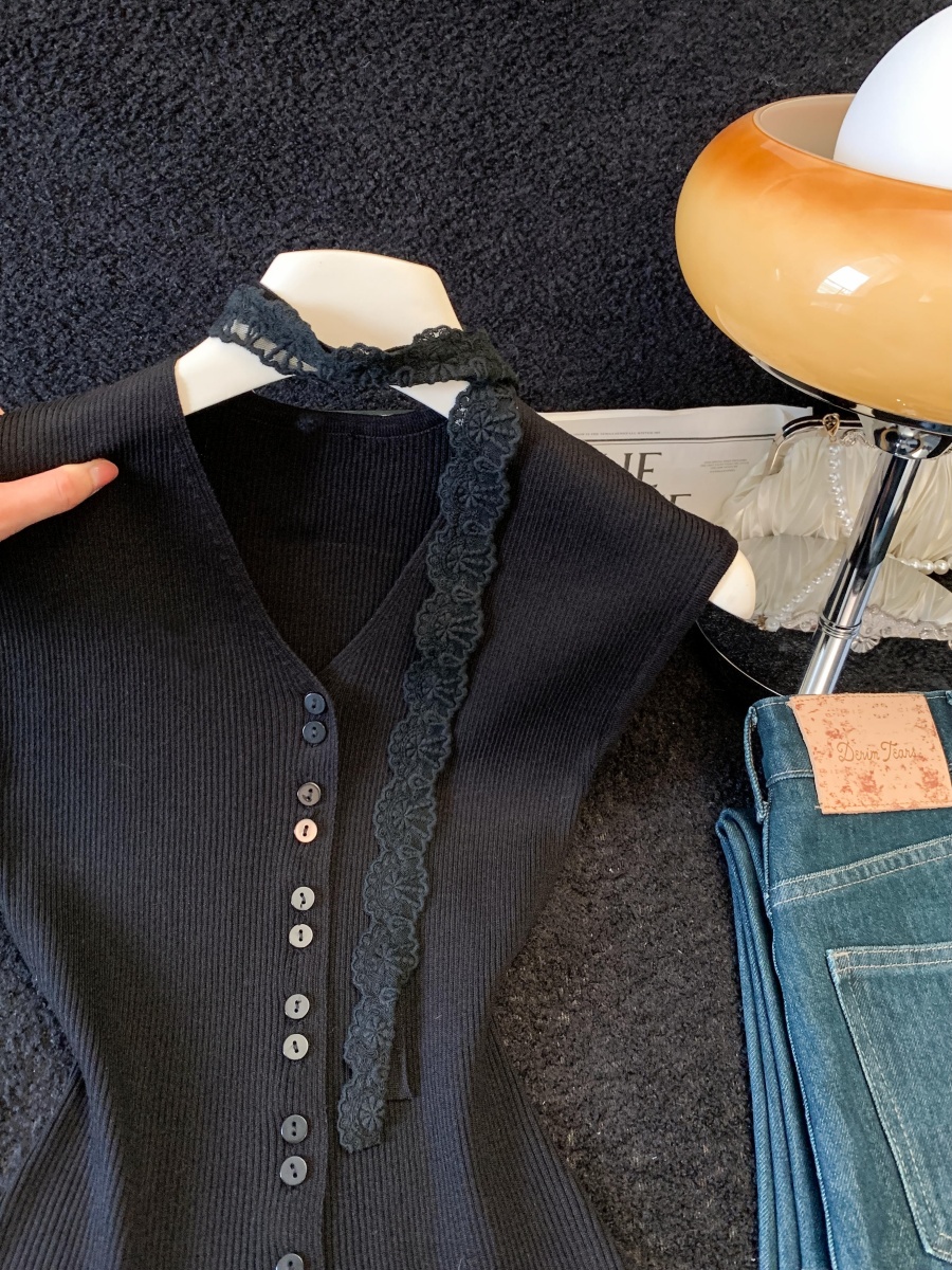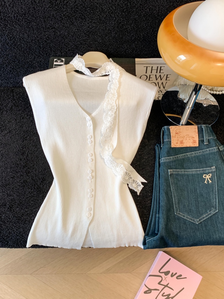 실사 한 부서 chic Chic 여름 휴가 외출용 홀로우 아웃 니트 민소매 맨위 여성 새로운 외출용 레이스