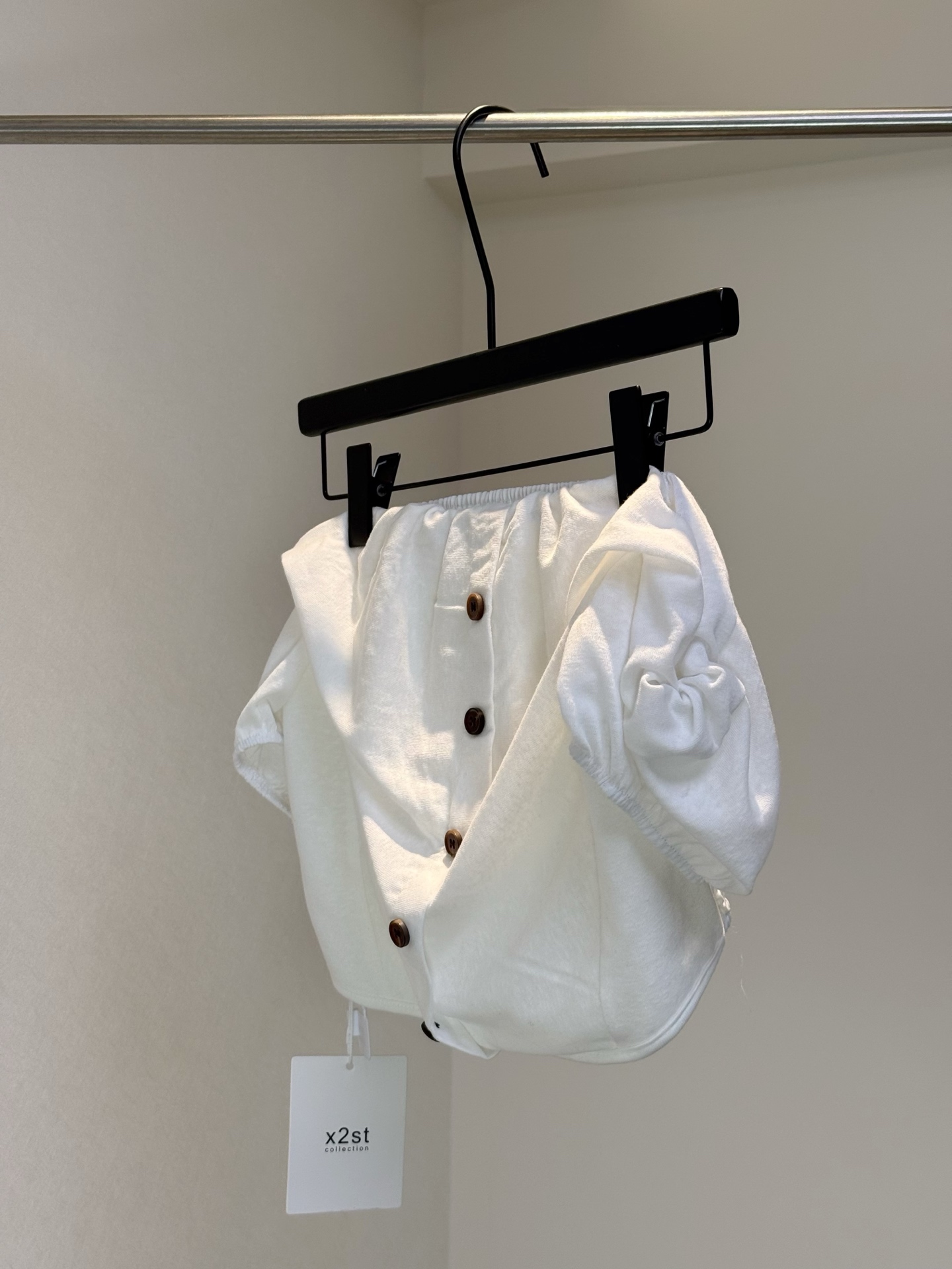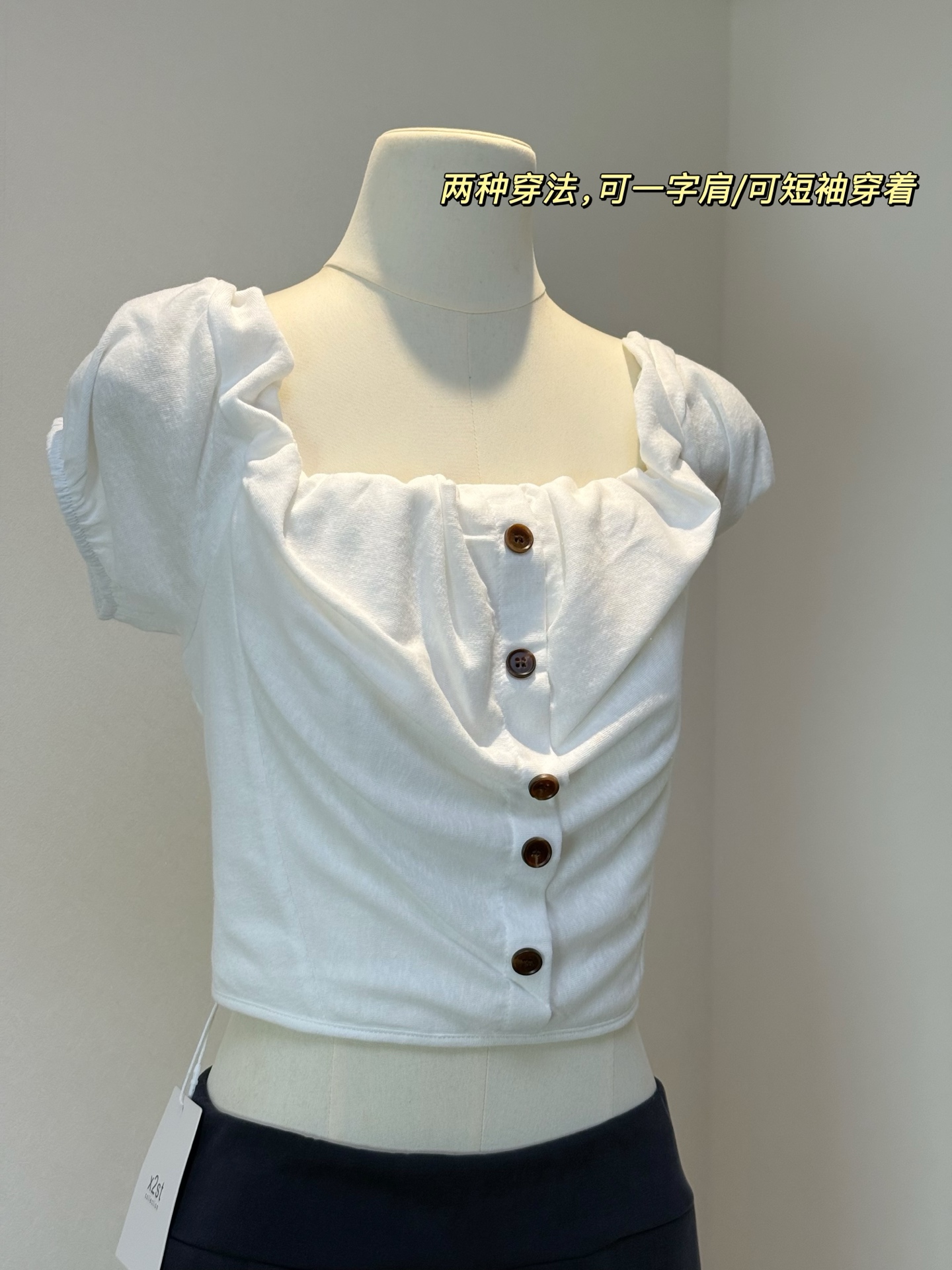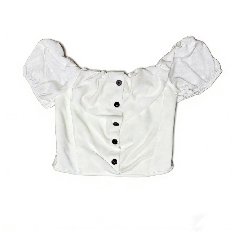 소녀 마음 오프숄더 작은 맨위 단색 쇼트 스타일 풀오버 화이트 캐주얼 반팔
