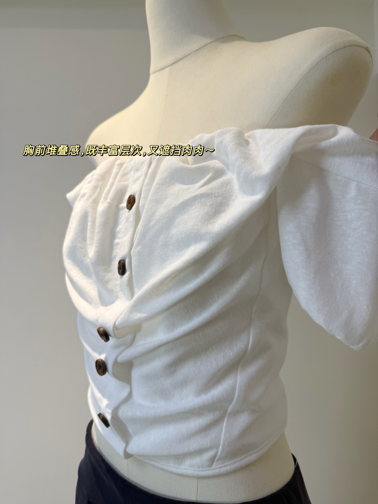 산소 인자 2026 여름 디자인 센스 비틀림 V넥 자이언트 슬림해 보이는 긍정적 인 어깨 반팔 티셔츠 여성