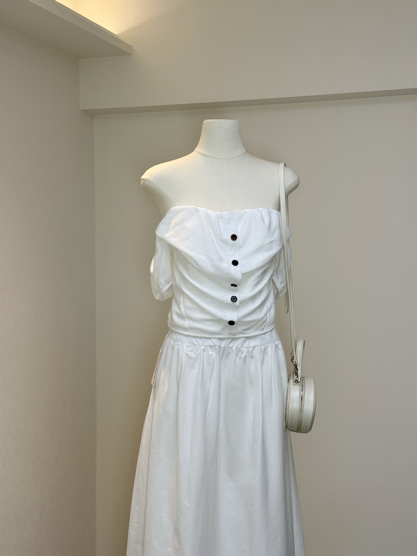 재스민 화이트 하이웨이스트 와이드 허리 머리 한 마디 밑단 반신 롱 스커트 화이트 봄 여름 우산 치마