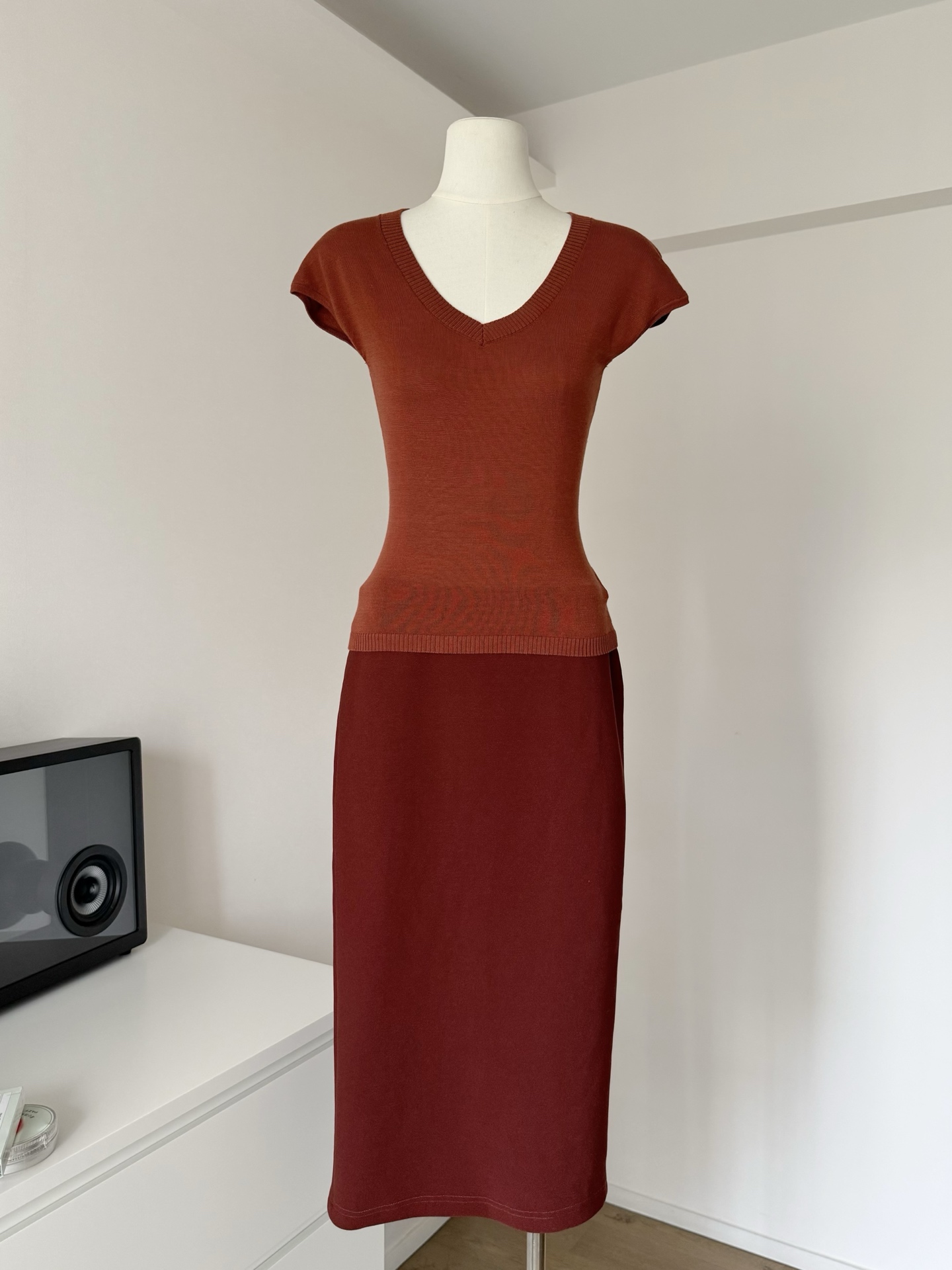 느슨함 내 젓기 내 젓기 치마 이른 봄 그냥 필요 디자인 센스 불규칙 니트 중간 길이 반신 스커트