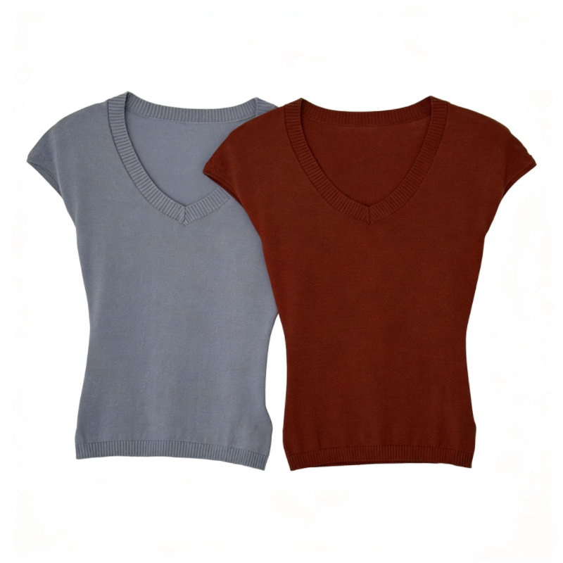 산소 인자 2026 여름 디자인 센스 비틀림 V넥 자이언트 슬림해 보이는 긍정적 인 어깨 반팔 티셔츠 여성