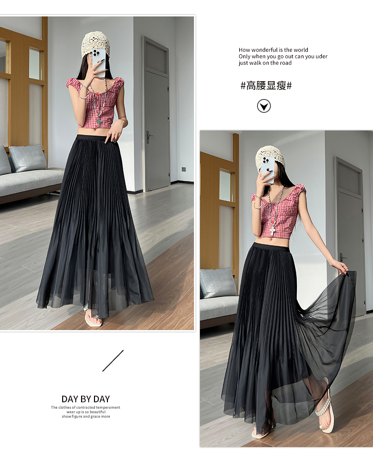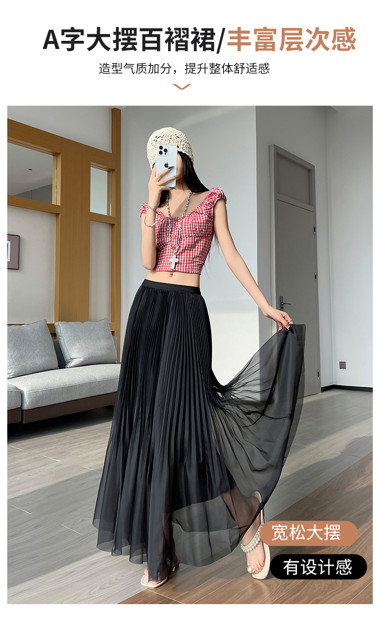 프랑스식 헤일로 염색 깃발 실 롱 스커트 여성 여름 새로운 루즈핏 슬림해 보이는 반신 스커트 도루 가을 센스 플리츠 한 마디