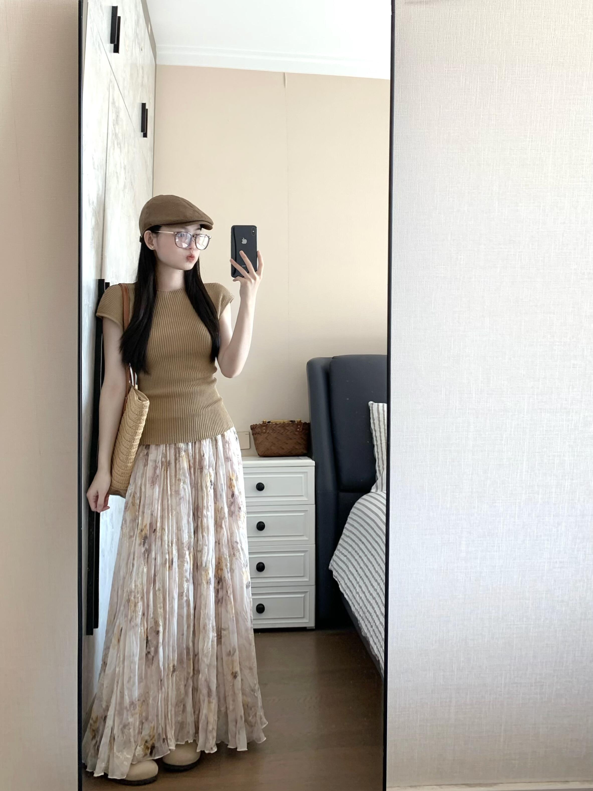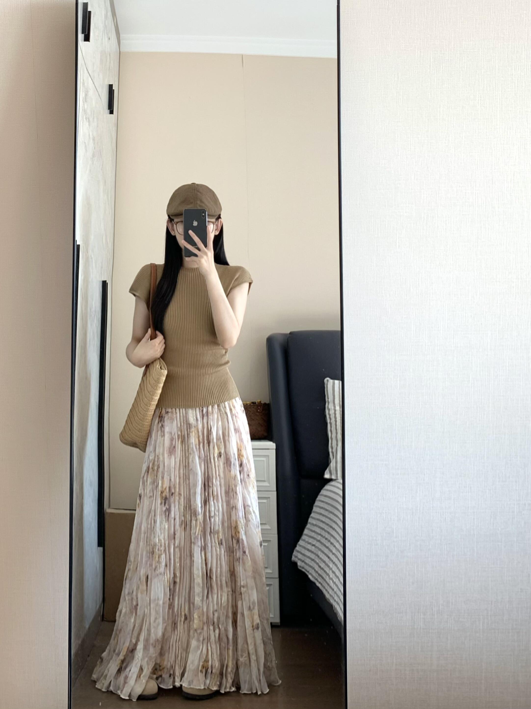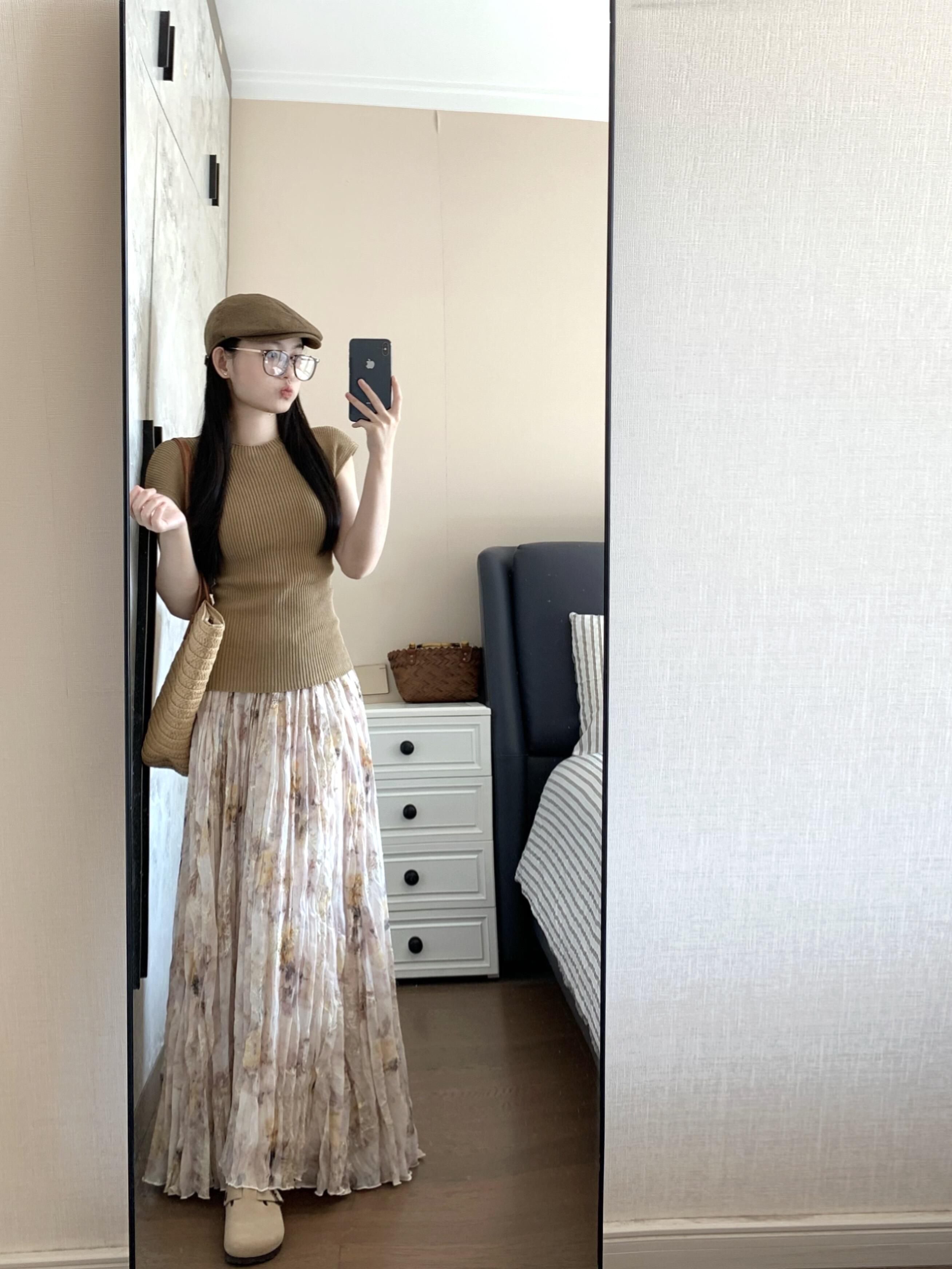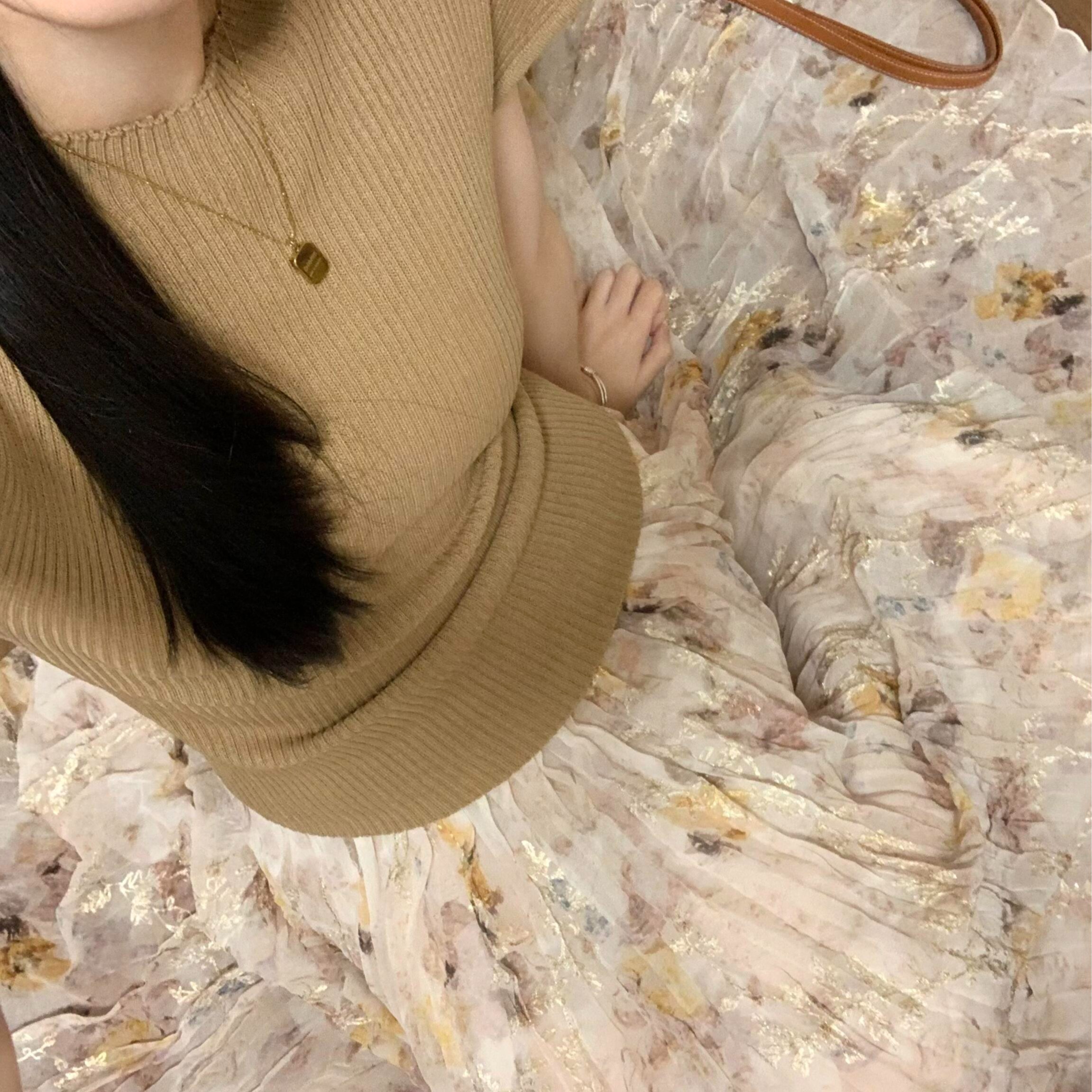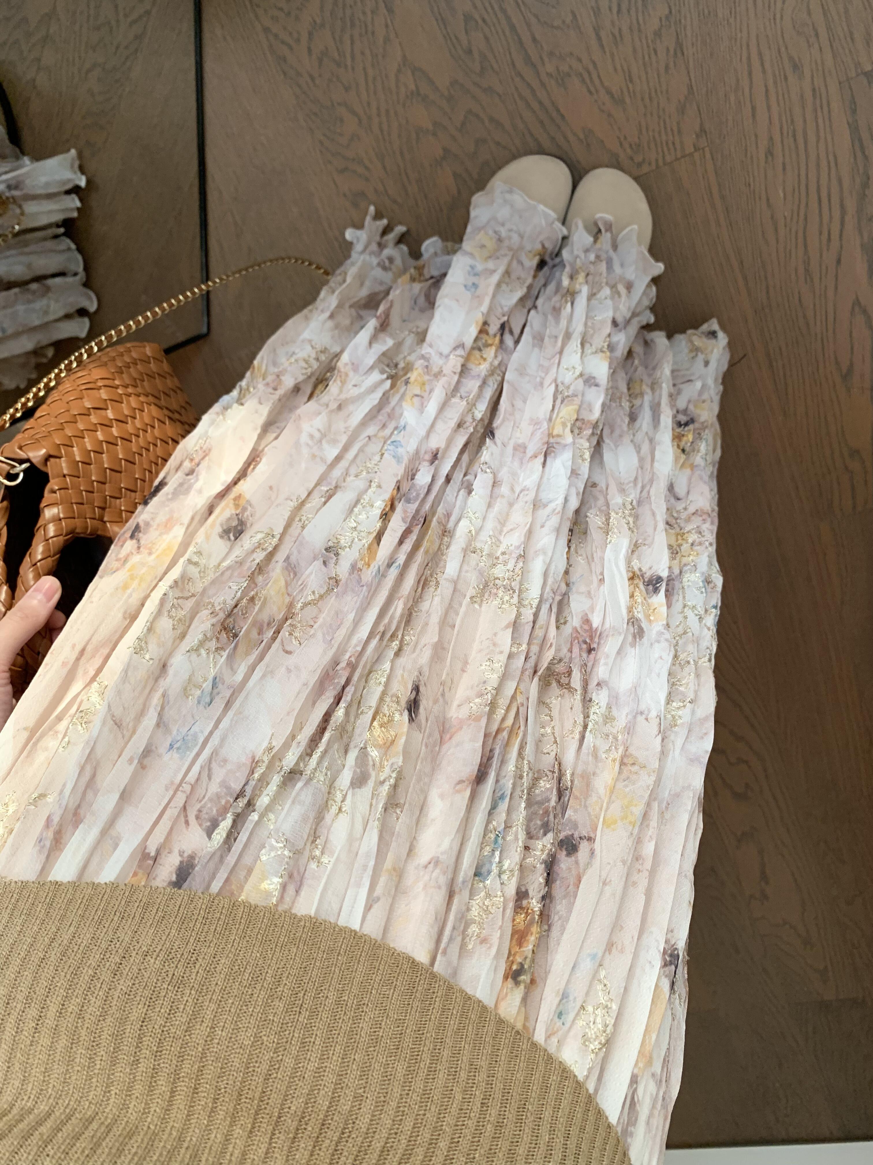 정원 실루엣 플리츠 꽃무늬 반신 스커트 여성 여름 디자인 센스 플리츠 스커트