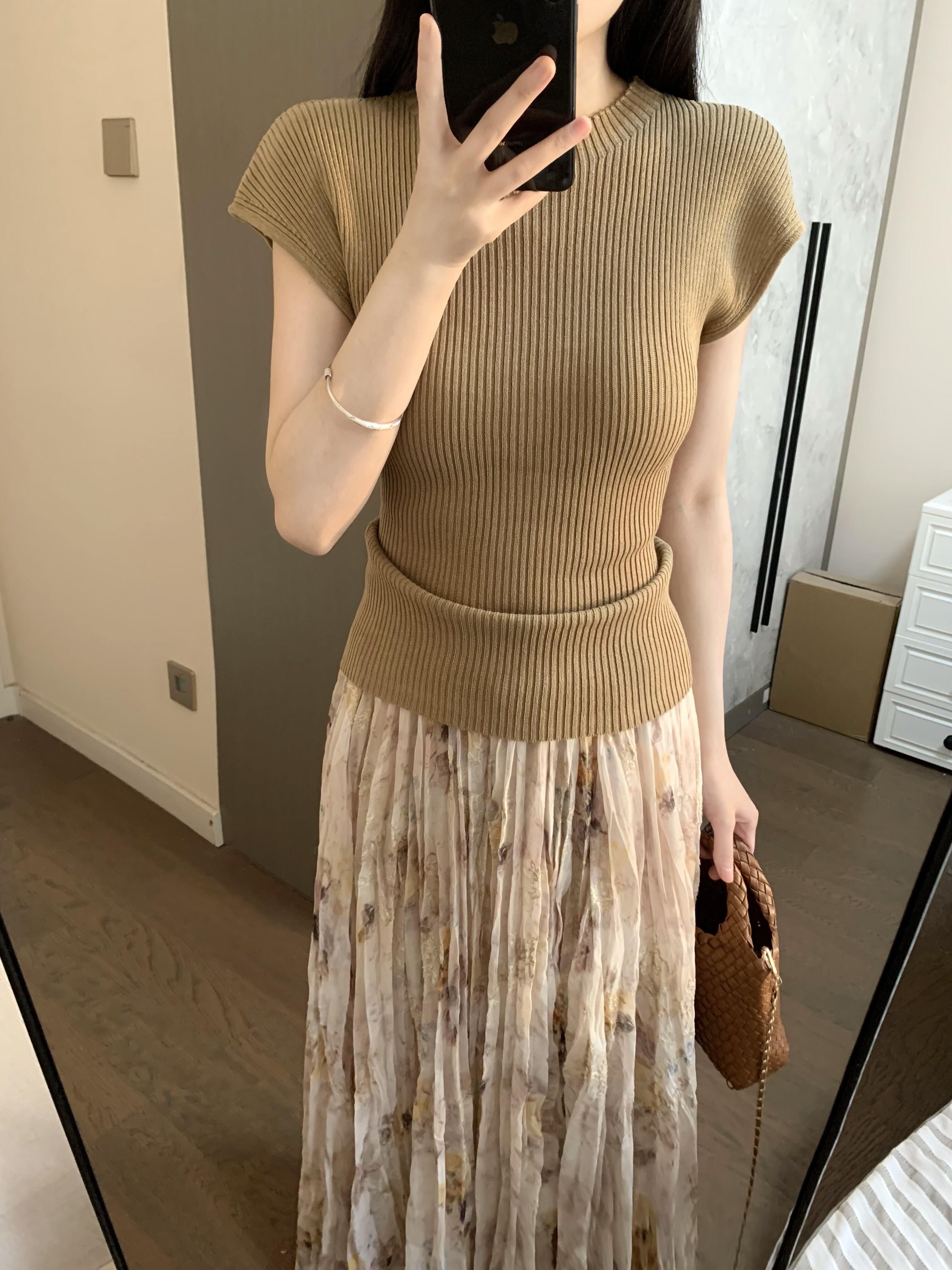 미니멀리즘 우유 황색 V넥 니트 스웨터 티셔츠 여성 긴 소매 여름 새로운 허리 수축 슬림해 보이는 맨위 자외선 차단 블라우스