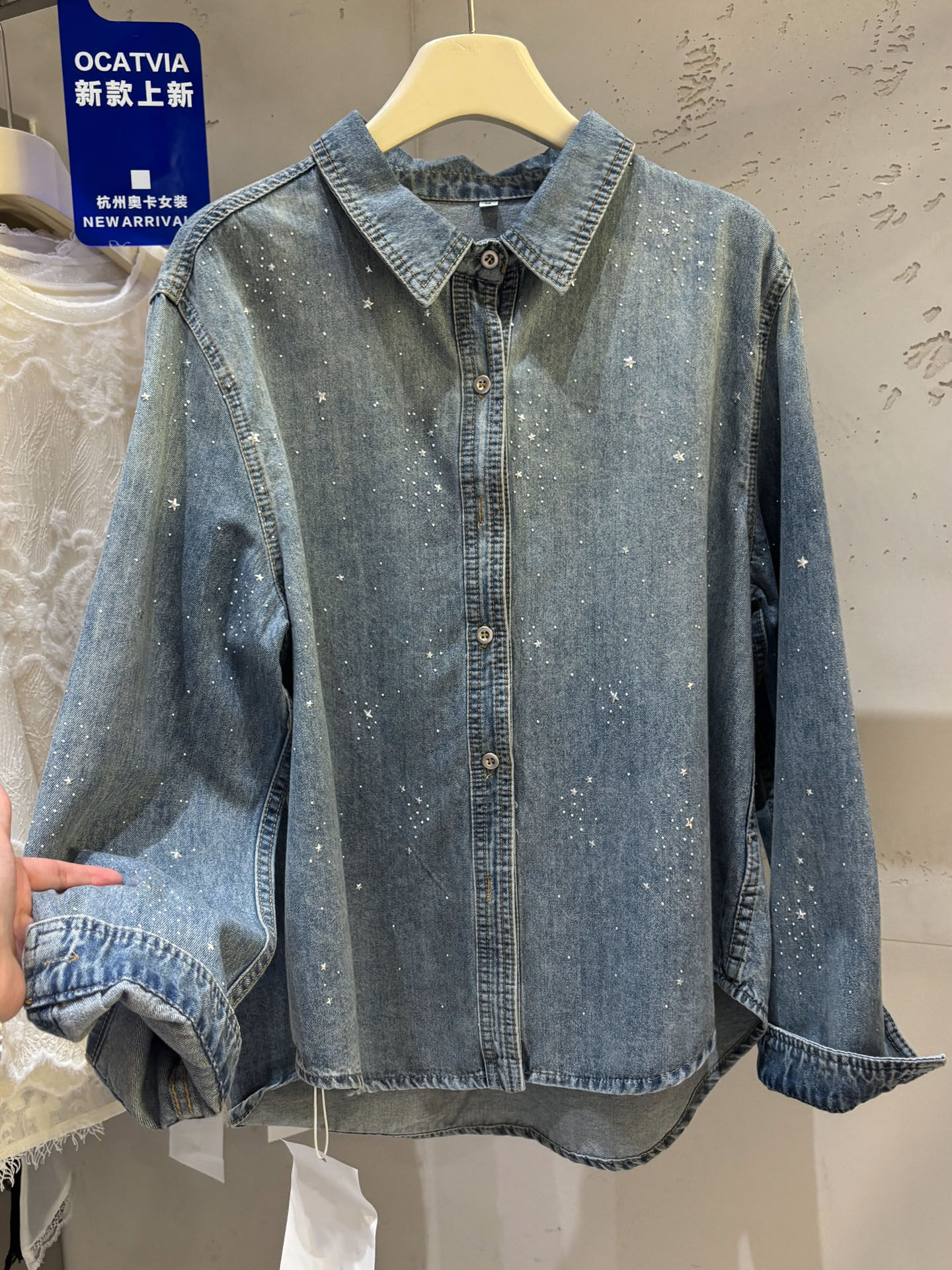 높음 세트 유럽 상품 빛나는 별 핫픽스 데님 셔츠 여성 긴 소매 2026 봄 새로운 캐주얼 다용도 맨위