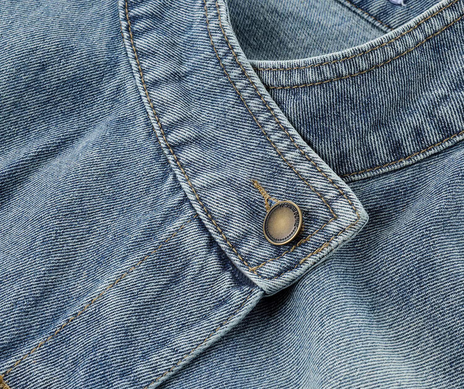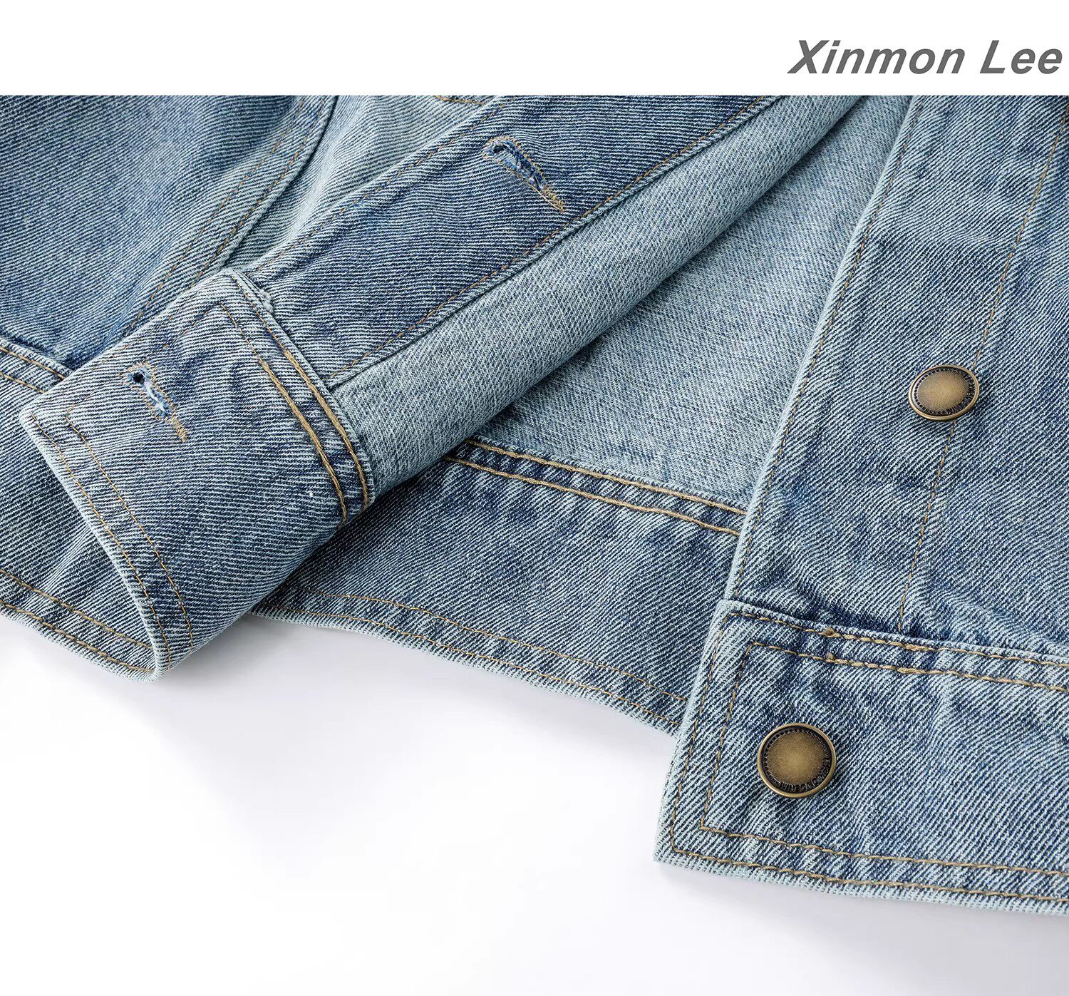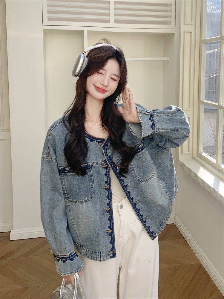 무거운 작업 자수 데님 쇼트 스타일 여성 코트 2026 봄 드레스 새로운 한 부서 착용 가져 가라. 자이언트 잘 생긴 라운드 넥 재킷 맨위