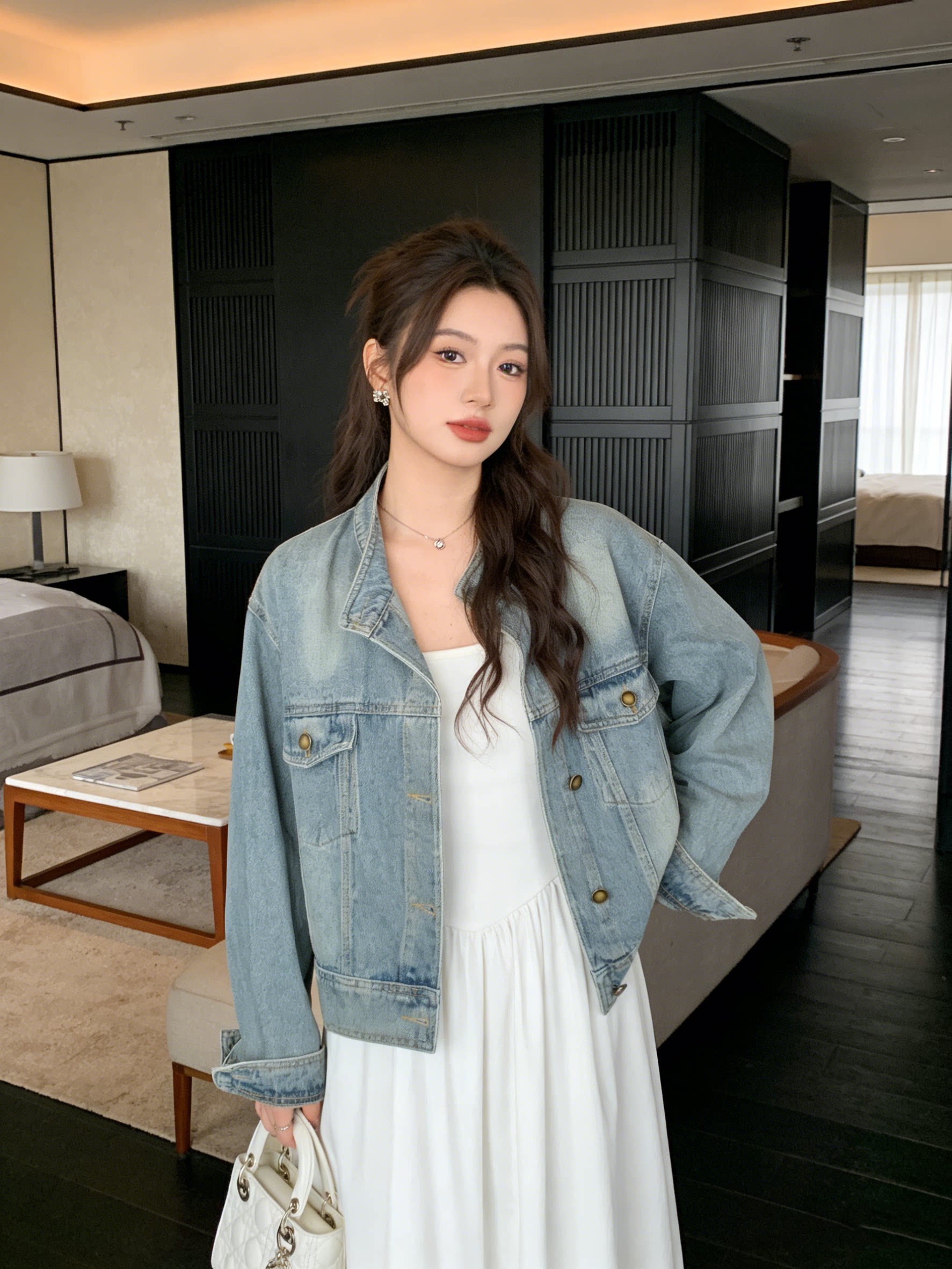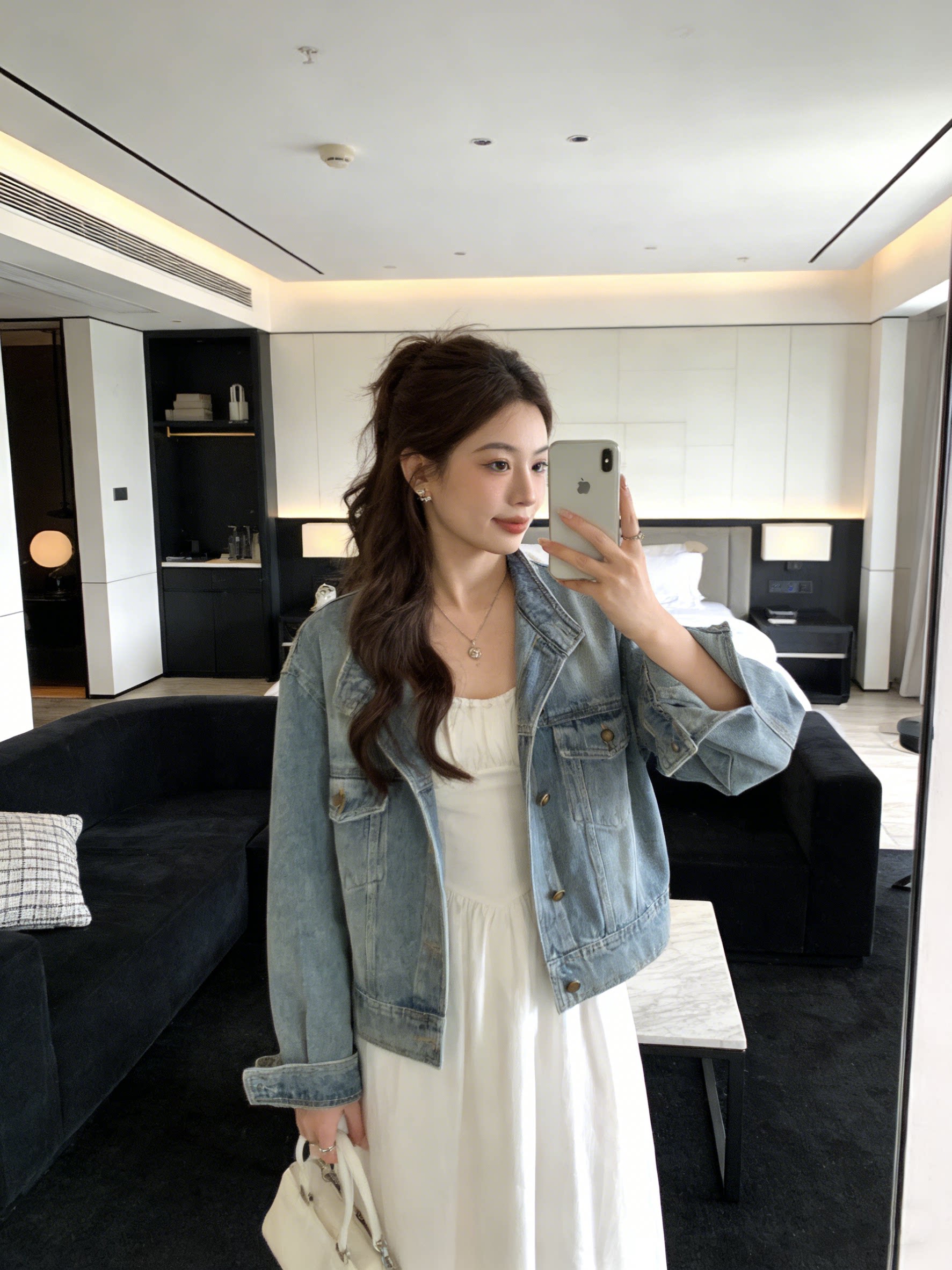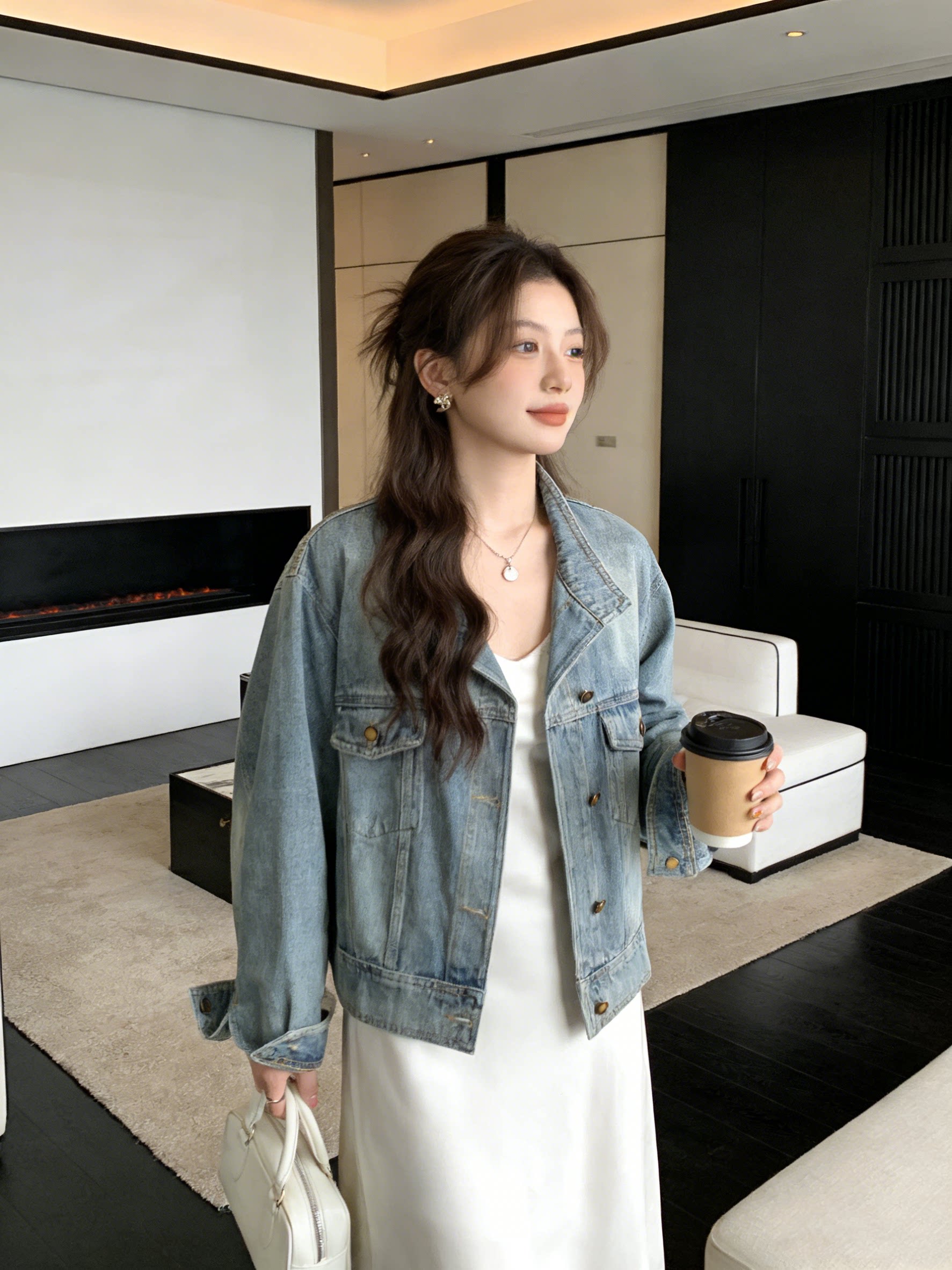 2026 봄 새로운 한국 스타일 레트로 비즈 박기 핫픽스 쇼트 스타일 데님 여성 코트 작은 키 다용도 슬림해 보이는 재킷