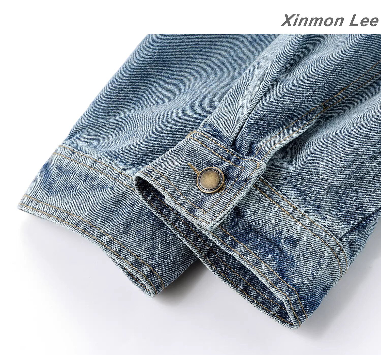 한국 2026 봄 새로운 복잡한 고대의 이름 가족 바람 자수 패션 한국 스타일 품격 데님 재킷 오래된 돈 바람 맨위