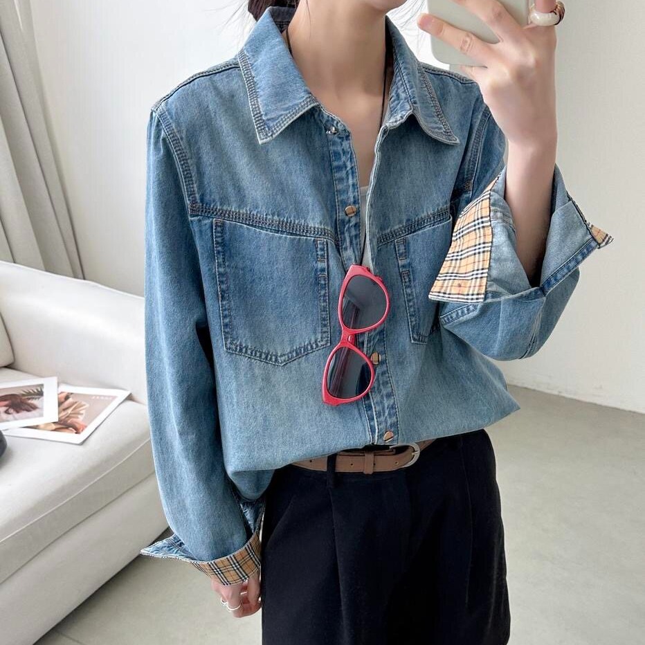 2026 년 봄 새로운 패션 레트로 데님 셔츠 여성 긴 소매 파란색 셔츠 재킷 캐주얼 품격 맨위