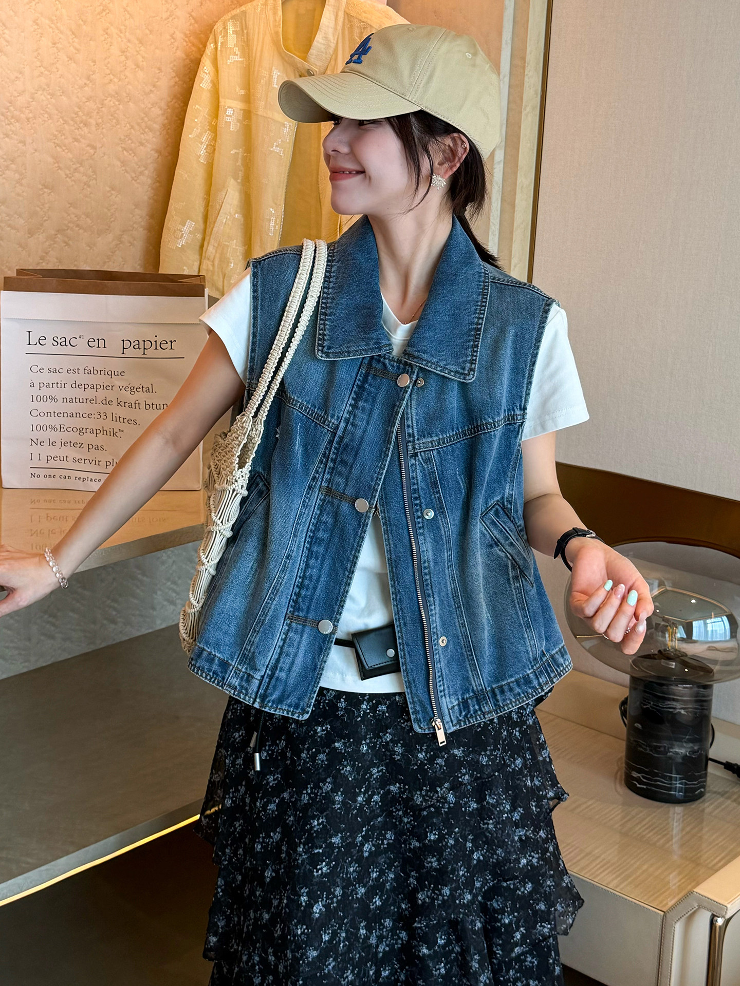 레트로 폴로 칼라 지퍼 데님 베스트 여성 코트 유럽 역 2026 봄 드레스 새로운 유럽 상품 여성 의류 카우보이 의류 트렌디