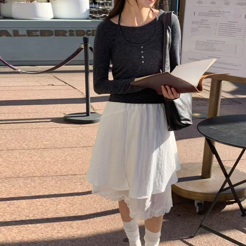 크기 있음 업데이트 한 부서 작은 대중 디자인 센스 다용도 불규칙 레이스 조각 허리밴드 반 스커트