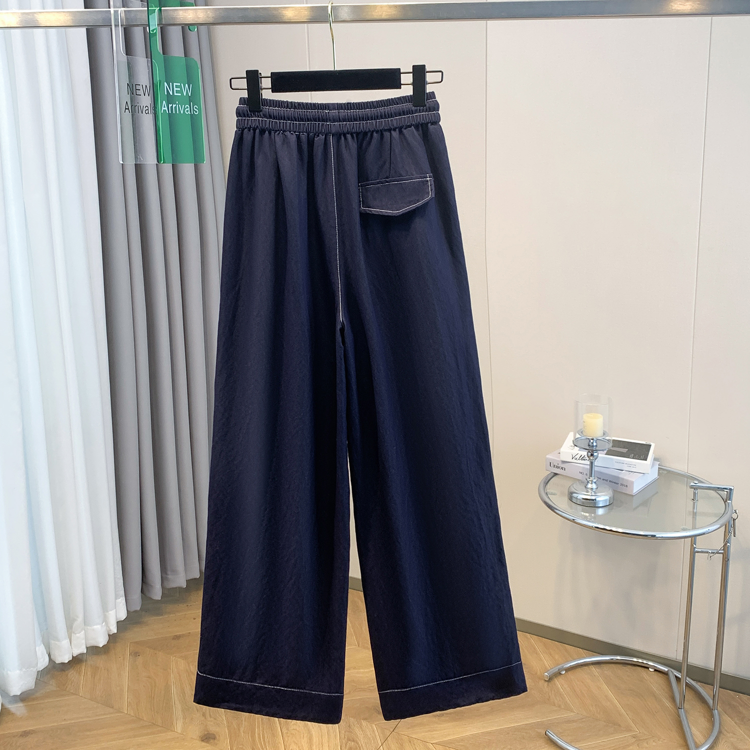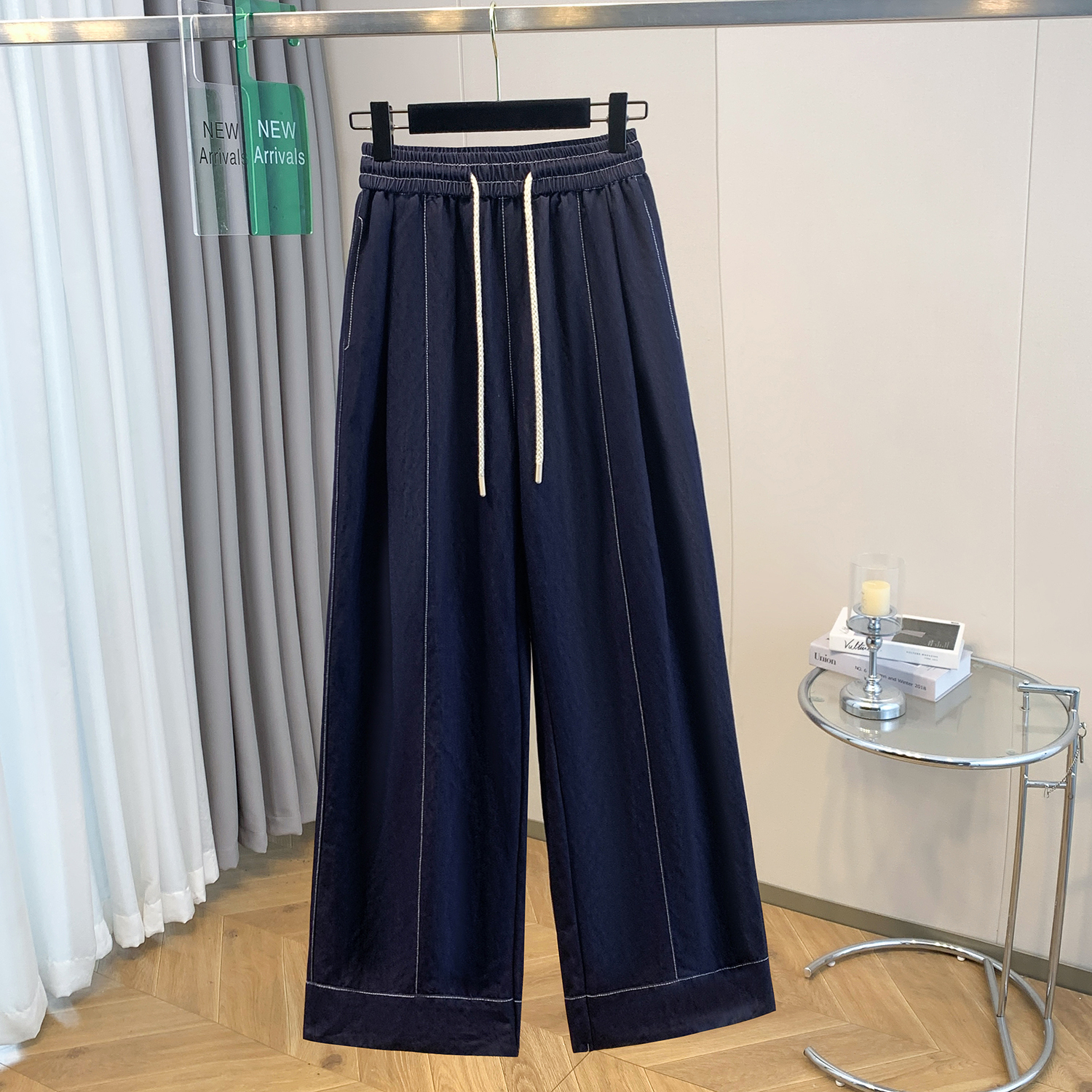 2026 년 봄 새로운 하이웨이스트 슬림해 보이는 작은 말 행침 장식 스트레이트 캐주얼 바지 여성 디자인 센스 넓은 다리 다용도 바지