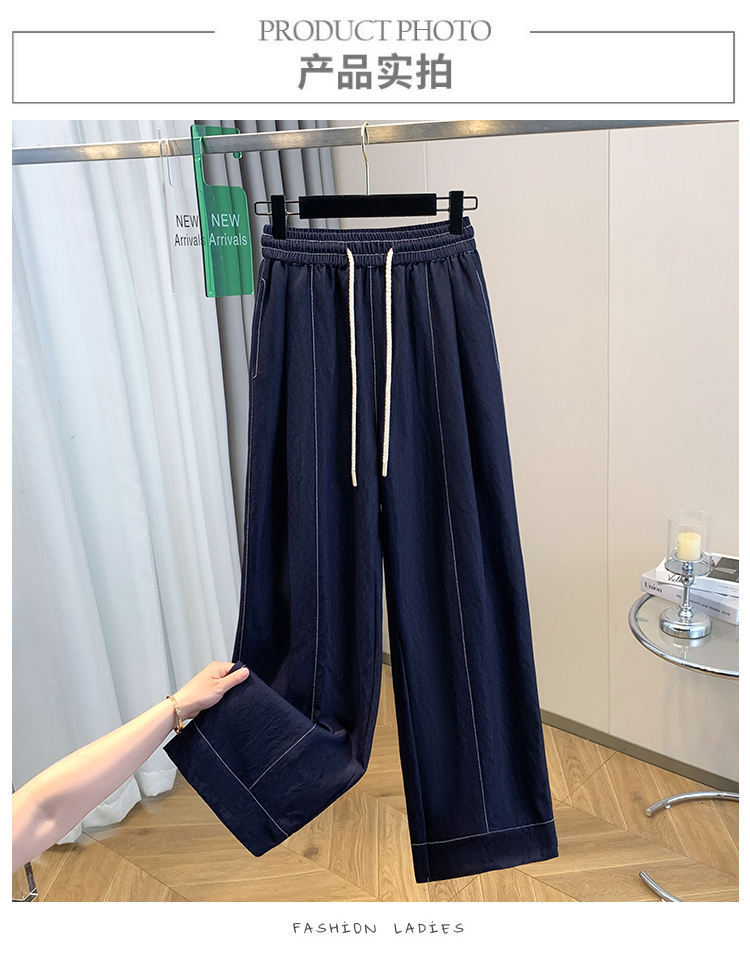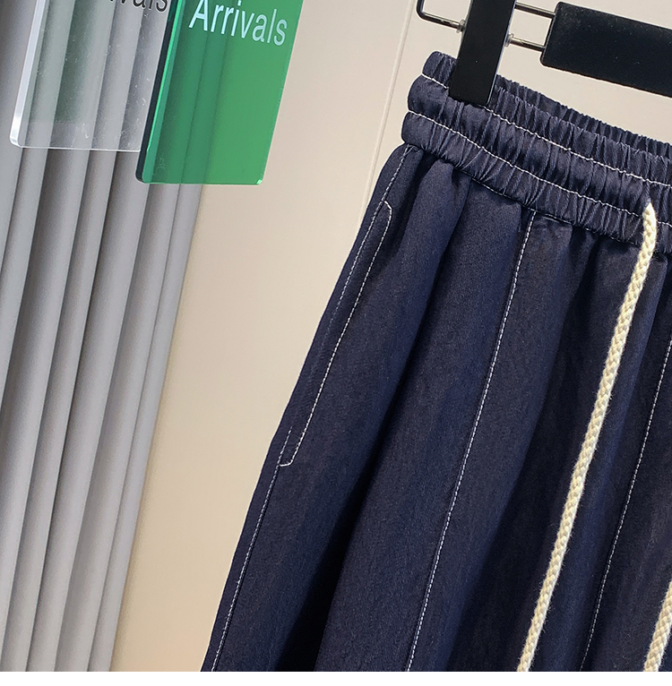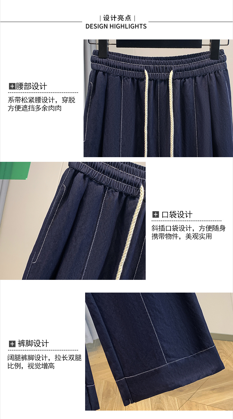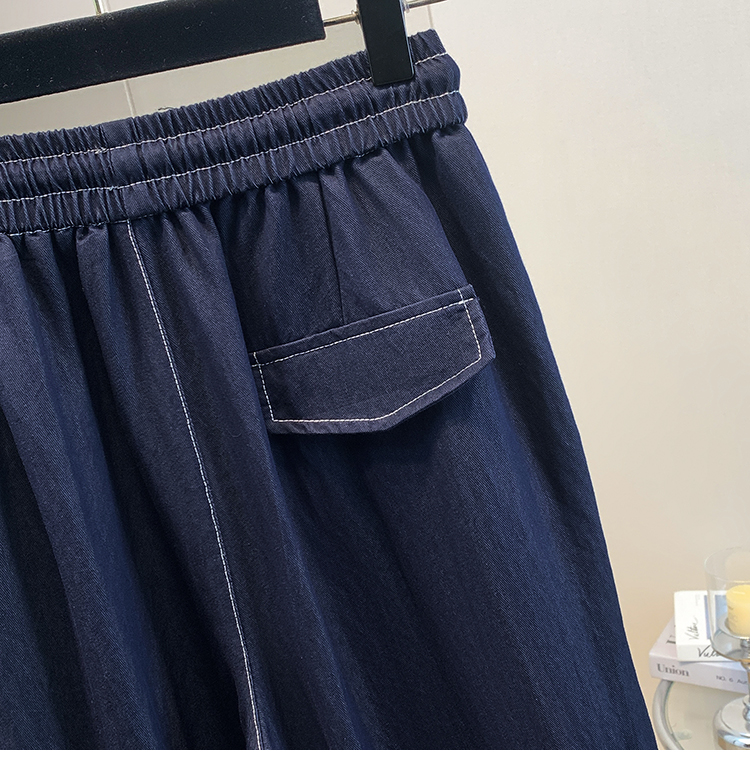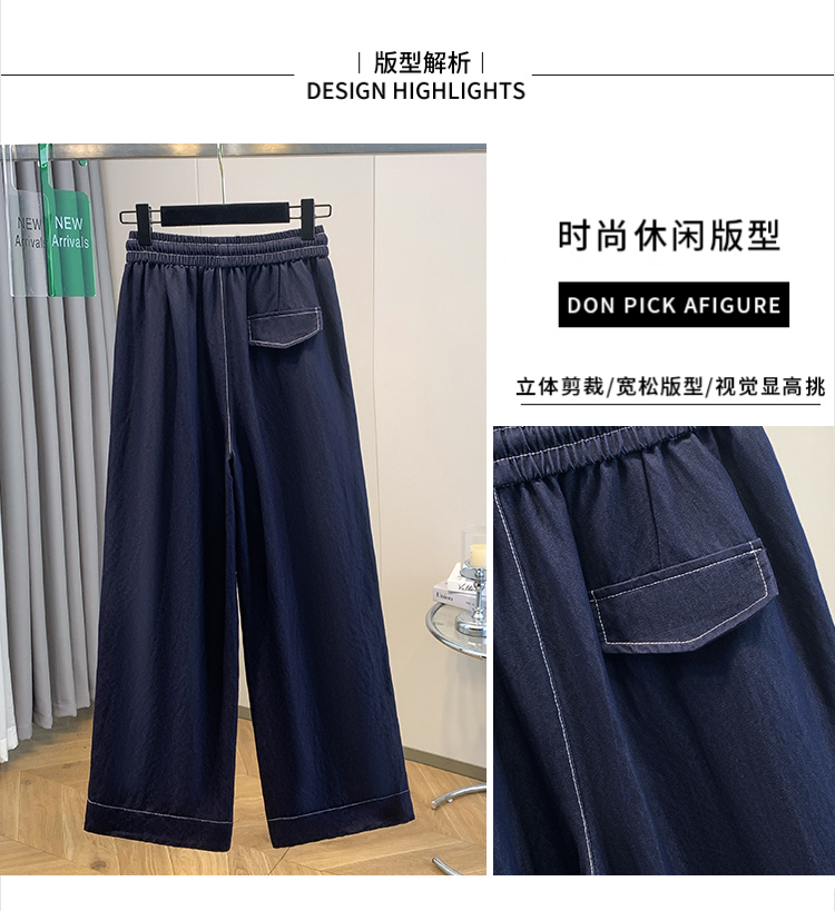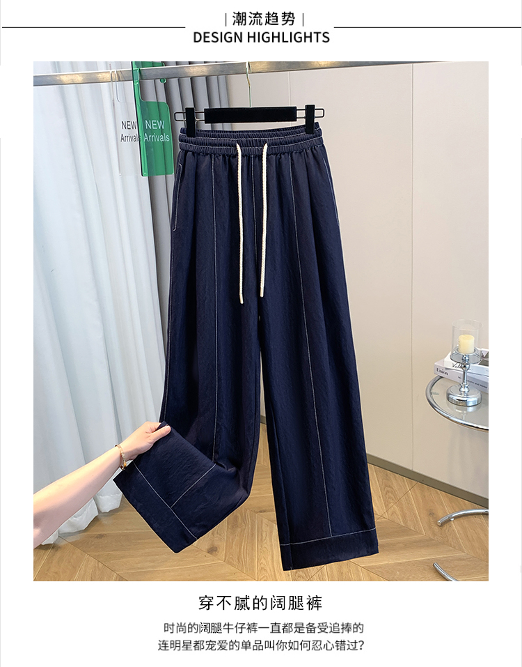 실사 빅 사이즈 주간 실크 데님 와이드 레깅스 바지 하이웨이스트 도루 센스 여름 루즈핏 얇은 스타일 스트레이트 얼음 실크 캐주얼 바지