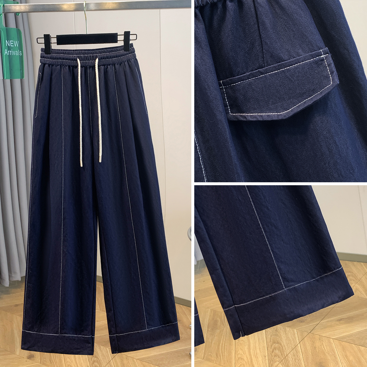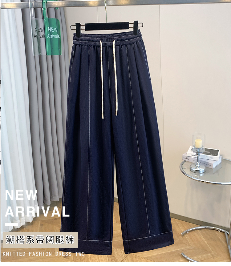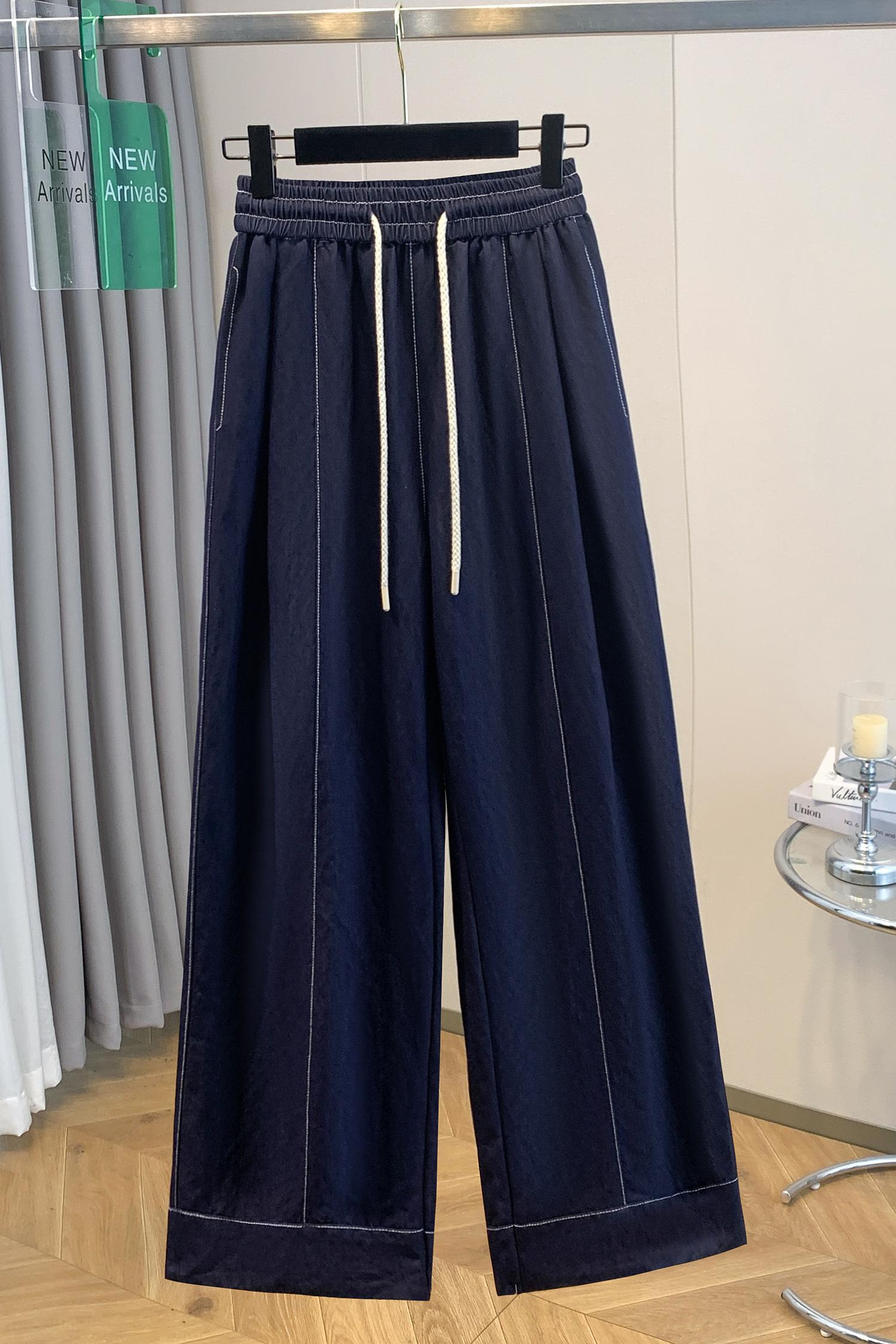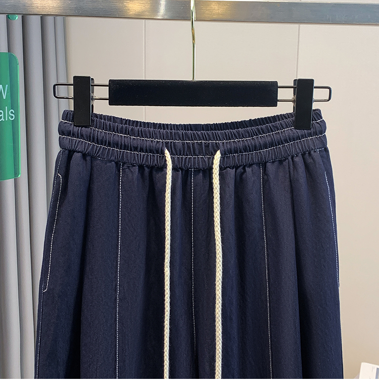 실사 빅 사이즈 주간 실크 데님 와이드 레깅스 바지 하이웨이스트 도루 센스 여름 루즈핏 얇은 스타일 스트레이트 얼음 실크 캐주얼 바지