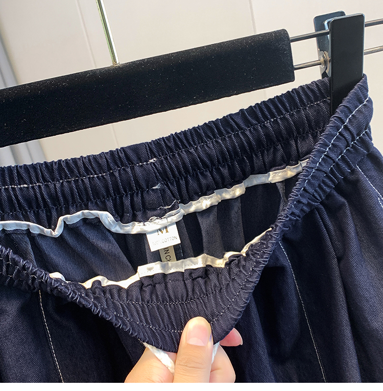 실사 빅 사이즈 봄과 가을 진한 파란색 데님 하렘 바지 레이스 볼륨 측면 허리밴드 작은 발 아빠 바지