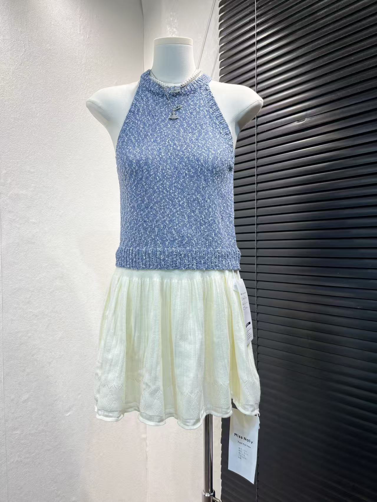 m900 세트 여성 2026 여름 새로운 디자인 센스 행침 목 민소매 맨위 플리츠 한 마디 미니 스커트 투피스 세트