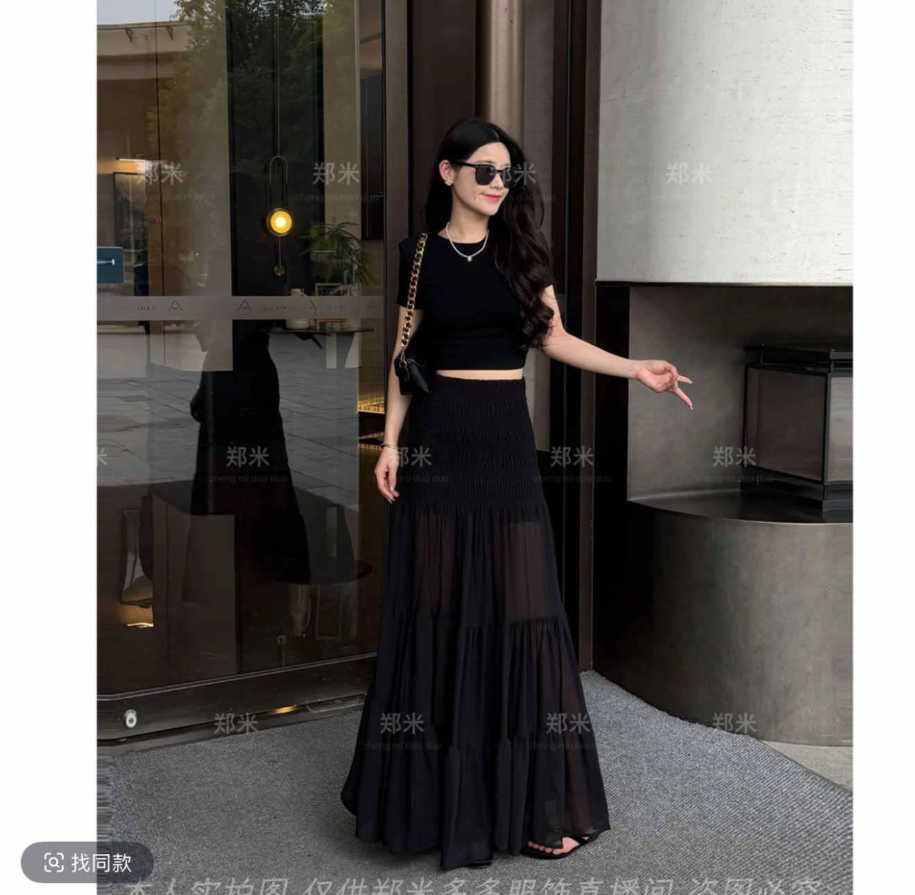 오래된 돈 바람 품격 패션 루즈핏 검정색 맨위 하이웨이스트 반신 스커트 여성 의류 2026 봄 새로운 캐주얼 세트
