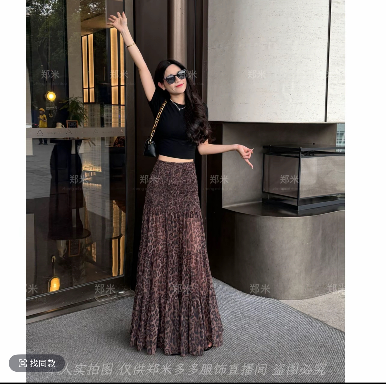 레오파드 무늬 반신 스커트 여성 핫걸 차가운 바람의 소리 로우 웨이스트 스트레이트 밑단 트임 롱 스커트 타이트 스커트 치마 세트