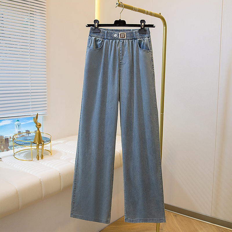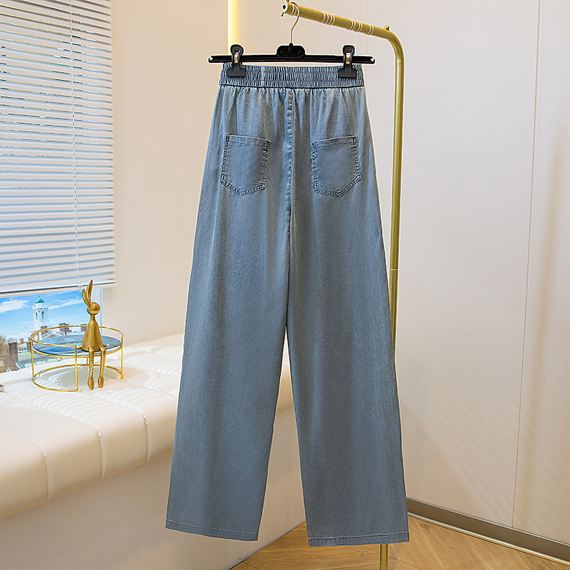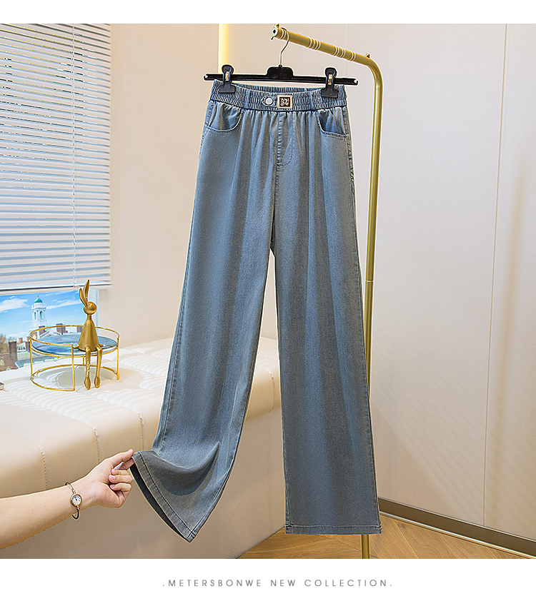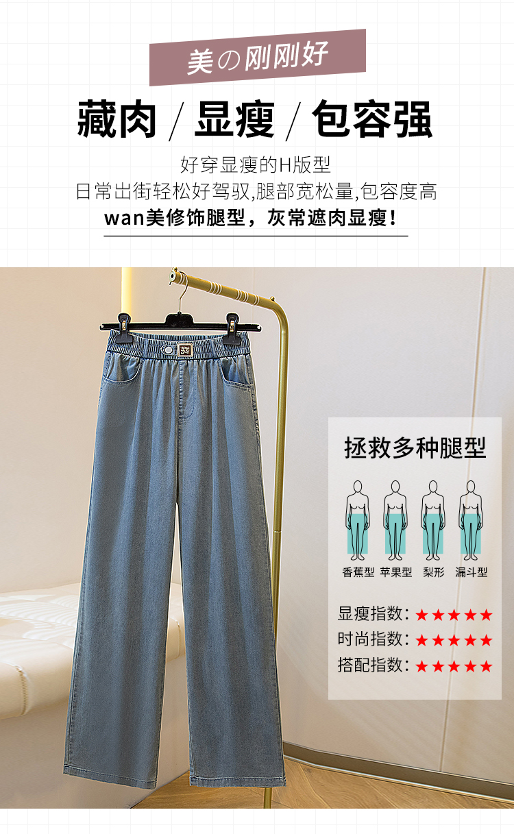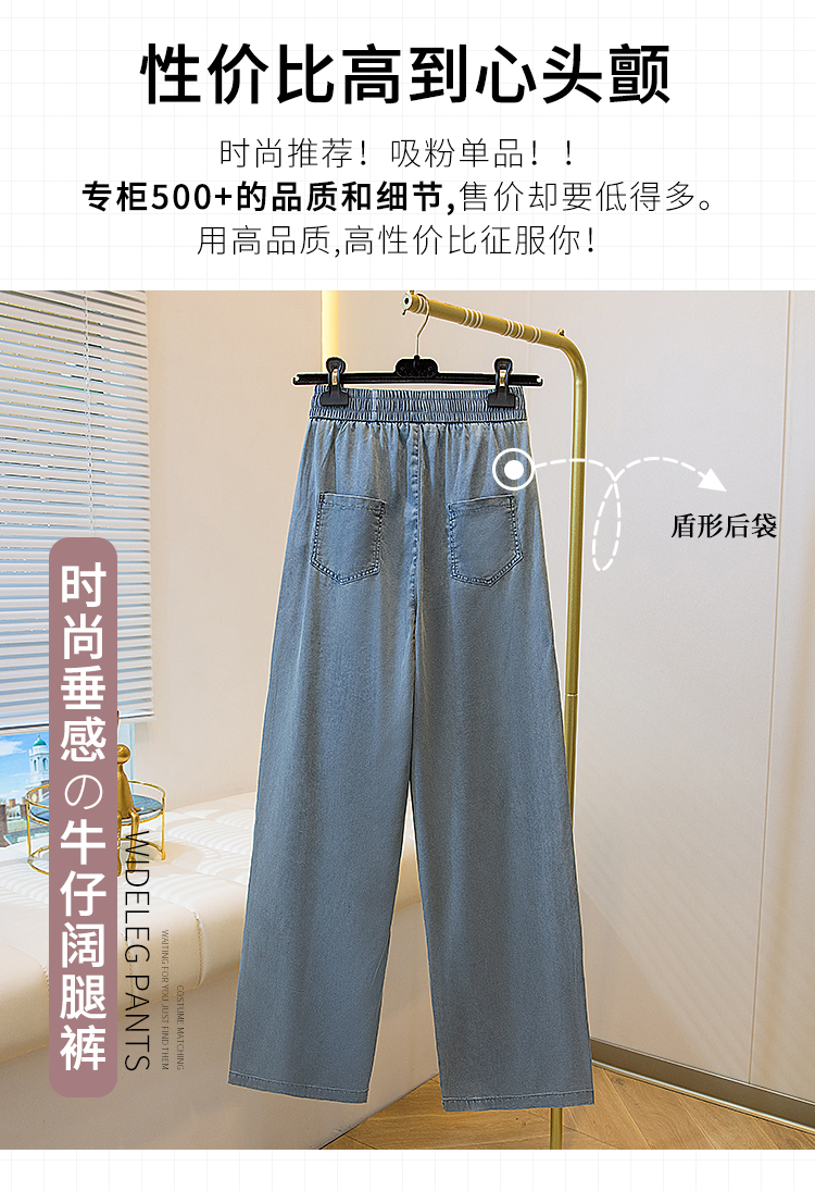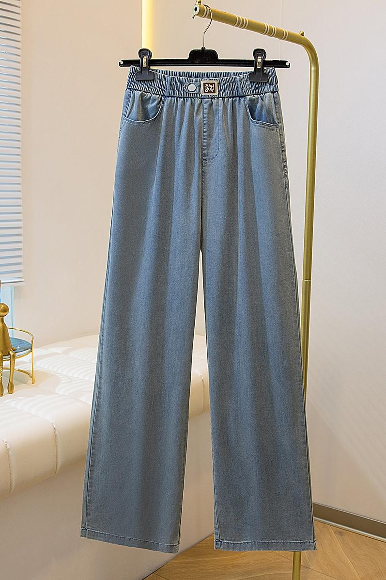 주간 실크 청바지 여성 봄 여름 섹션 밴딩 하이웨이스트 지방 mm 루즈핏 빅 사이즈 슬림해 보이는 얼음 실크 9 포인트 초박형 스트레이트 팬츠