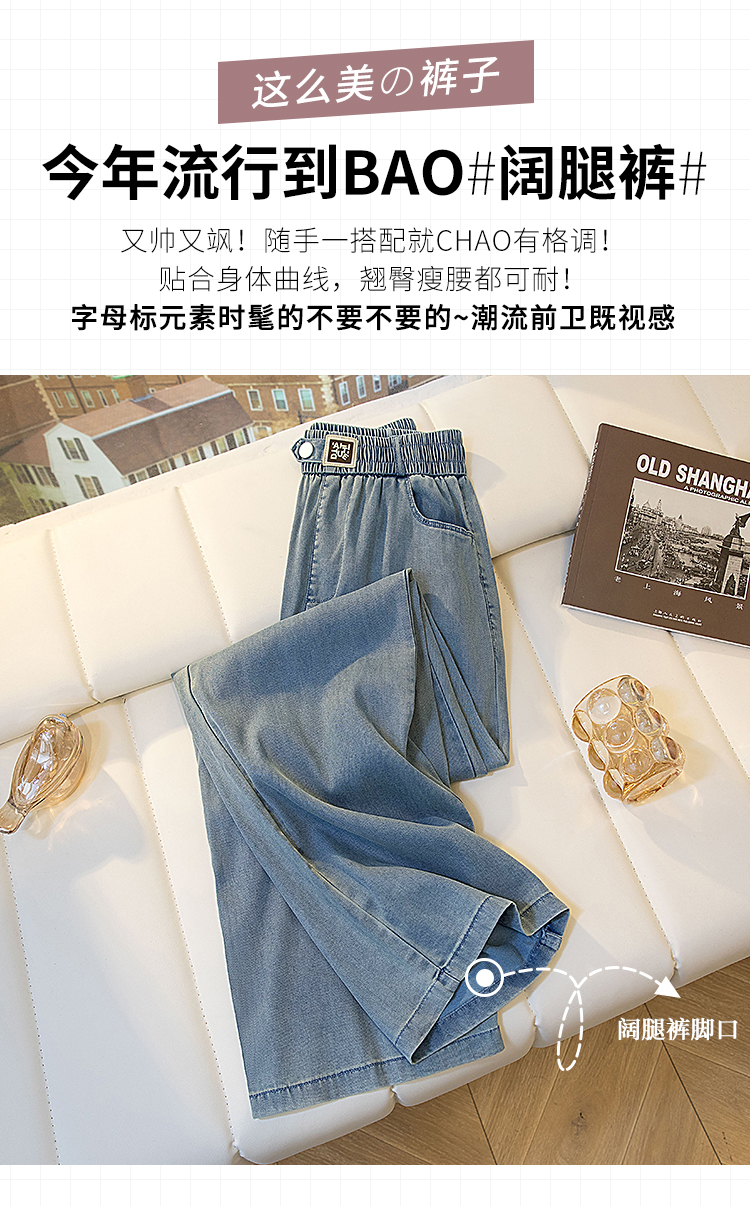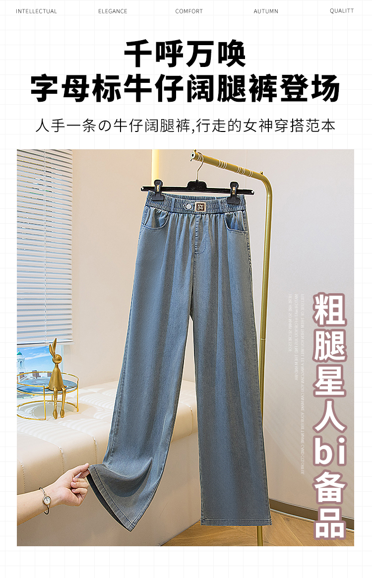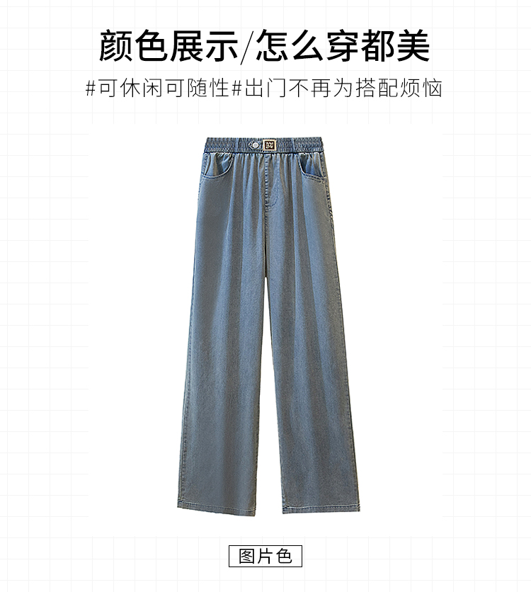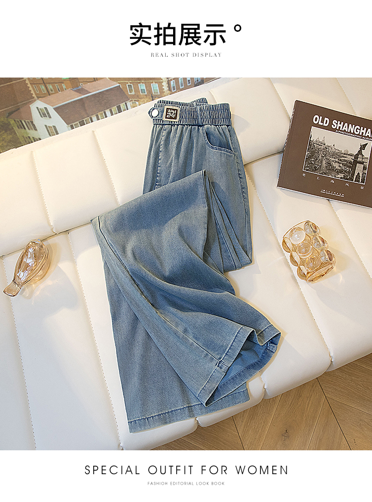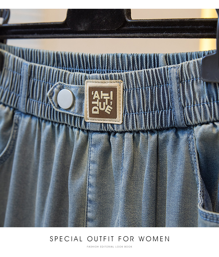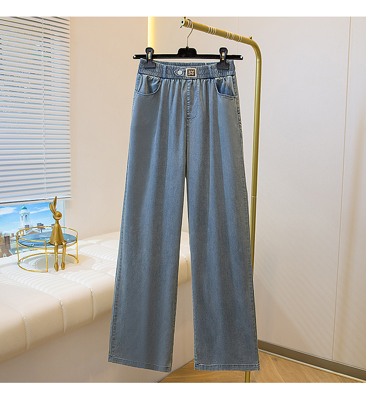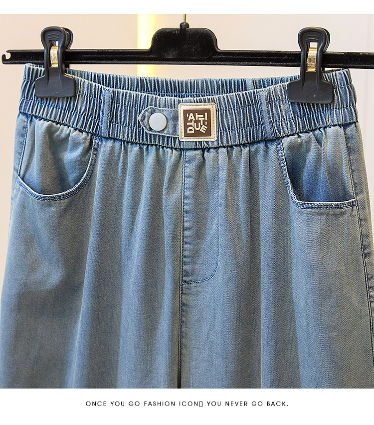 주간 실크 청바지 여성 봄 여름 섹션 밴딩 하이웨이스트 지방 mm 루즈핏 빅 사이즈 슬림해 보이는 얼음 실크 9 포인트 초박형 스트레이트 팬츠