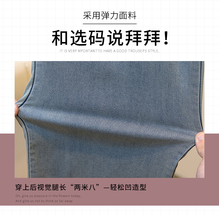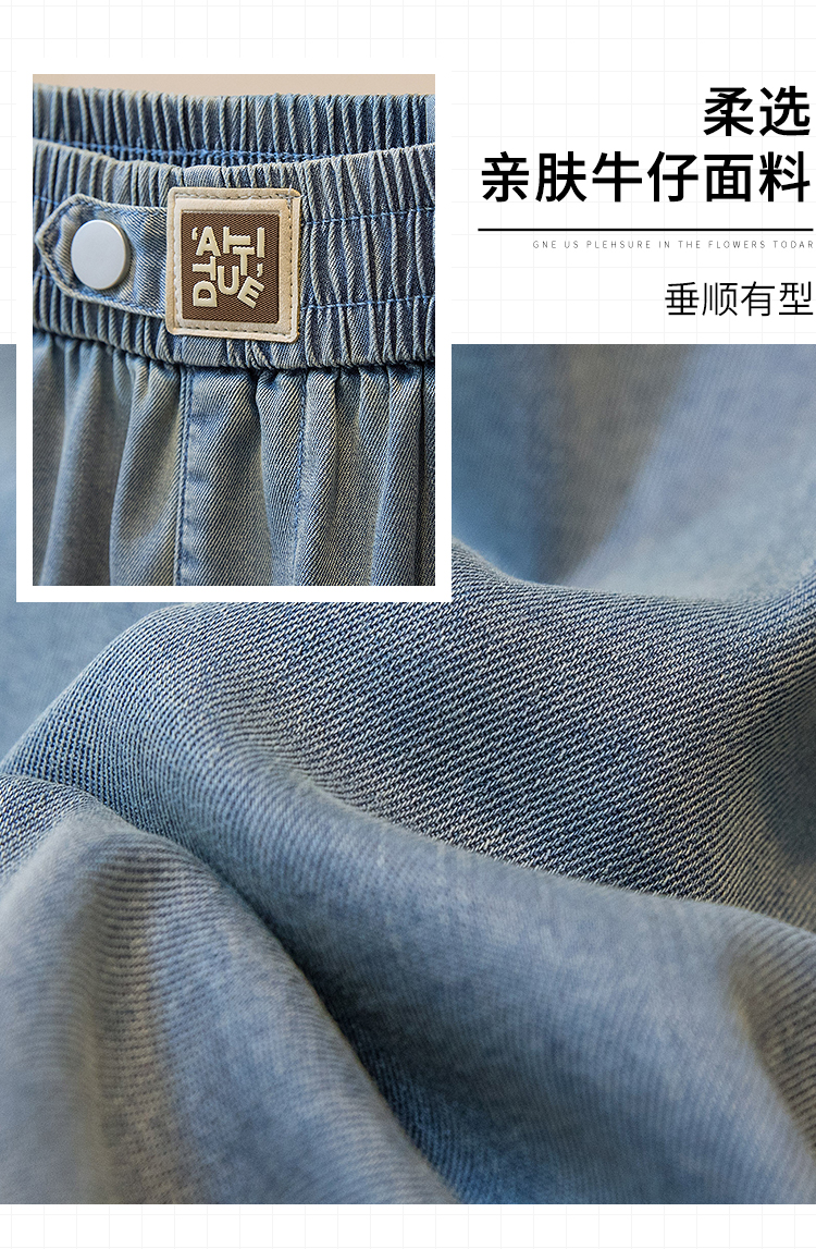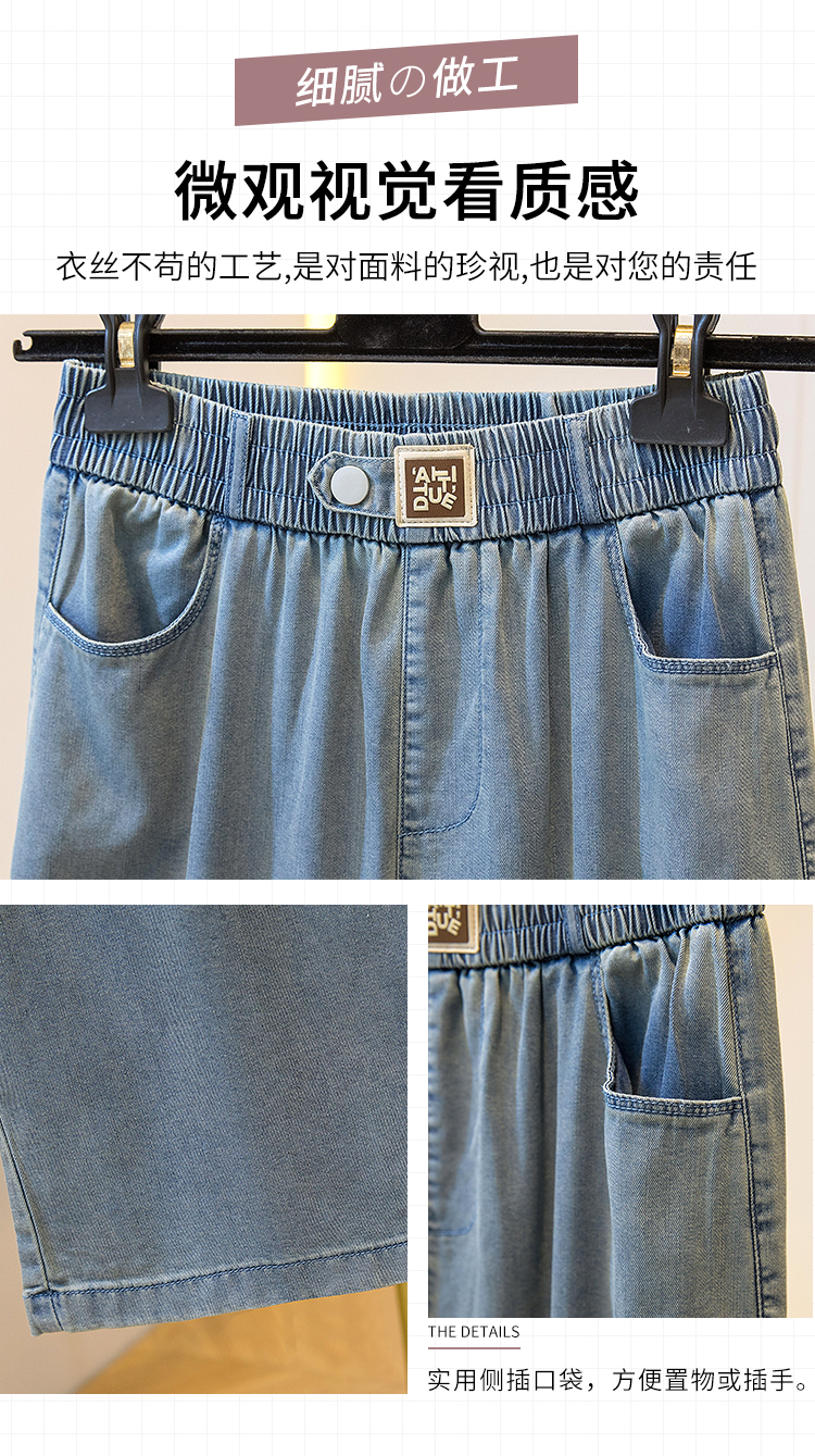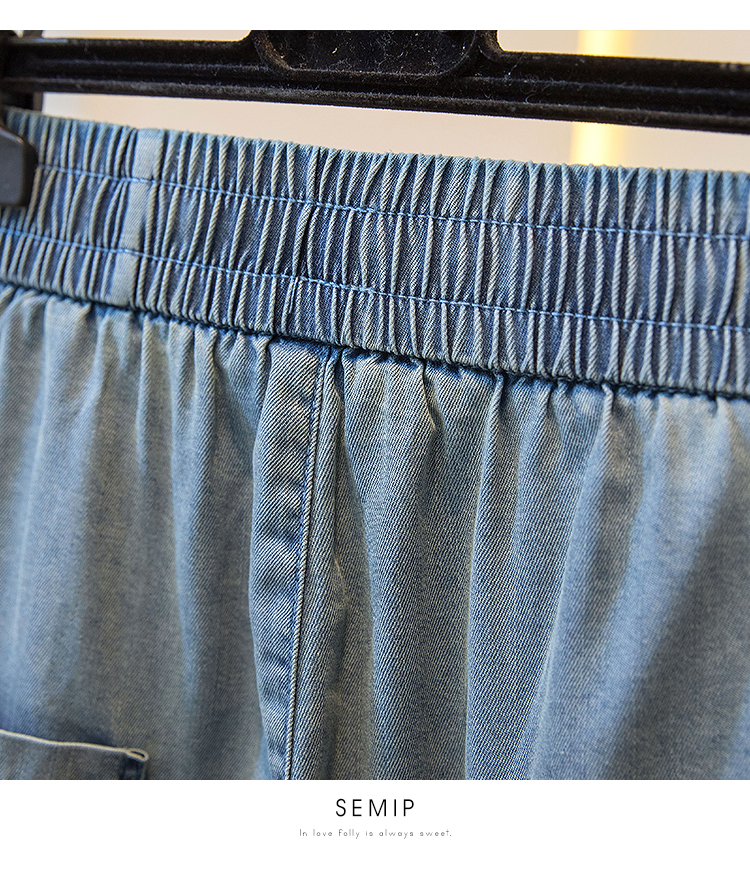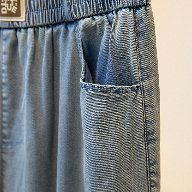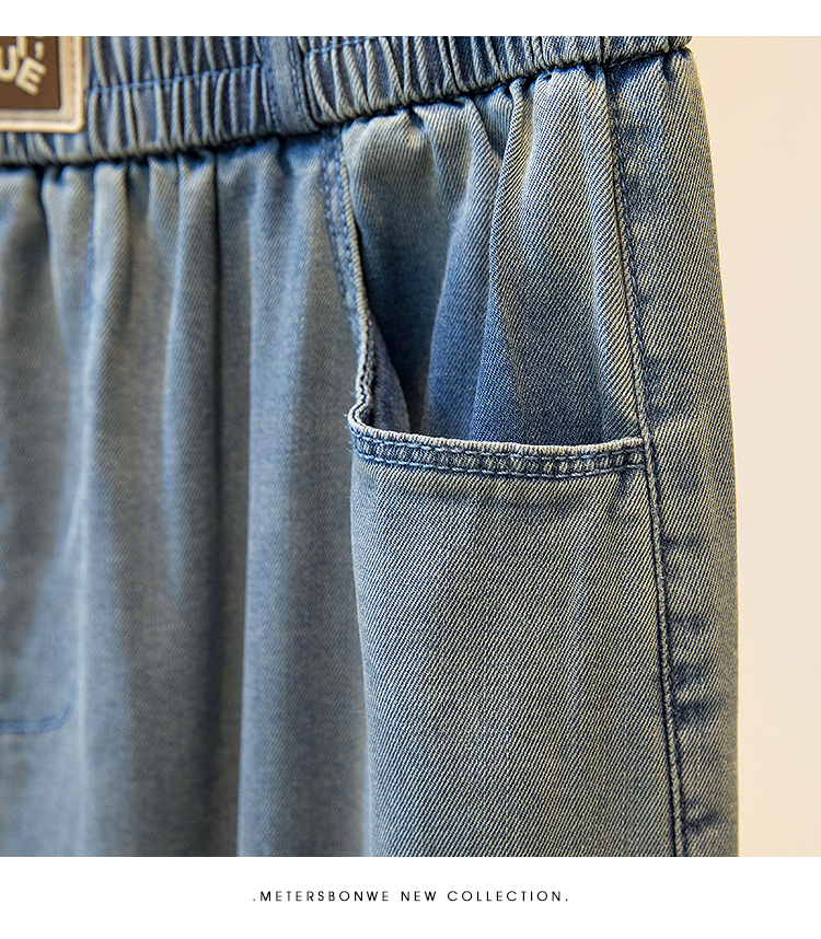 주간 실크 청바지 여성 봄 여름 섹션 밴딩 하이웨이스트 지방 mm 루즈핏 빅 사이즈 슬림해 보이는 얼음 실크 9 포인트 초박형 스트레이트 팬츠