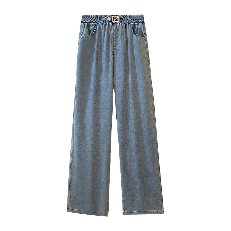 허리밴드 주간 실크 부드러운 청바지 여성 여름 얇은 스타일 2026 새로운 루즈핏 스트레이트 작은 키 얼음 실크 와이드 레그 팬츠