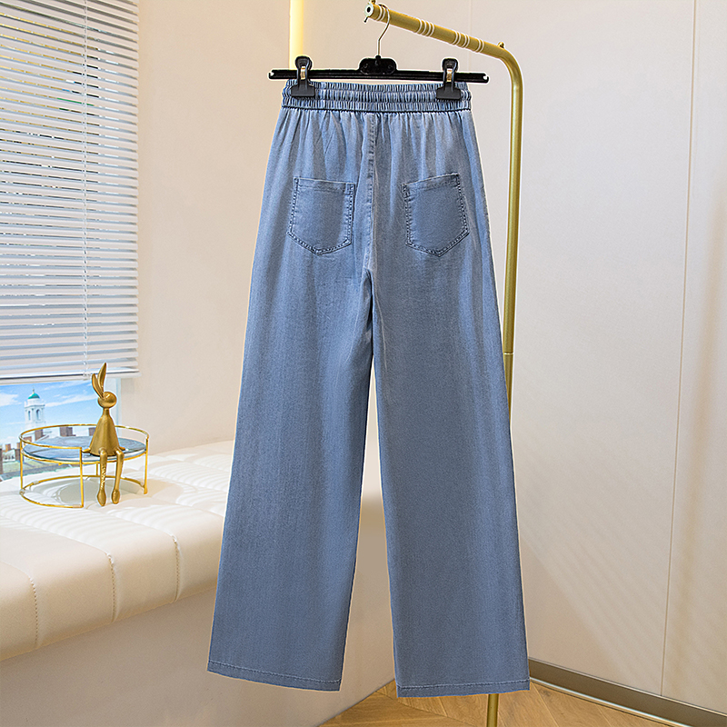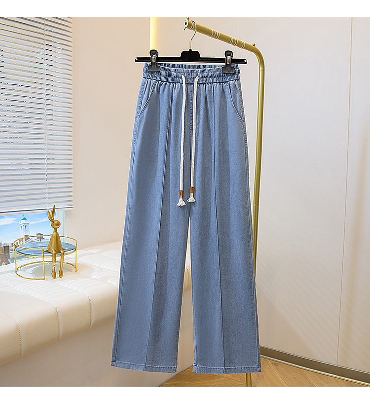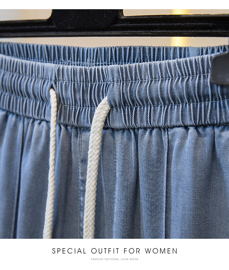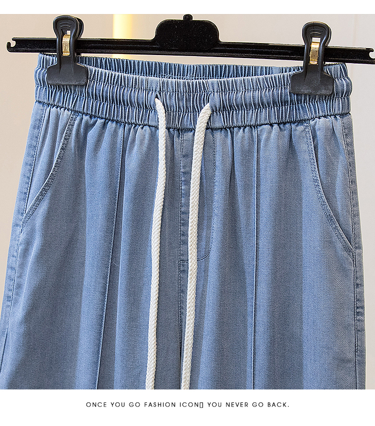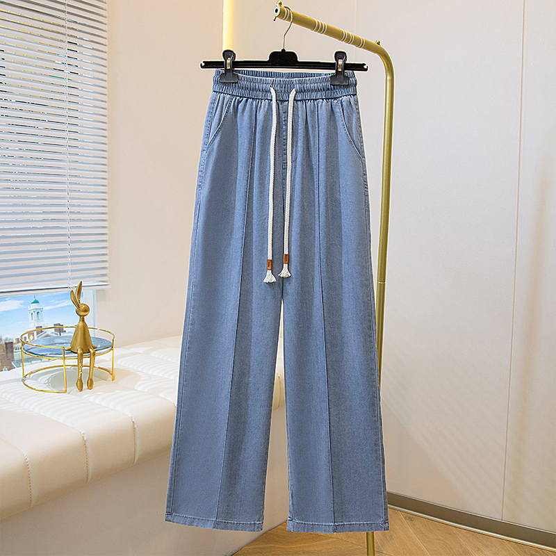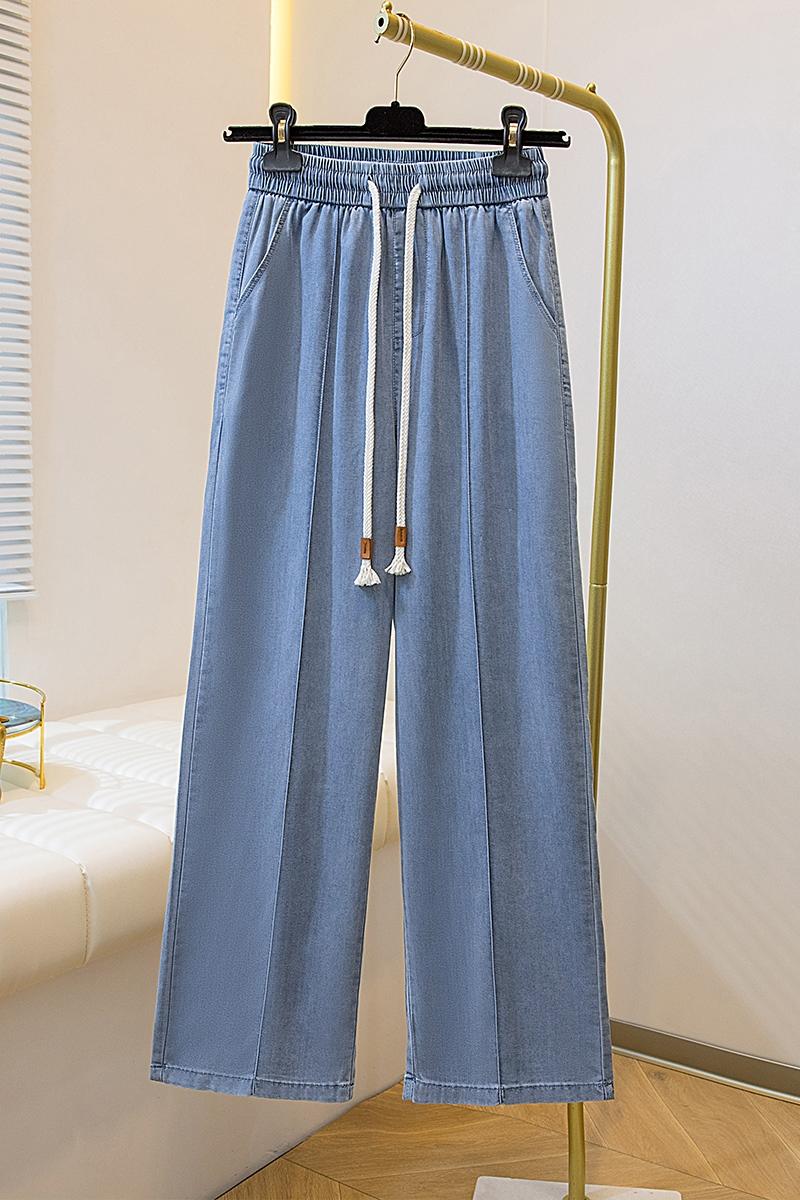 주간 실크 청바지 여성 봄 여름 섹션 밴딩 하이웨이스트 지방 mm 루즈핏 빅 사이즈 슬림해 보이는 얼음 실크 9 포인트 초박형 스트레이트 팬츠