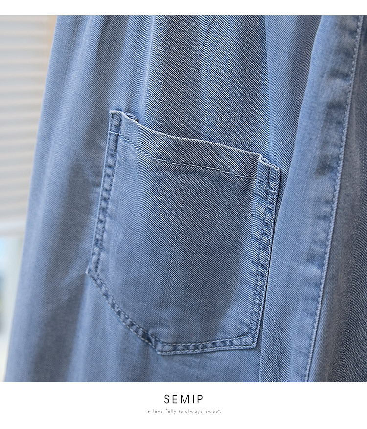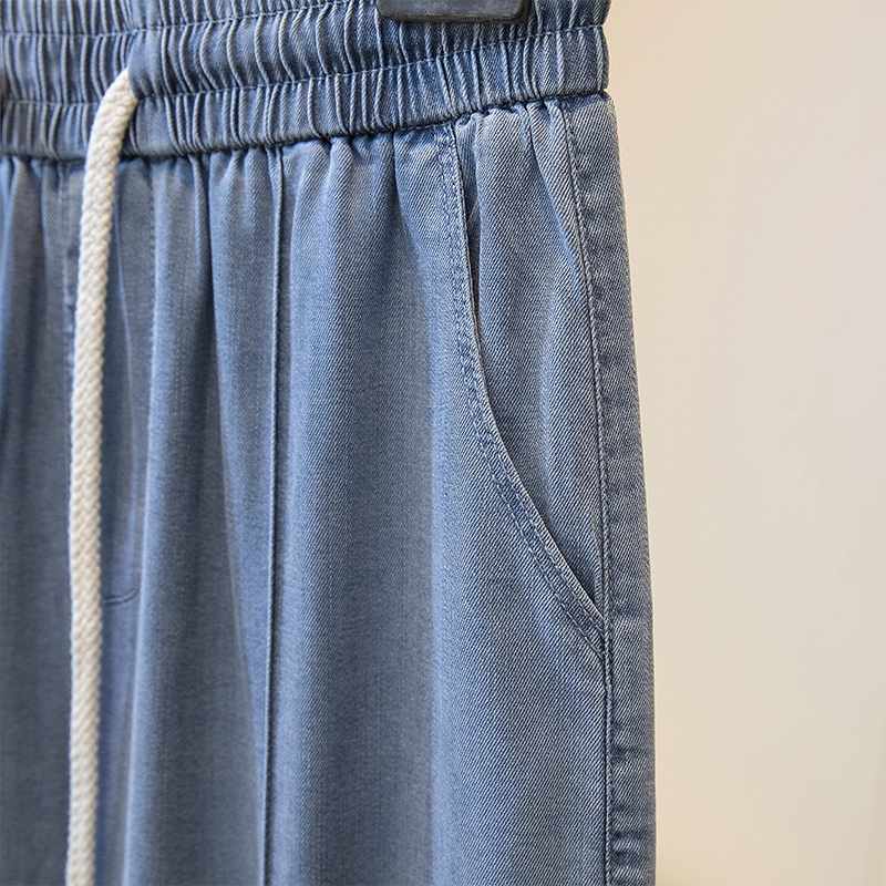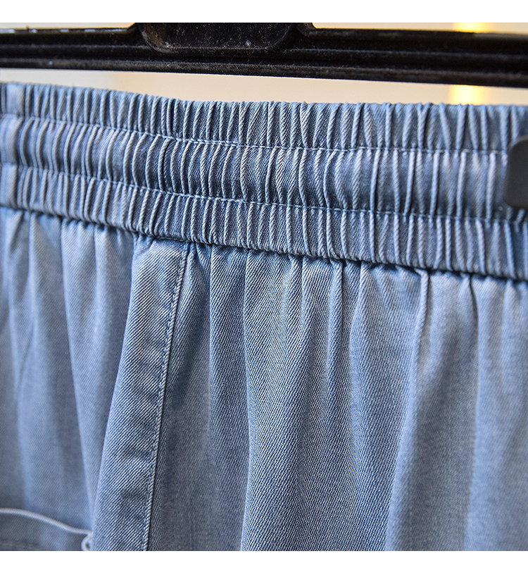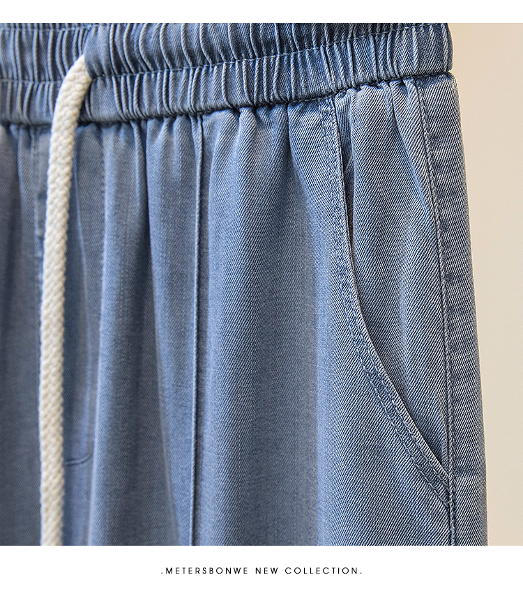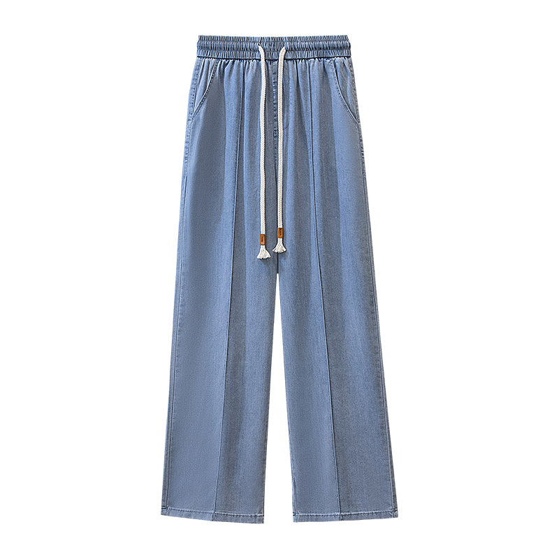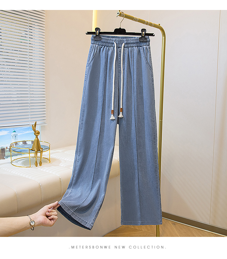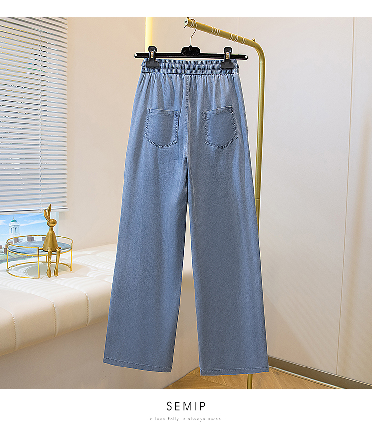 주간 실크 청바지 여성 봄 여름 섹션 밴딩 하이웨이스트 지방 mm 루즈핏 빅 사이즈 슬림해 보이는 얼음 실크 9 포인트 초박형 스트레이트 팬츠