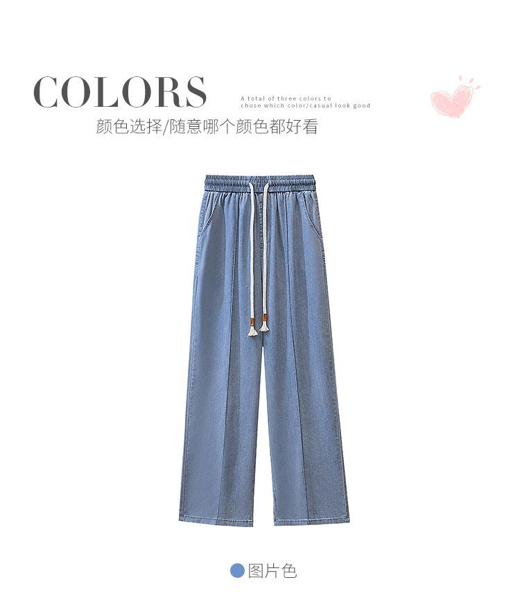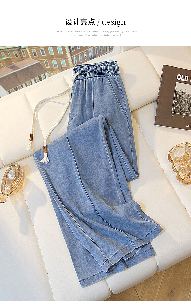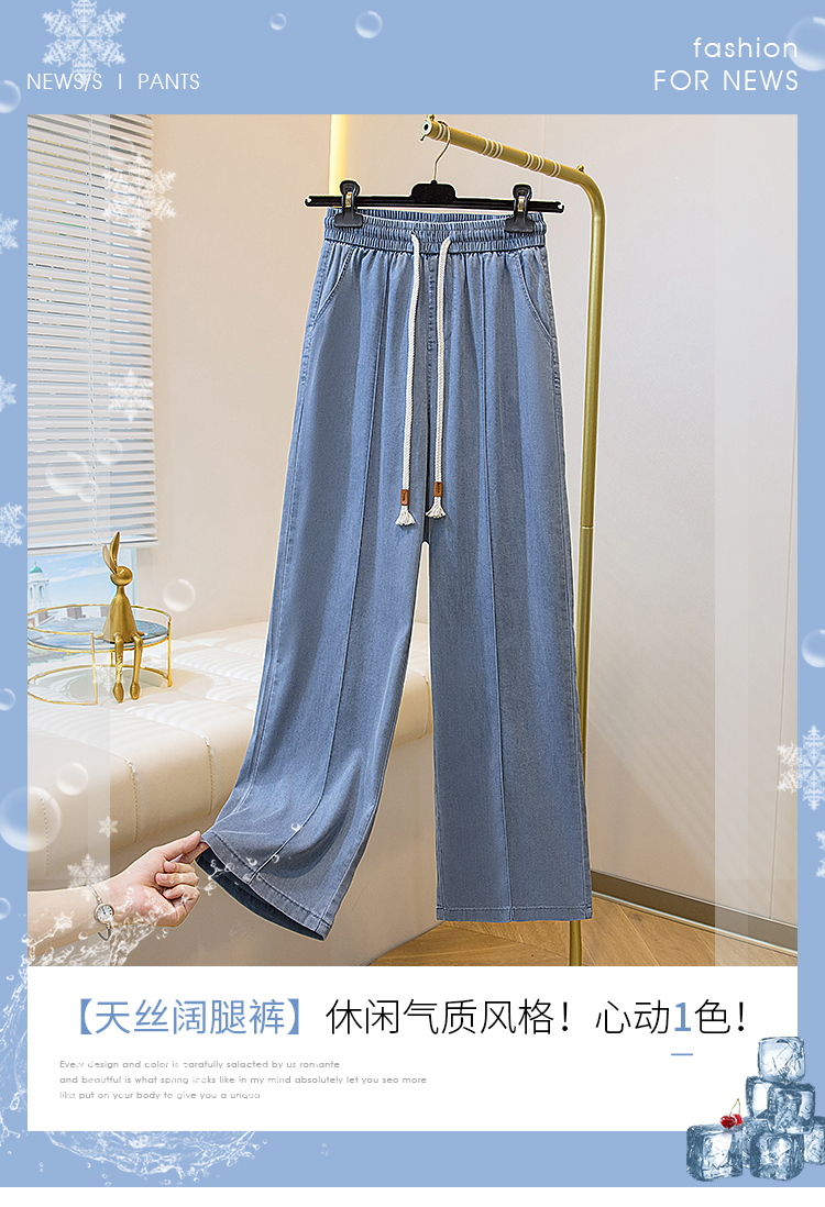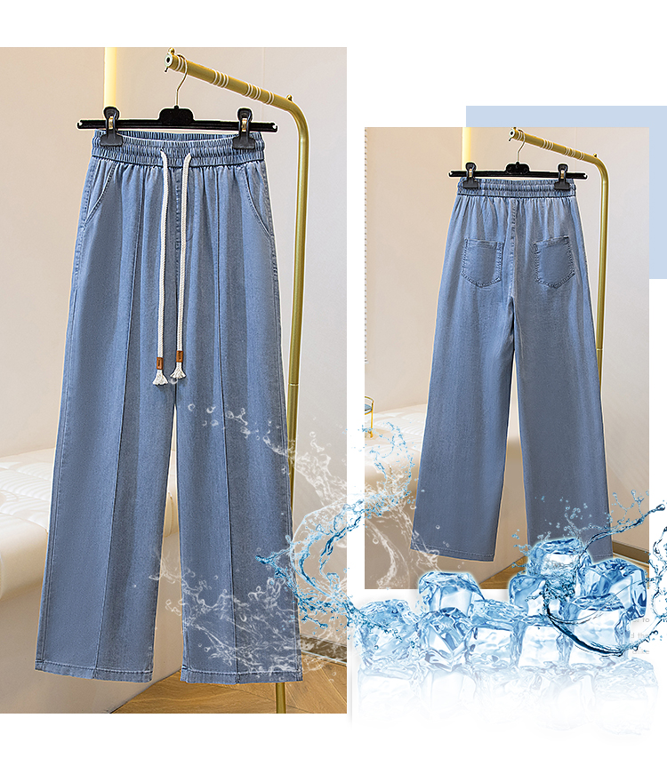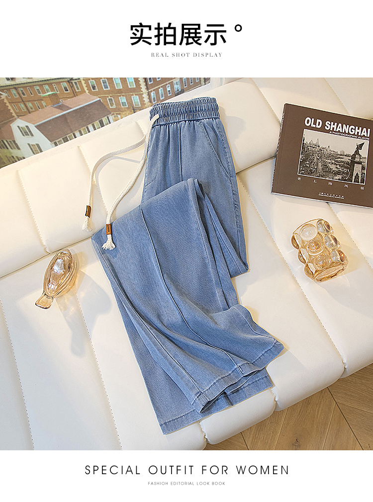 빅 사이즈 지방 mm 주간 실크 데님 여성 2026 여름 새로운 초박형 슬림해 보이는 표지 고기 스트레이트 얼음 실크 좁은 에디션 와이드 레그 팬츠 어린이