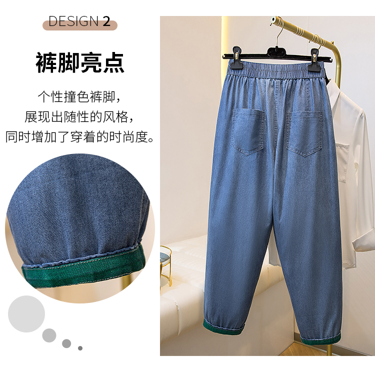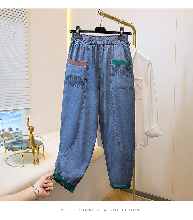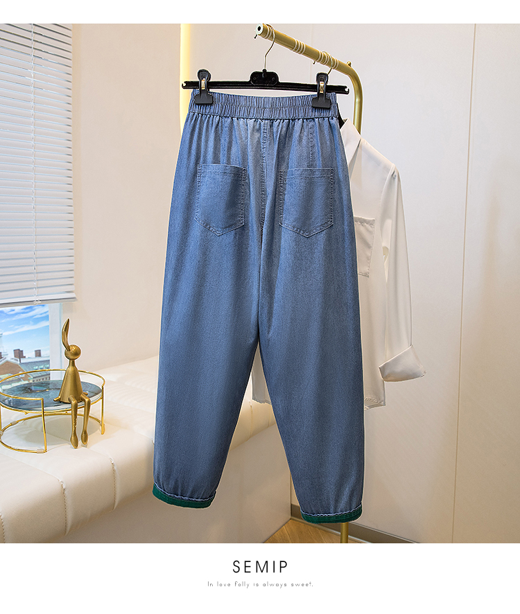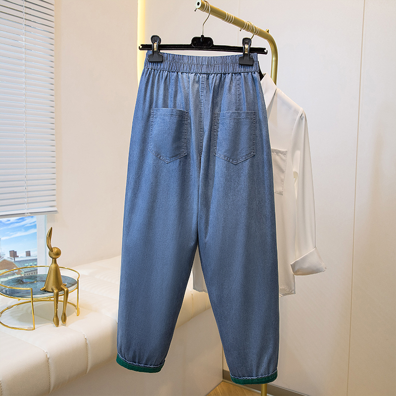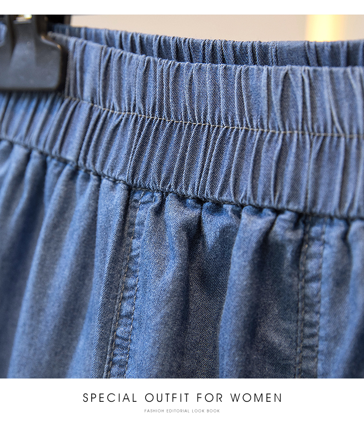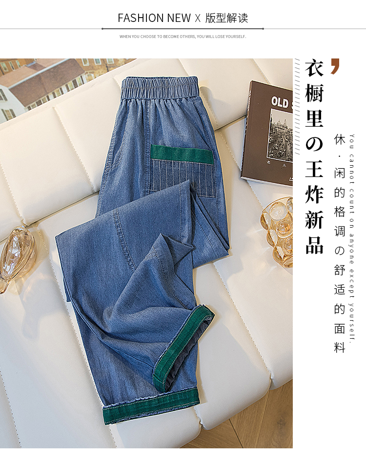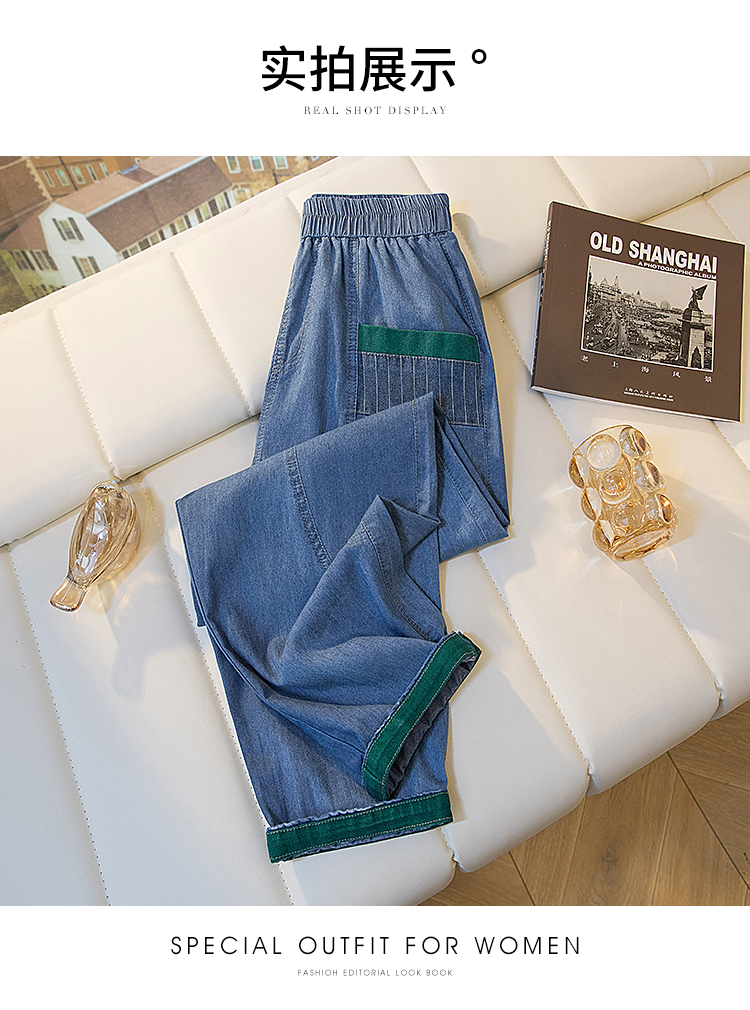 주간 실크 청바지 여성 봄 여름 섹션 밴딩 하이웨이스트 지방 mm 루즈핏 빅 사이즈 슬림해 보이는 얼음 실크 9 포인트 초박형 스트레이트 팬츠