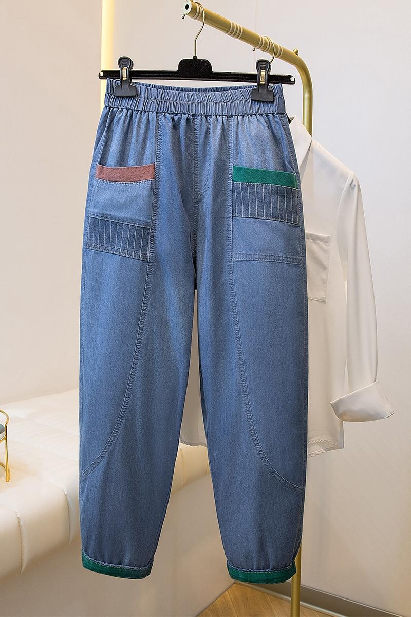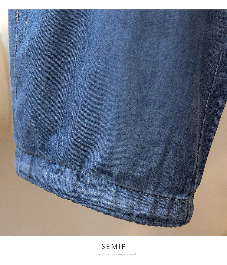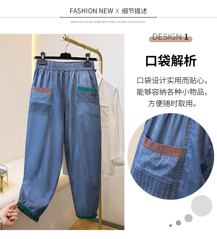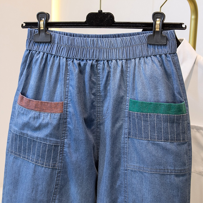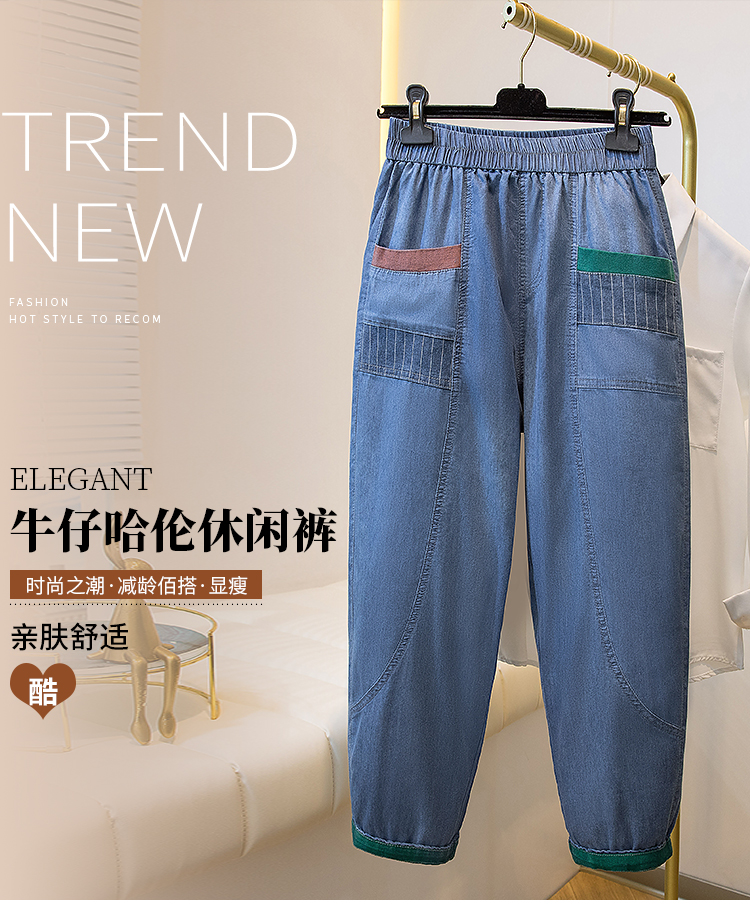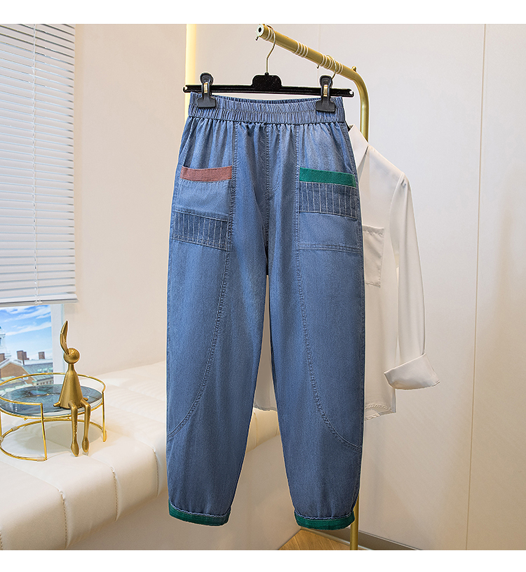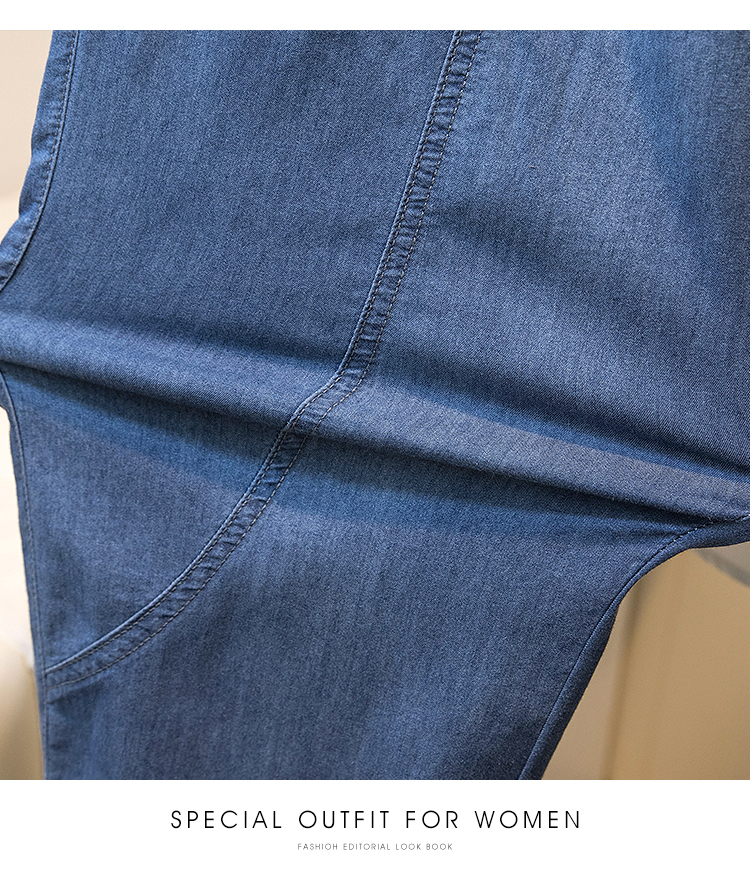 주간 실크 청바지 여성 봄 여름 섹션 밴딩 하이웨이스트 지방 mm 루즈핏 빅 사이즈 슬림해 보이는 얼음 실크 9 포인트 초박형 스트레이트 팬츠