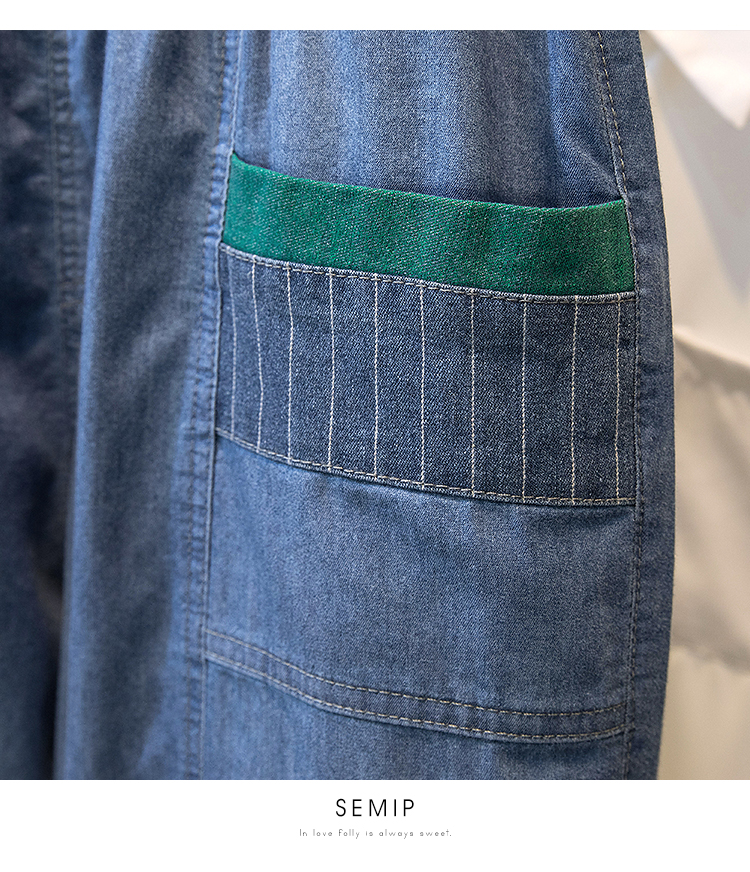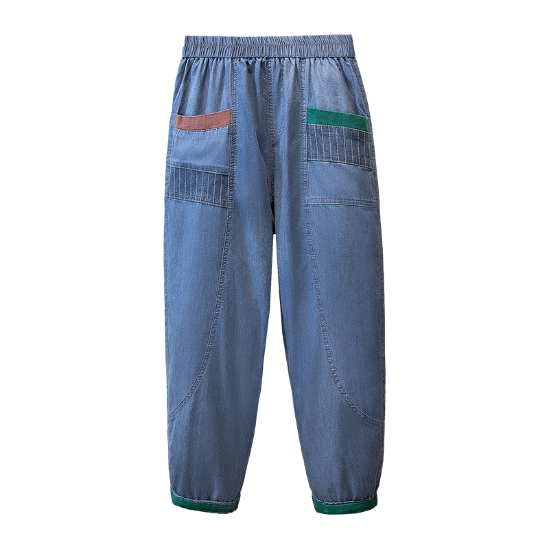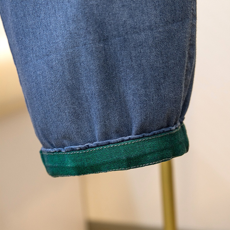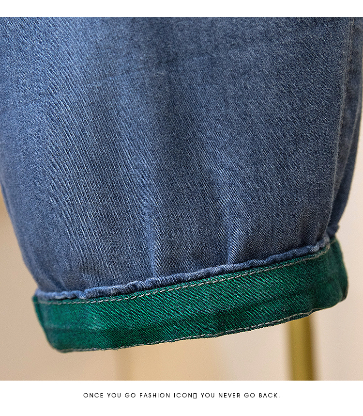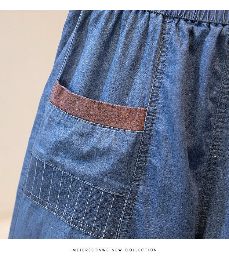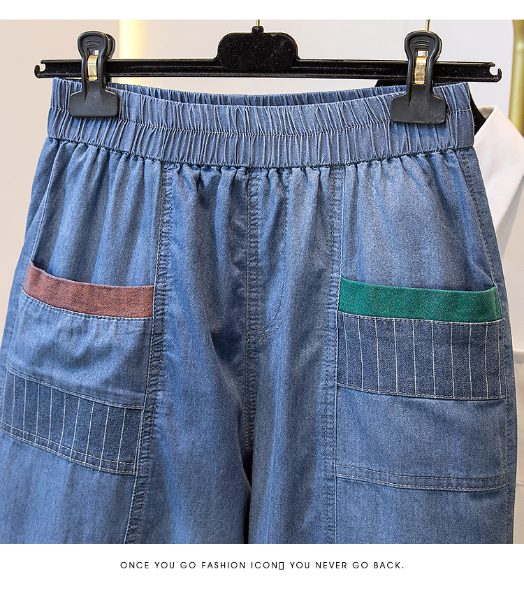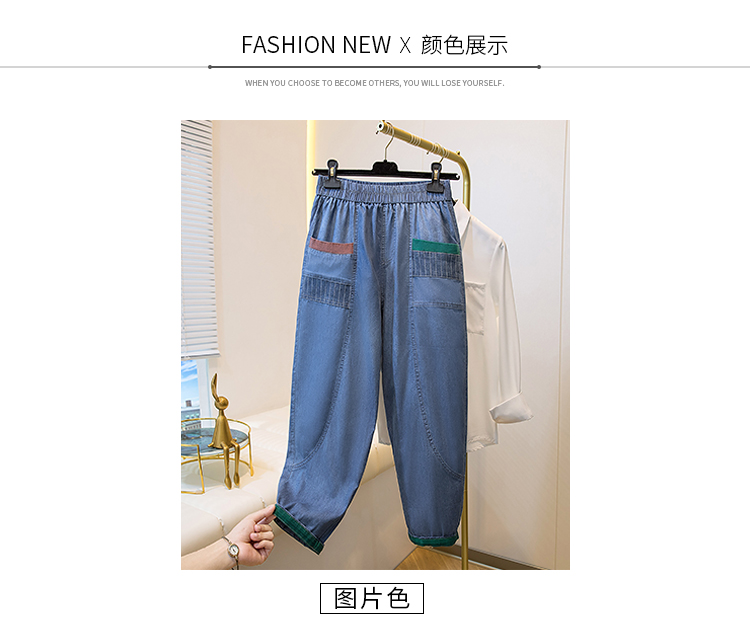 주간 실크 청바지 여성 봄 여름 섹션 밴딩 하이웨이스트 지방 mm 루즈핏 빅 사이즈 슬림해 보이는 얼음 실크 9 포인트 초박형 스트레이트 팬츠