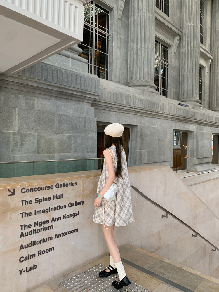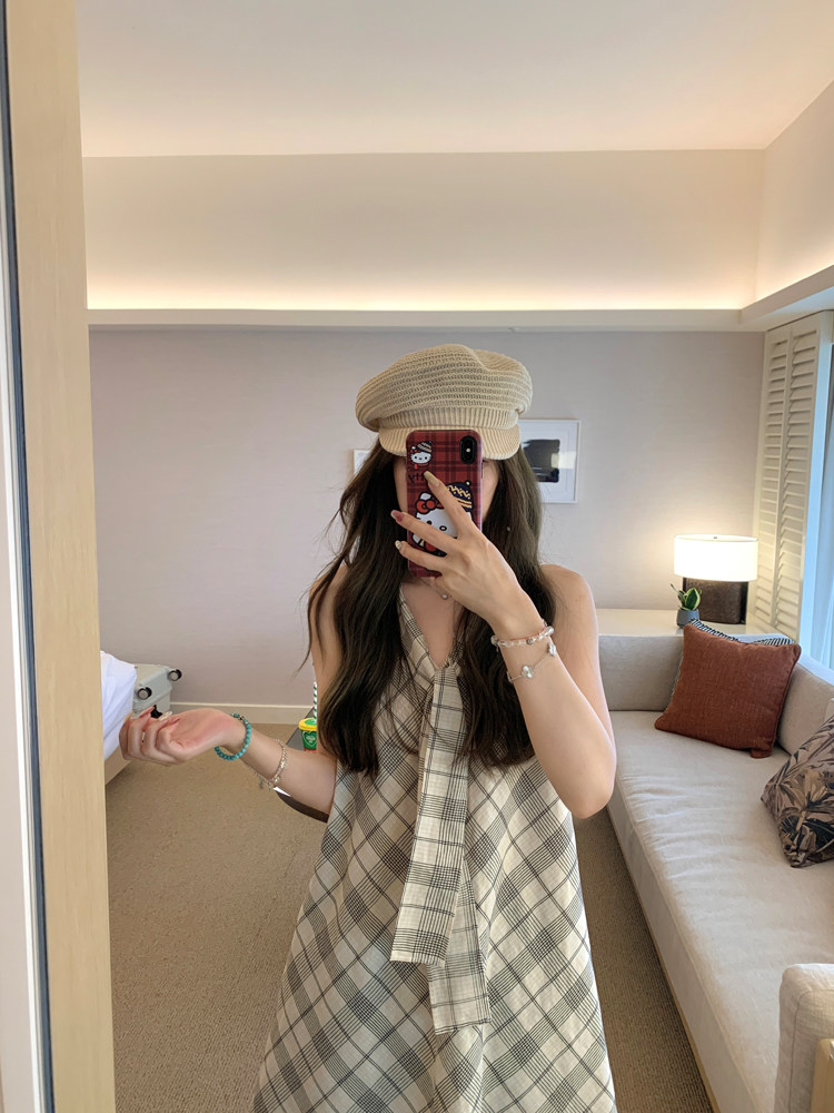 한 부서 해군 칼라 드레스 레트로 체크무늬 품격 슬립 드레스 여성 여름