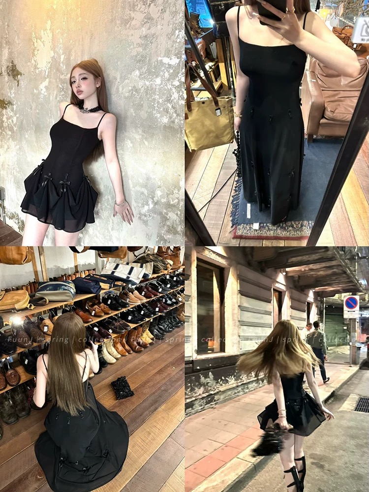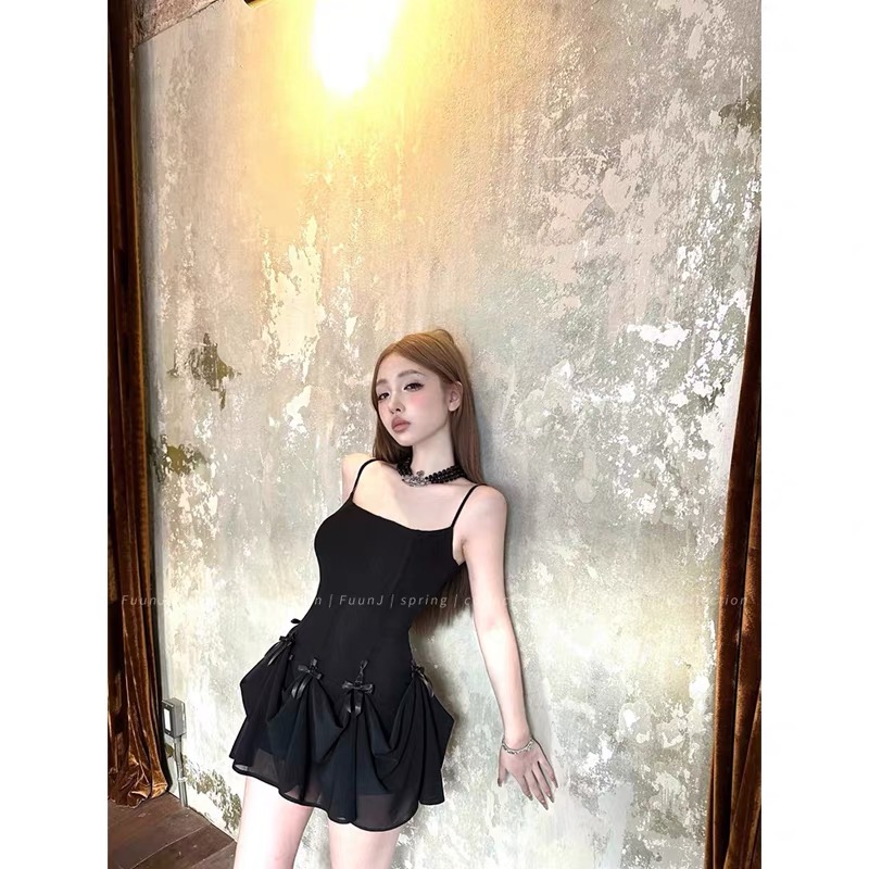 fuunj 복수 달콤한 니켈 순수한 욕망 중간 길이 슬립 여성 드레스 몸매 가꾸기 아름다운 기타 착용 나비 매듭 미니 스커트