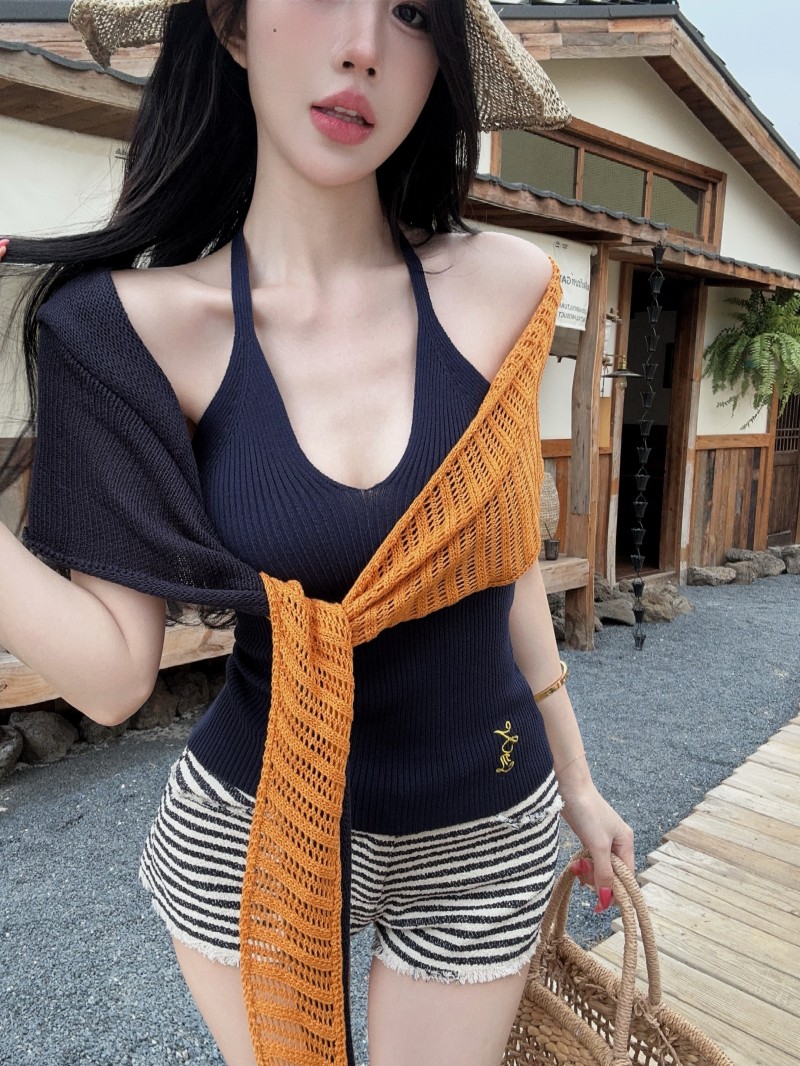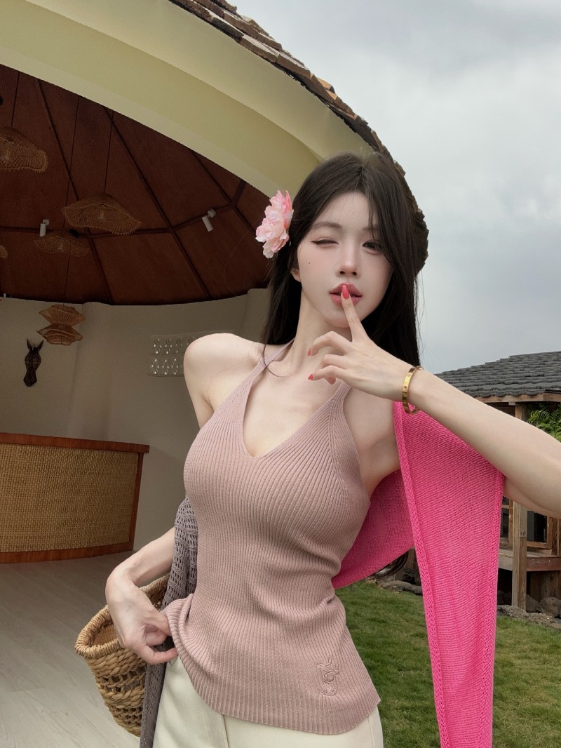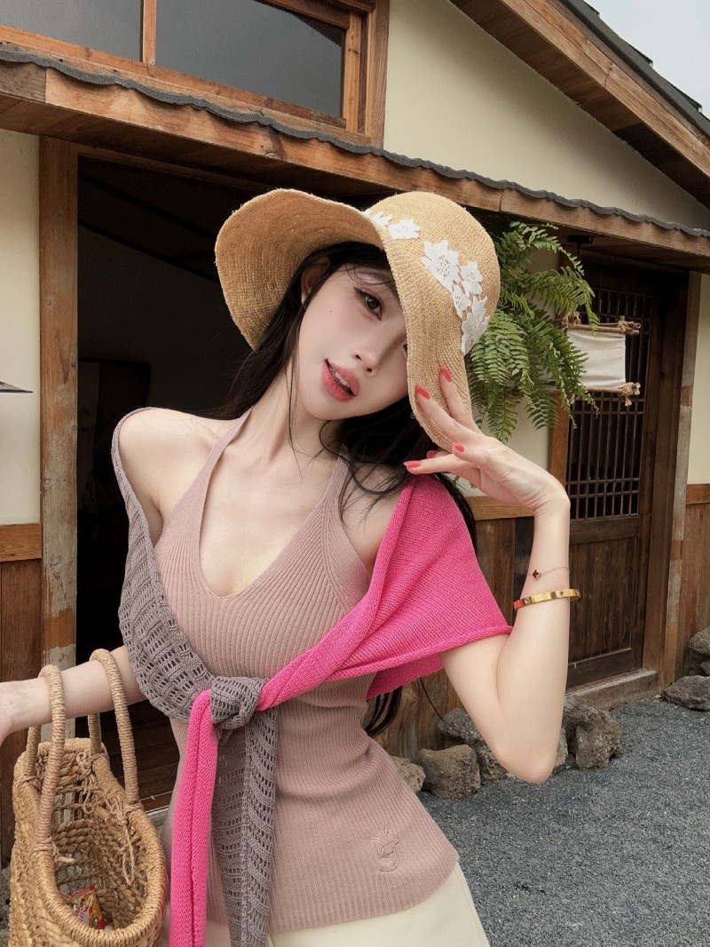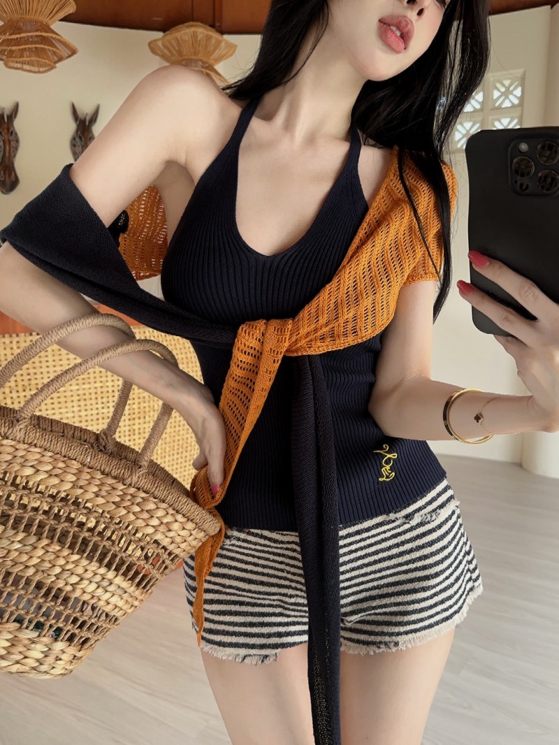 실사 정가 감소되지 않음 알파벳 프린트 홀로우 아웃 조끼 작은 슬링 여성 새로운 핫걸 외출용 민소매 맨위