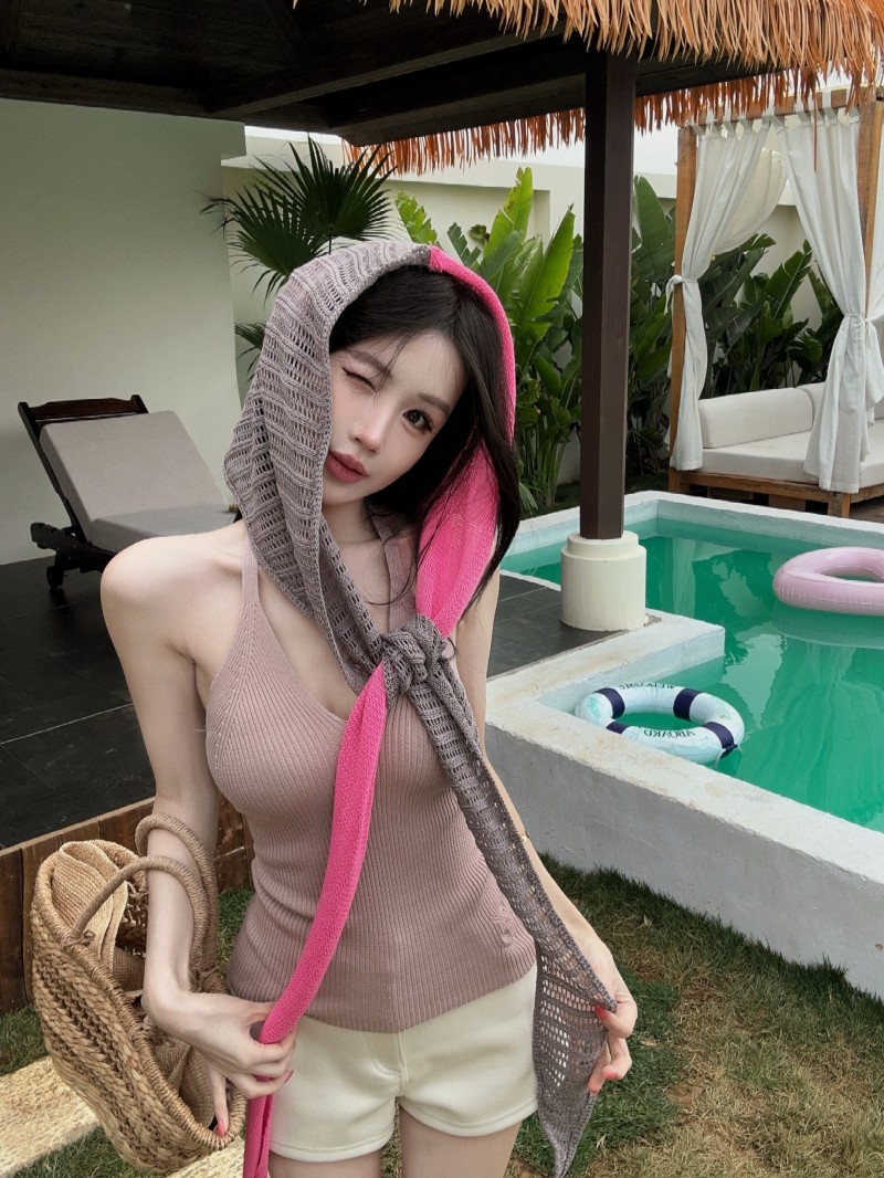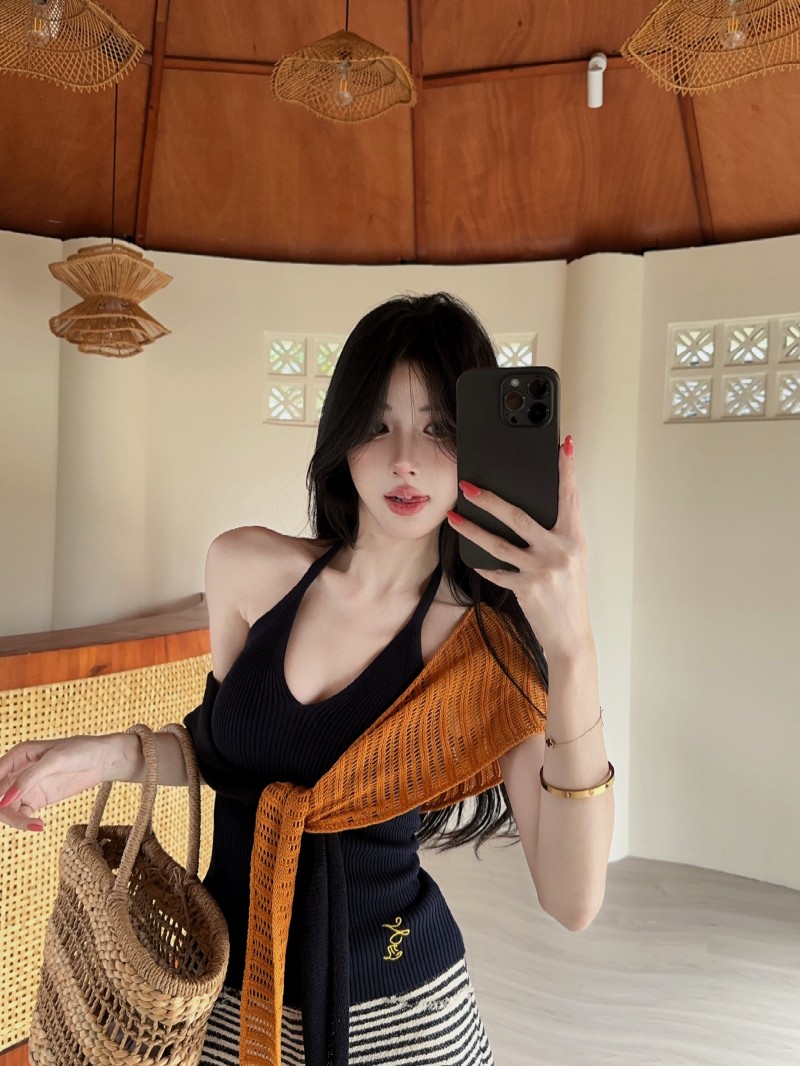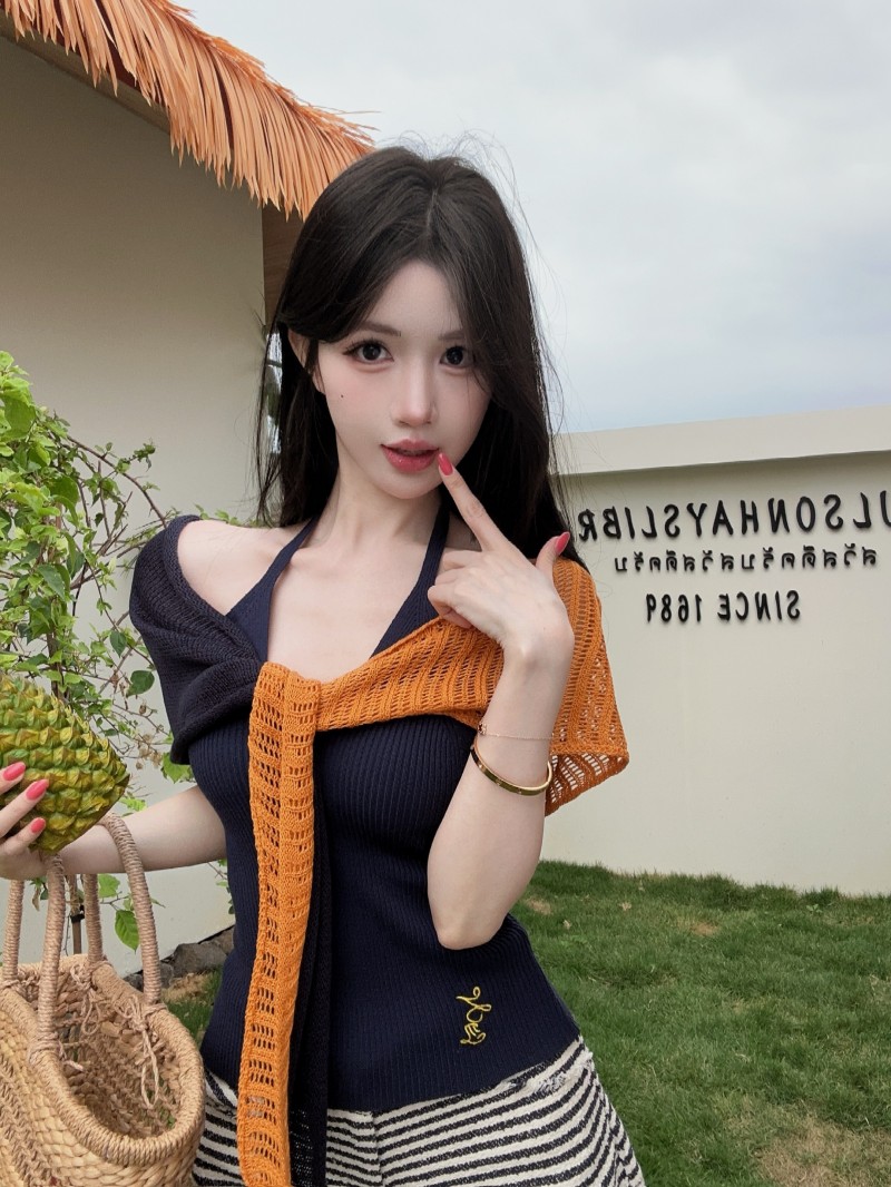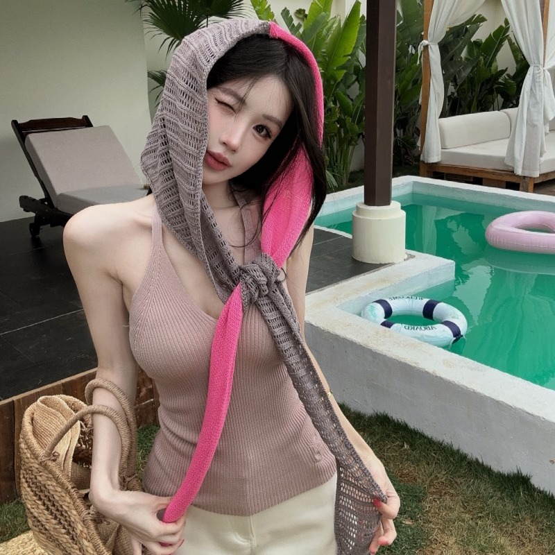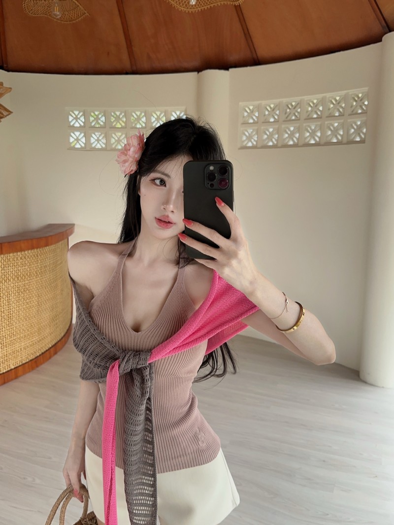 실사 정가 감소되지 않음 알파벳 프린트 홀로우 아웃 조끼 작은 슬링 여성 새로운 핫걸 외출용 민소매 맨위