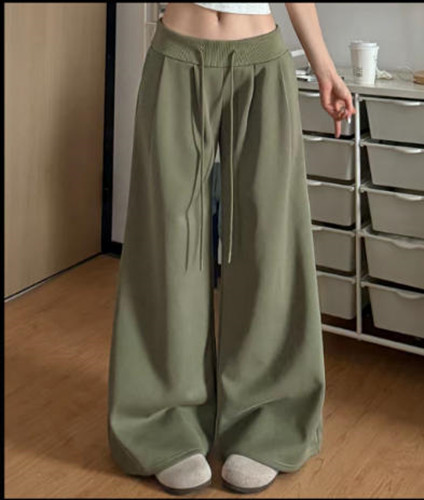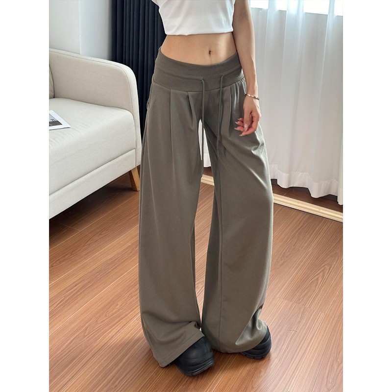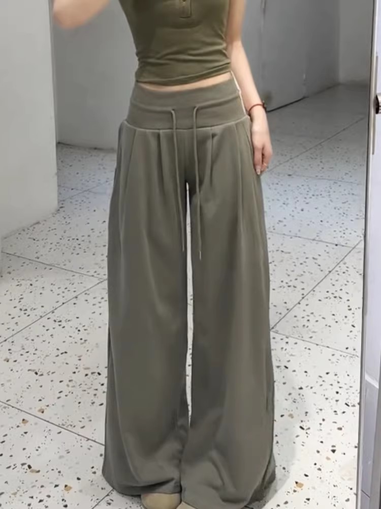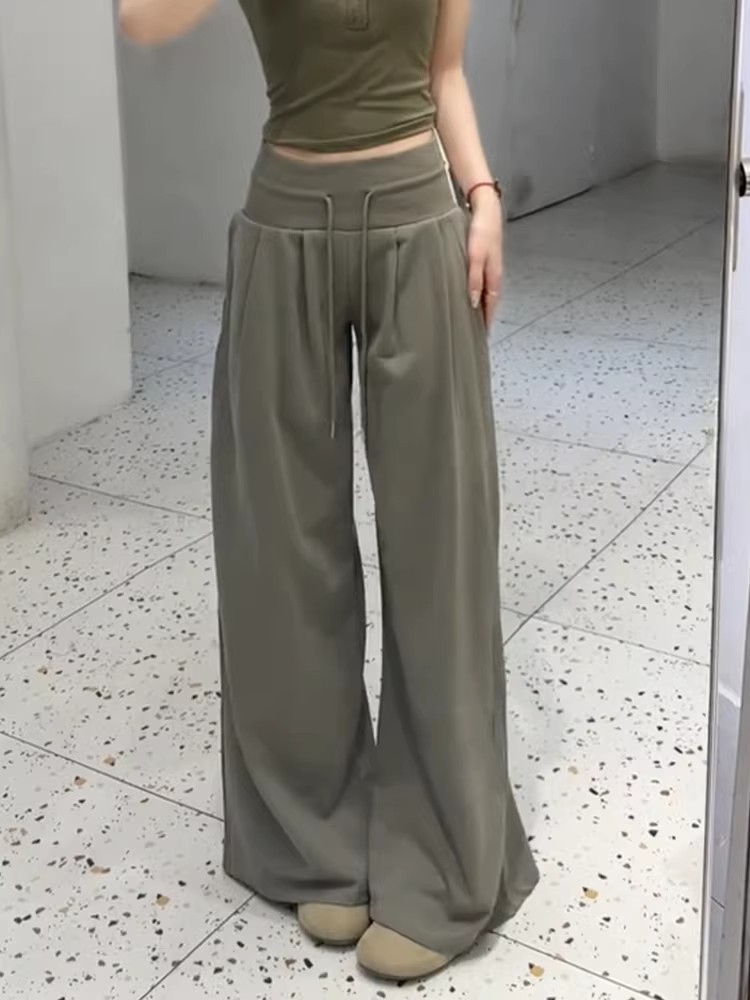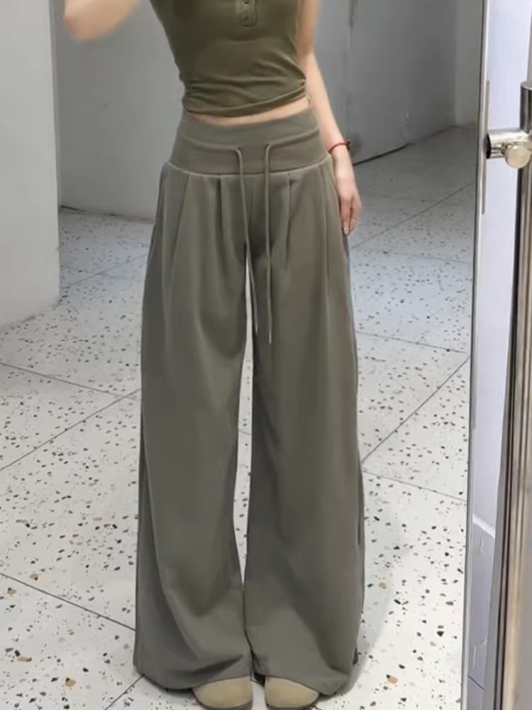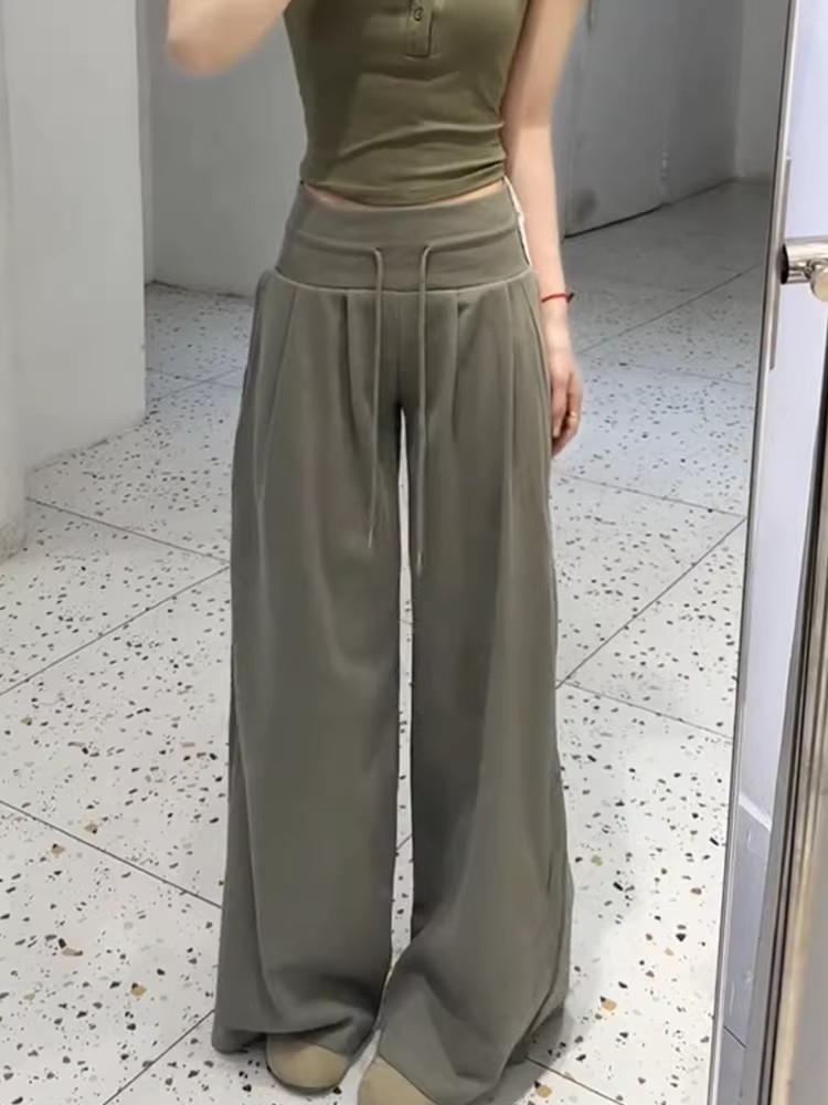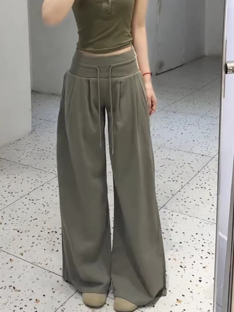 3 차원 허리 고밀도 사선 무늬 화이트 바지 도루 센스 빅 사이즈 슬림해 보이는 루즈핏 워크웨어 캐주얼 와이드 레그 팬츠