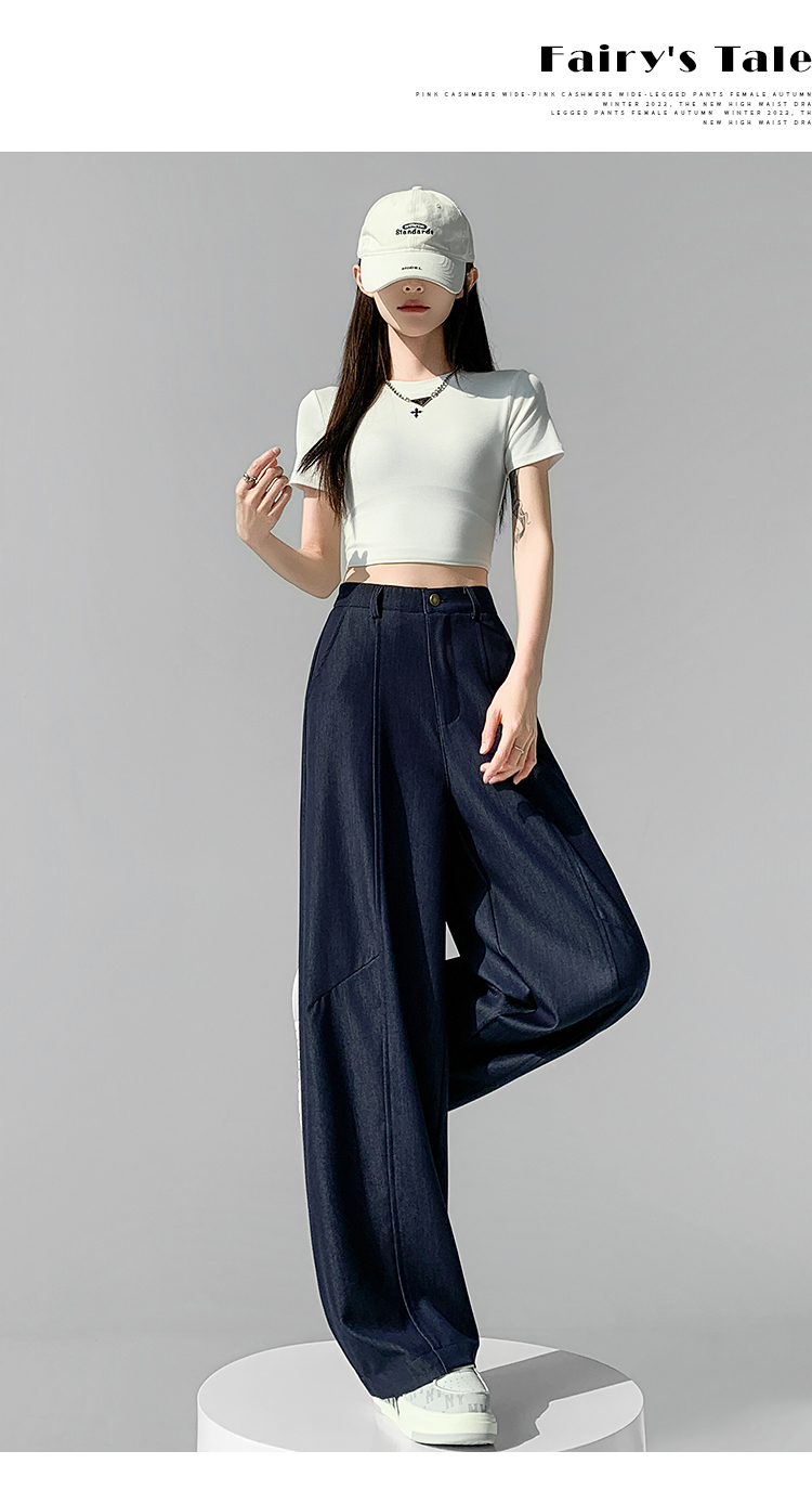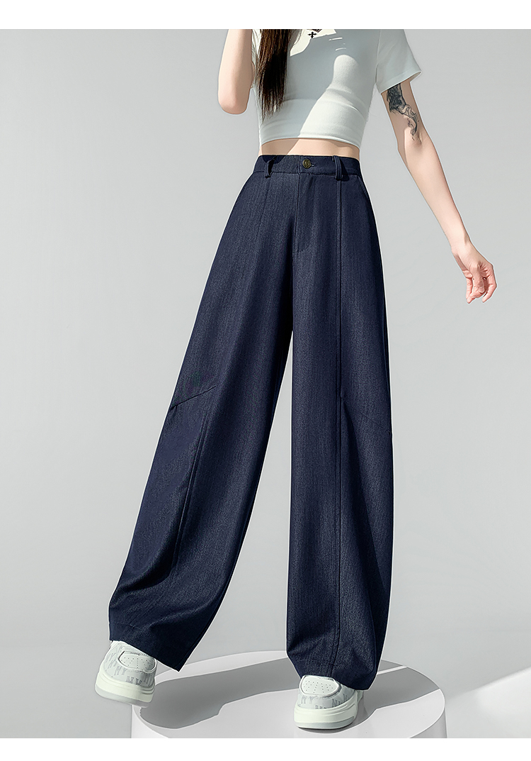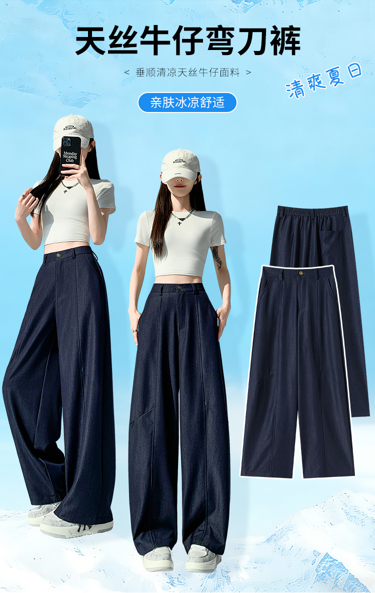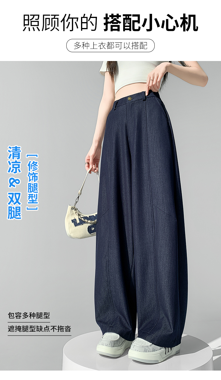 실사 주간 실크 데님 캐주얼 모통이 칼 바지 여성 2026 봄 여름 새로운 하이웨이스트 슬림해 보이는 도루 센스 넓은 다리 바닥 청소 바지